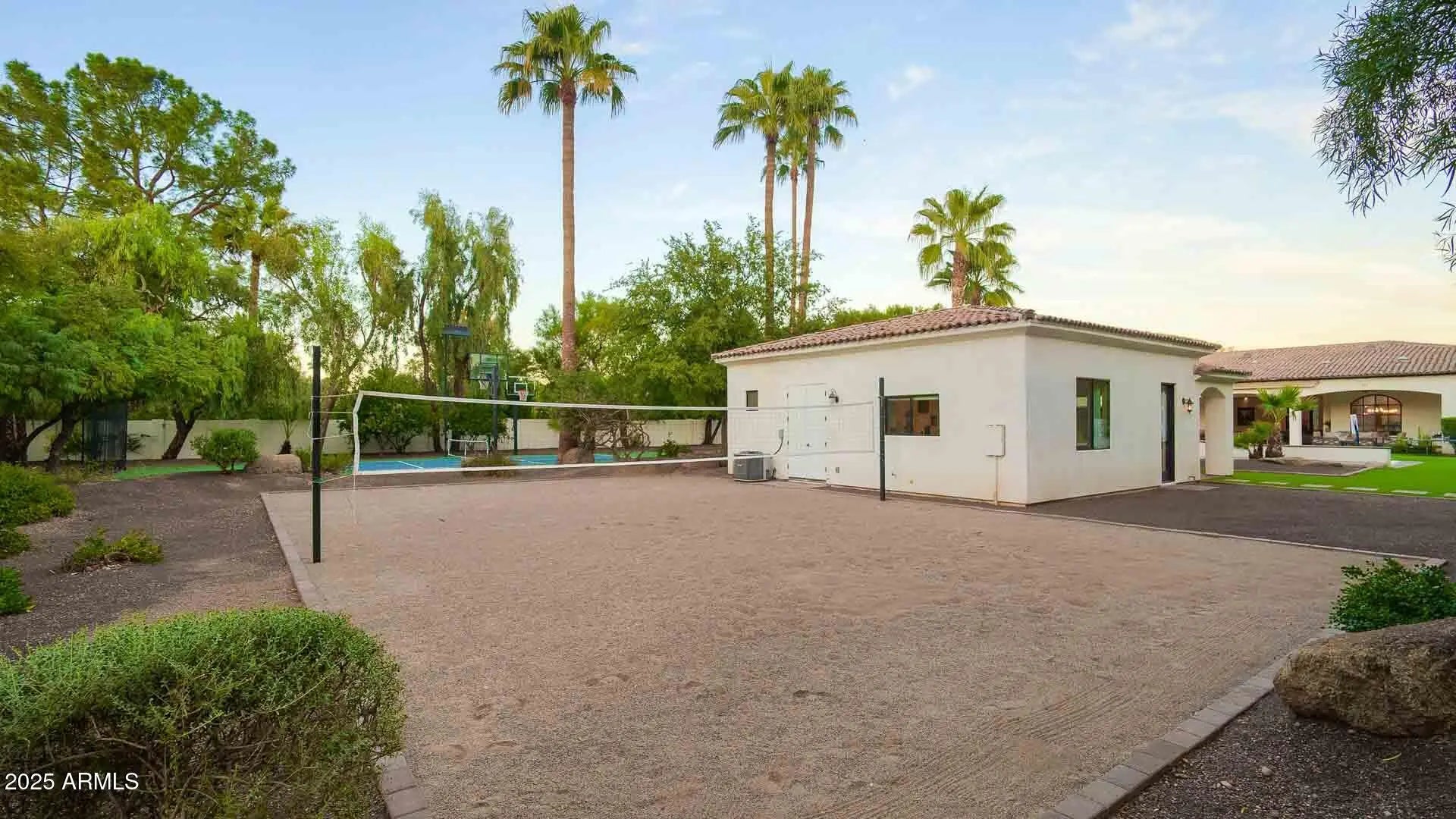 Located in a prestigious gated enclave of Paradise Valley, this estate offers a resort-style luxury on over an acre. The main house and private guest casita are designed for seamless indoor-outdoor living with pocketing glass doors, a chef's kitchen, and elegant open-concept spaces. The backyard is a private oasis featuring a resort-style pool and spa, luxury cabana with outdoor kitchen, firepit lounge, sport court, sand volleyball, putting green, and playground. Most bedrooms offer en-suites, including a stunning primary suite with spa bath and patio access. This home is minutes from Scottsdale's top golf, dining, and shopping—perfect for upscale living or entertaining. Rental rates vary by season. Low season typically starts around $25,000/mo, while high season averages $40,000/mo