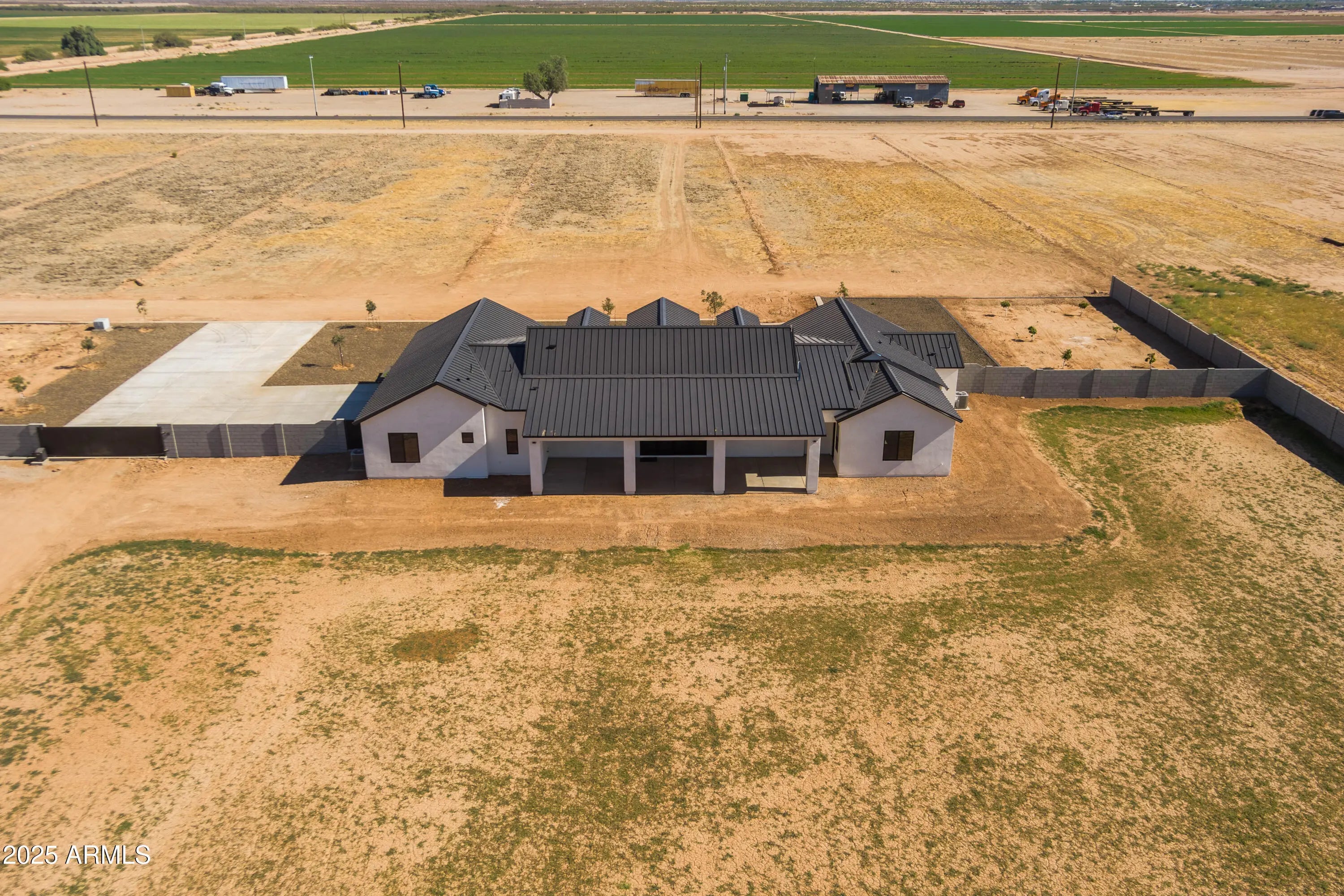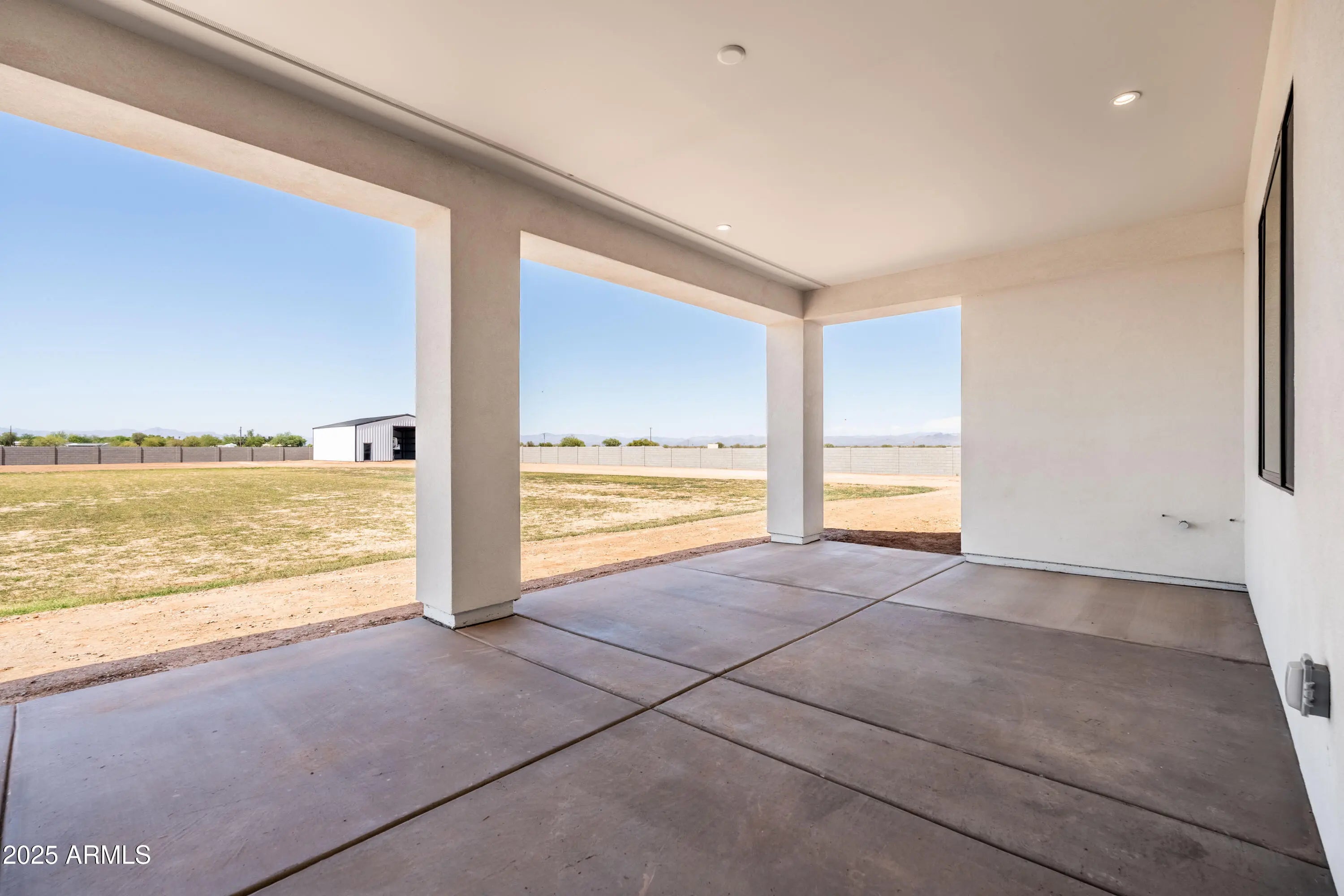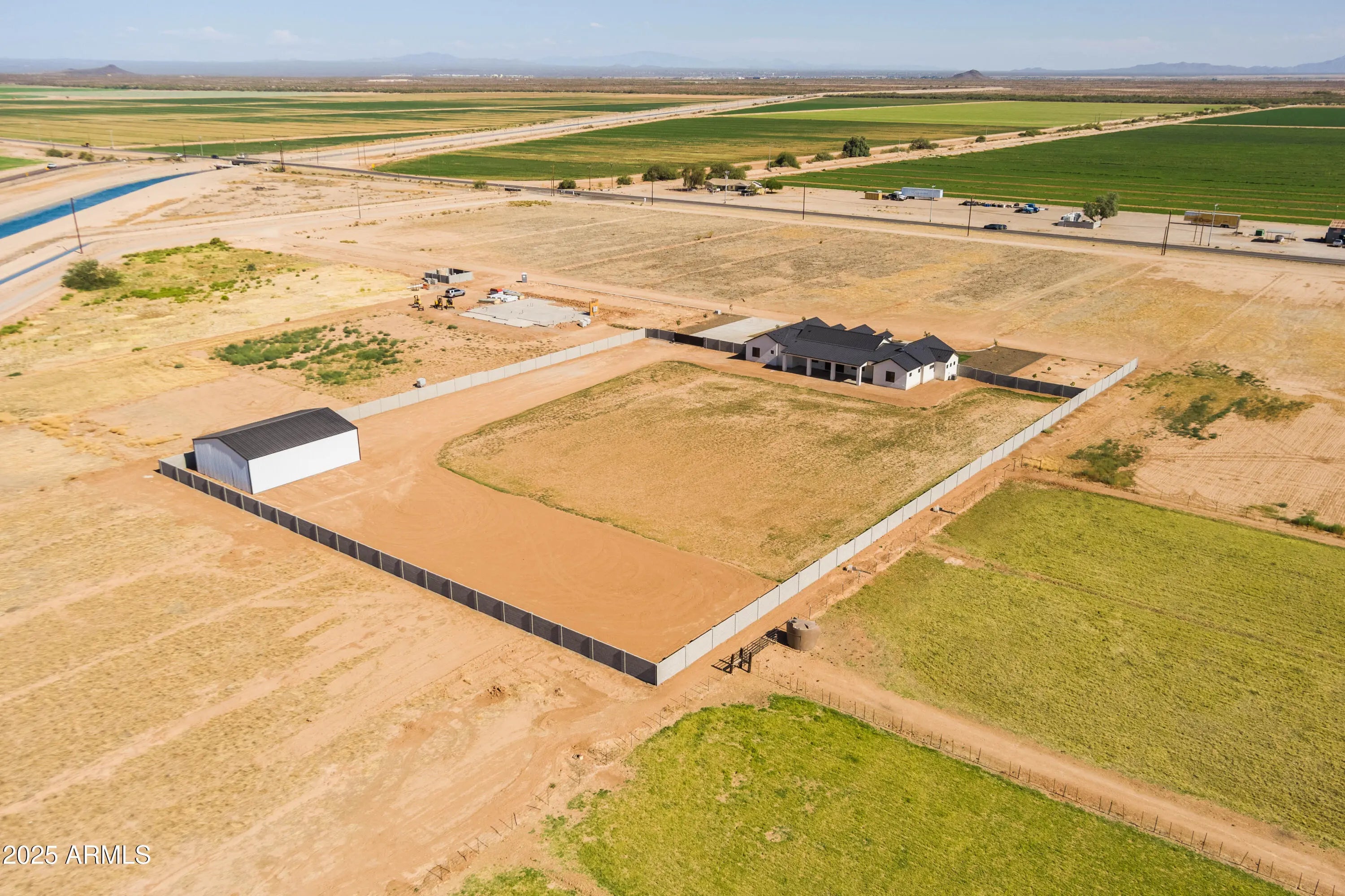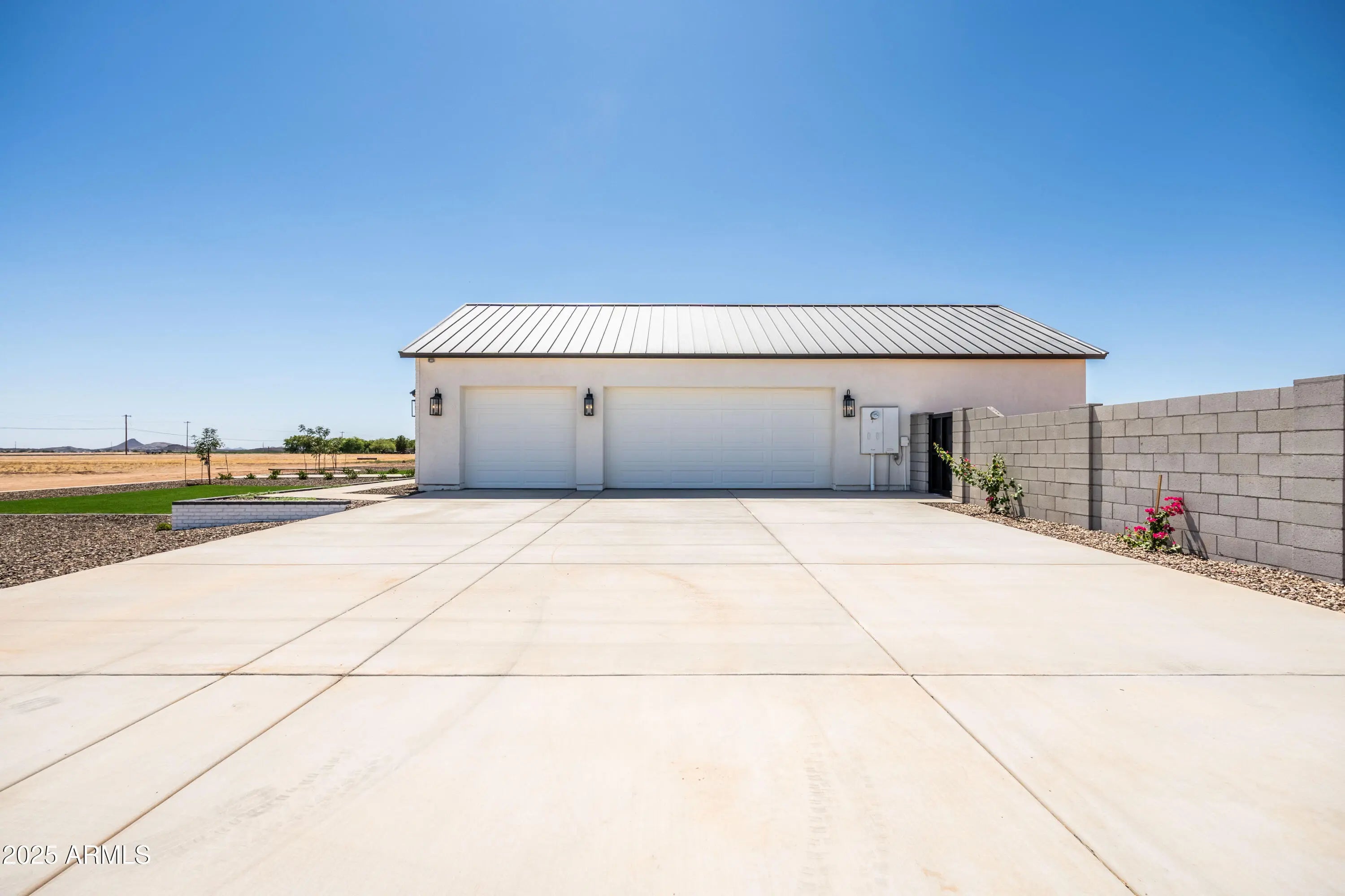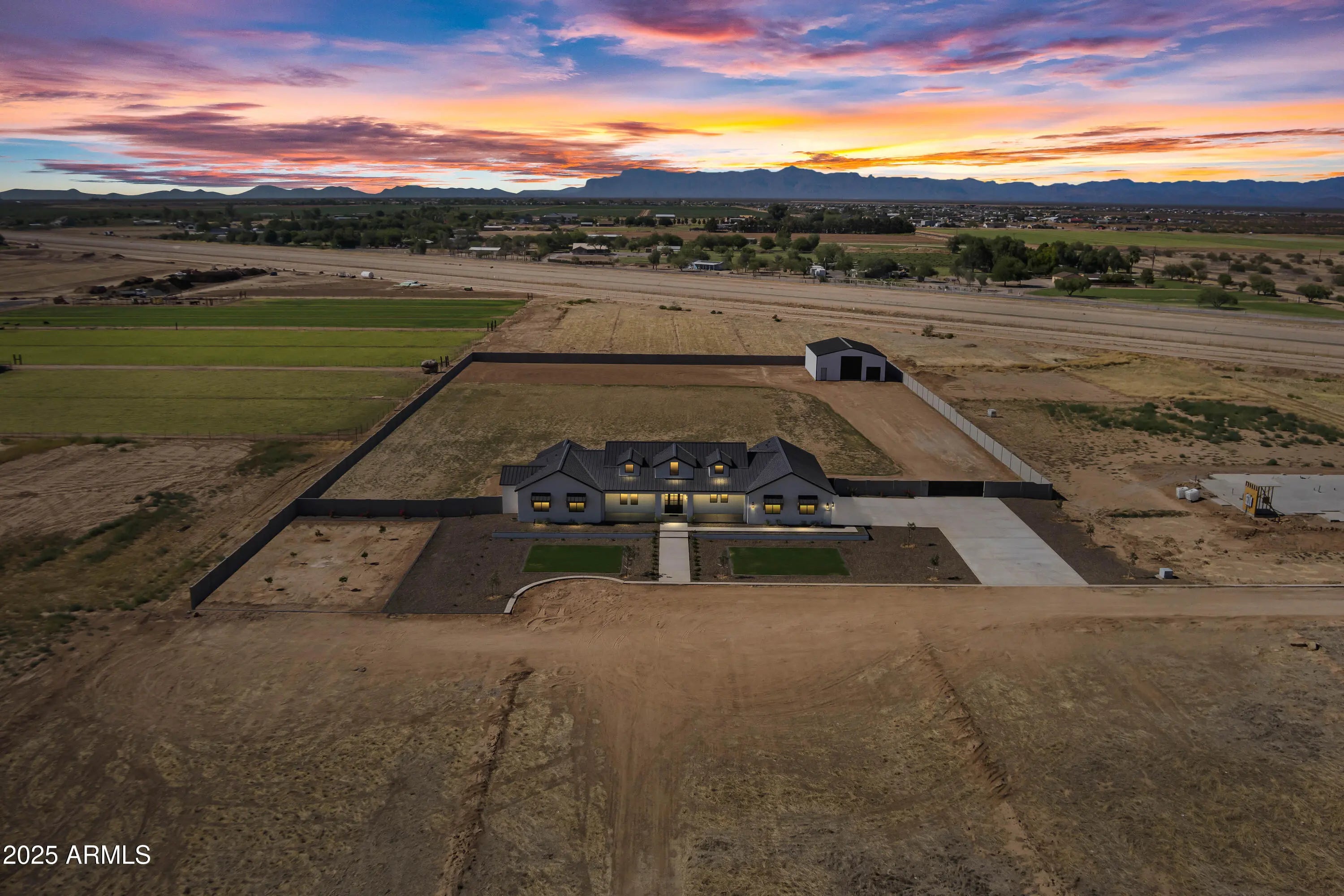 This is the one you've been waiting for - custom new construction on 2.5 acres with space, style, and substance. This 3,315 sf single-story home blends thoughtful craftsmanship with modern design, featuring 4 spacious bedrooms, 3 bathrooms, and an open-concept layout built for comfort and connection. Step inside and you'll immediately feel the difference—1' x 5' wood-look plank tile throughout, custom crown molding and upgraded trim at every turn, and an accordion-style patio door that opens wide to a scenic desert backdrop. The living room is anchored by a sleek fireplace and custom bookshelf, while the chef-inspired kitchen is the heart of the home with 42'' cabinetry with soft-close and dovetail drawers, stainless steel appliances, electric cooktop farmhouse apron sink, a large waterfall edge island, crisp quartz countertops and R/O system. Built with longevity and efficiency in mind, the home features spray foam insulation, 2"x6" framing (interior and exterior), 16" on-center construction, synthetic stucco, a durable metal roof system, and is electric car ready. The oversized 3-car garage includes extended depth and epoxy floors, perfect for storage or hobbies. Step outside and you'll appreciate the fully enclosed property, surrounded by a block wall with a 20' rolling automatic gate. The 2,000 square foot detached shop with a 14' door is a dream setup for a car enthusiast, horse owners, small business or anyone needing serious space. Front landscaping is already complete, and the entire property is on irrigation. And SAVE money with low well water bills! Location matters and this one is ideally situated just one mile from the planned Hwy 24 expansion, offering convenience without sacrificing the peaceful, open feel this property provides. The ideal buyer will love the space, freedom and flexibility this home offers whether you're looking to spread out, store your toys, or simply enjoy room to breathe.
