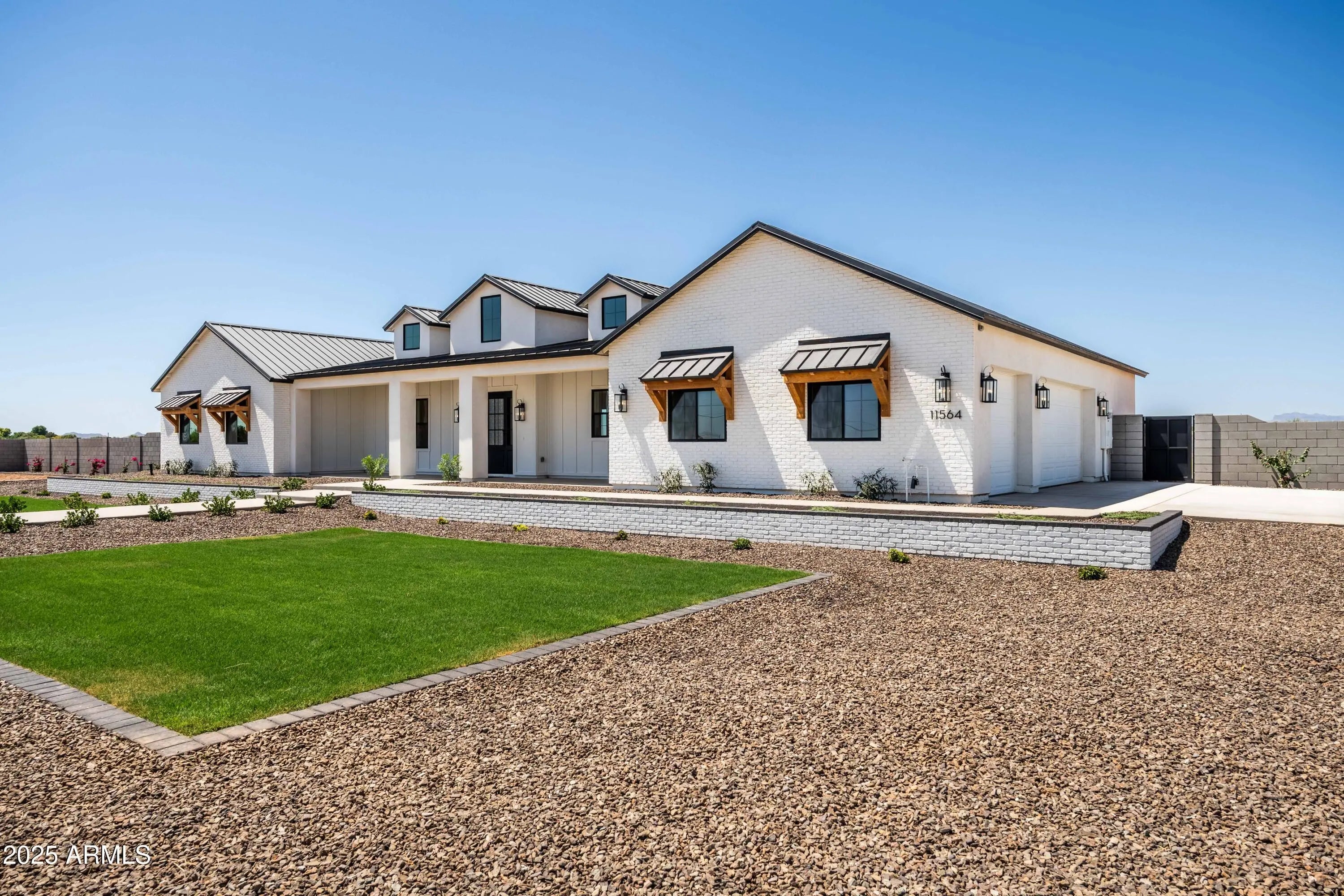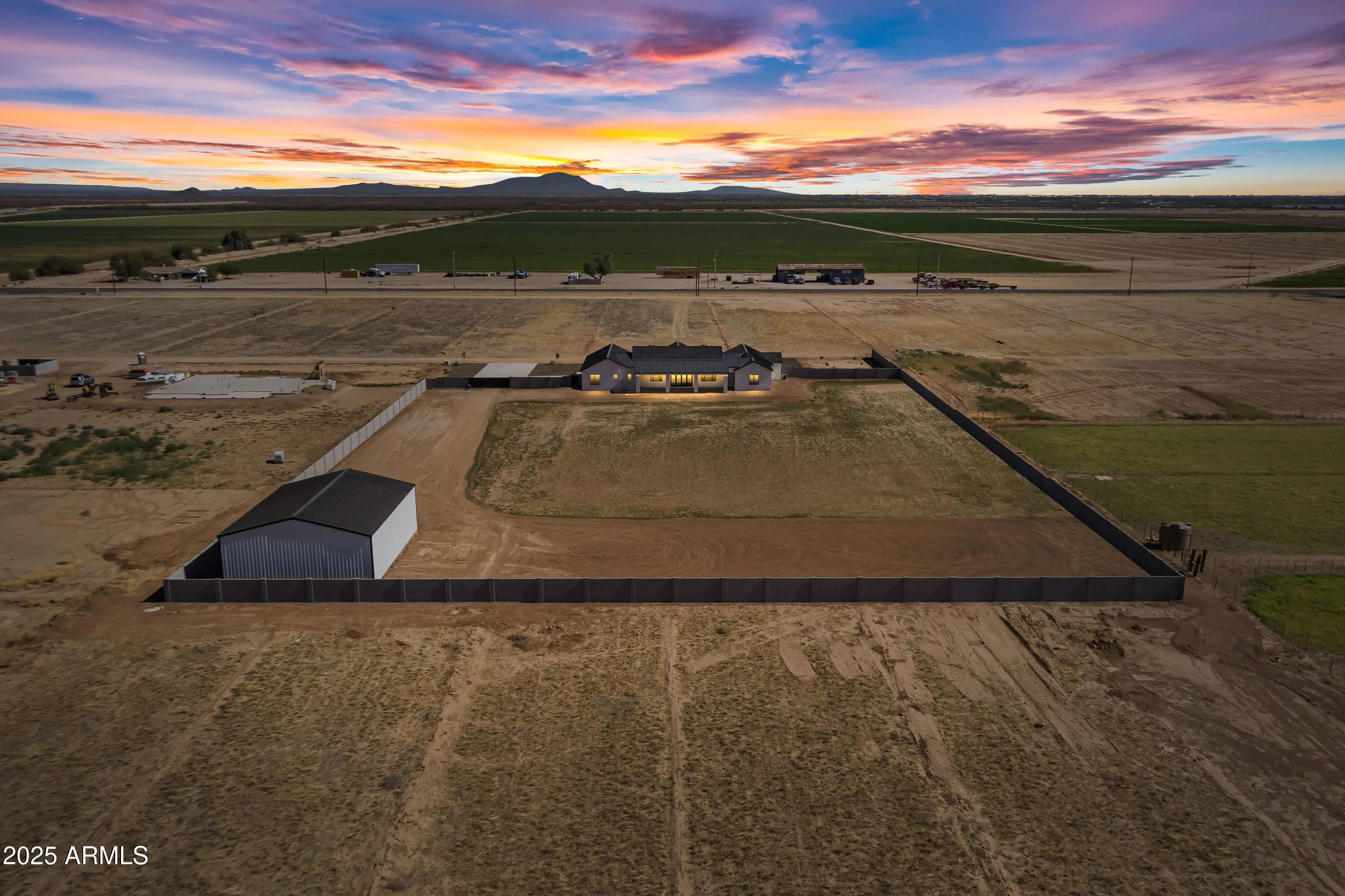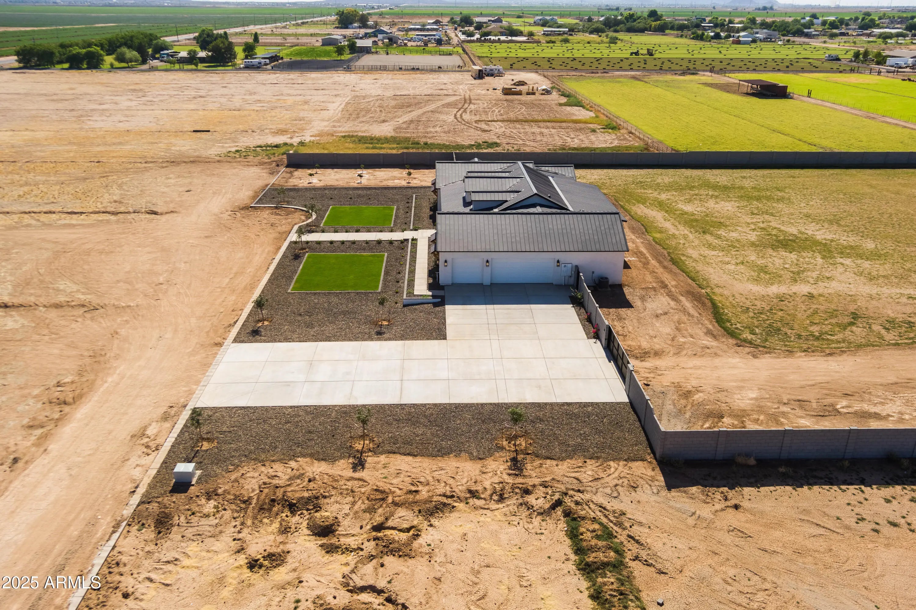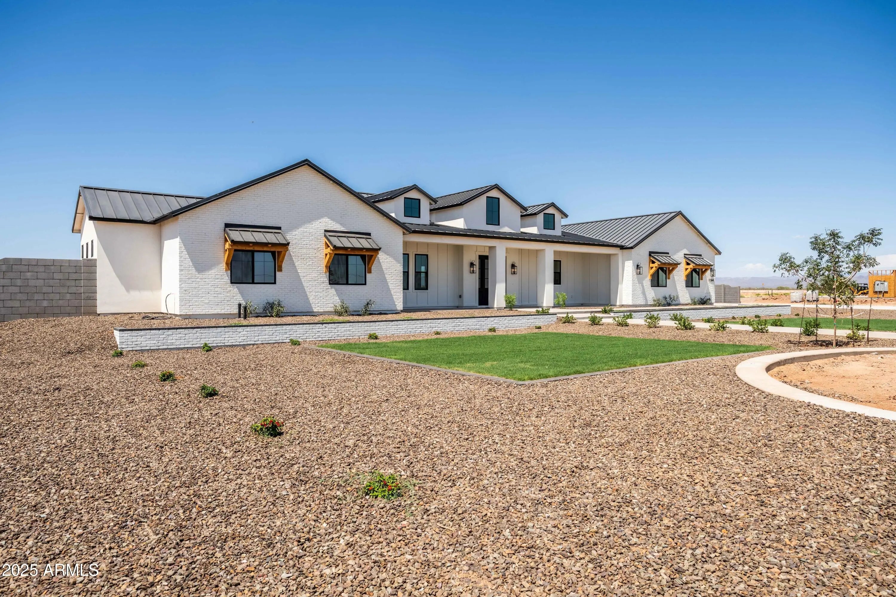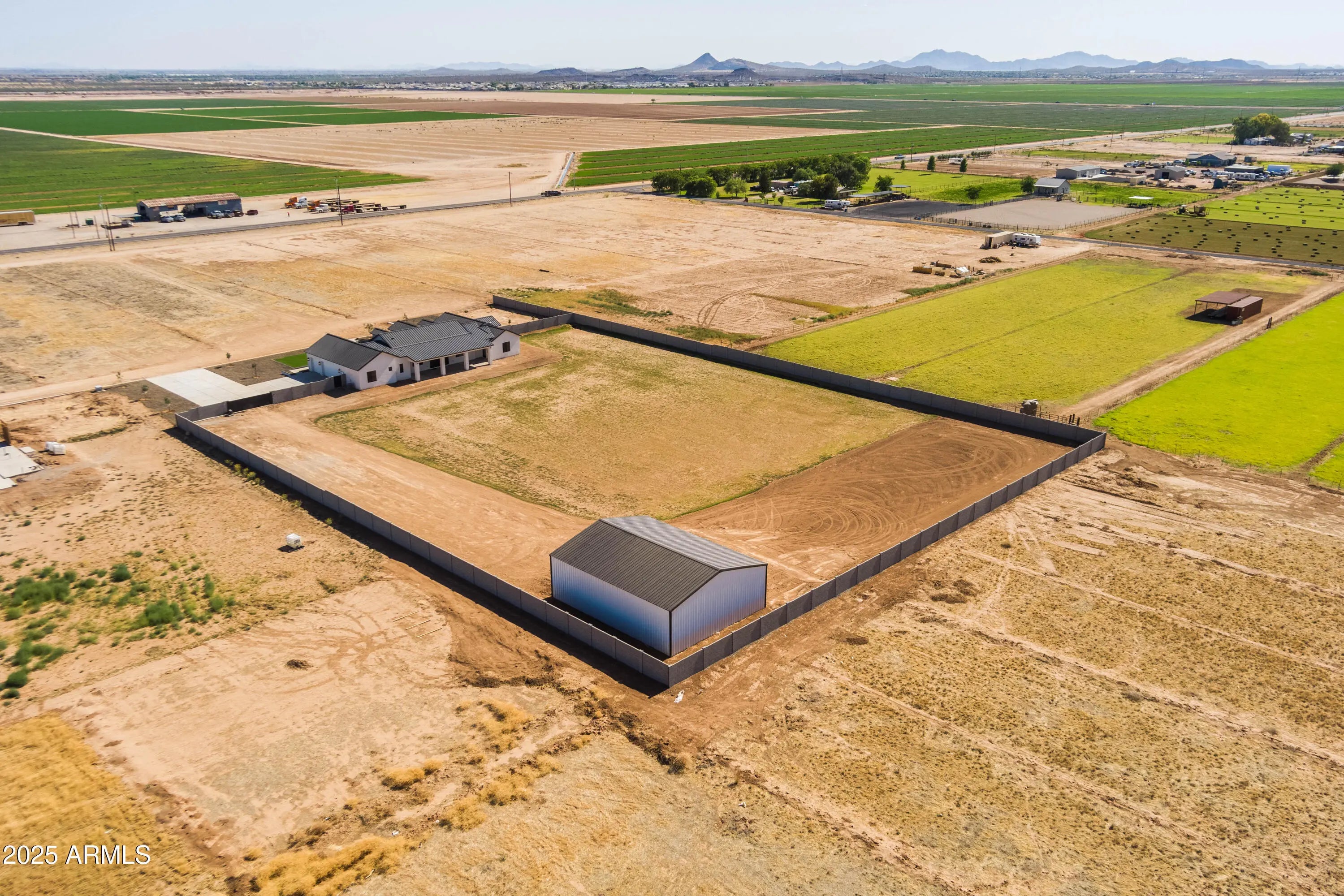 This is the one you've been waiting for - custom new construction on 2.5 acres with space, style, and substance. This 3,315 sf single-story home blends thoughtful craftsmanship with modern design, featuring 4 spacious bedrooms, 3 bathrooms, and an open-concept layout built for comfort and connection. Step inside and you'll immediately feel the difference—1' x 5' wood-look plank tile throughout, custom crown molding and upgraded trim at every turn, and an accordion-style patio door that opens wide to a scenic desert backdrop. The living room is anchored by a sleek fireplace and custom bookshelf, while the chef-inspired kitchen is the heart of the home with 42'' cabinetry with soft-close and dovetail drawers, stainless steel appliances, electric cooktop farmhouse apron sink, a large waterfall edge island, crisp quartz countertops and R/O system. Built with longevity and efficiency in mind, the home features spray foam insulation, 2"x6" framing (interior and exterior), 16" on-center construction, synthetic stucco, a durable metal roof system, and is electric car ready. The oversized 3-car garage includes extended depth and epoxy floors, perfect for storage or hobbies. Step outside and you'll appreciate the fully enclosed property, surrounded by a block wall with a 20' rolling automatic gate. The 2,000 square foot detached shop with a 14' door is a dream setup for a car enthusiast, horse owners, small business or anyone needing serious space. Front landscaping is already complete, and the entire property is on irrigation. And SAVE money with low well water bills! Location matters and this one is ideally situated just one mile from the planned Hwy 24 expansion, offering convenience without sacrificing the peaceful, open feel this property provides. The ideal buyer will love the space, freedom and flexibility this home offers whether you're looking to spread out, store your toys, or simply enjoy room to breathe.