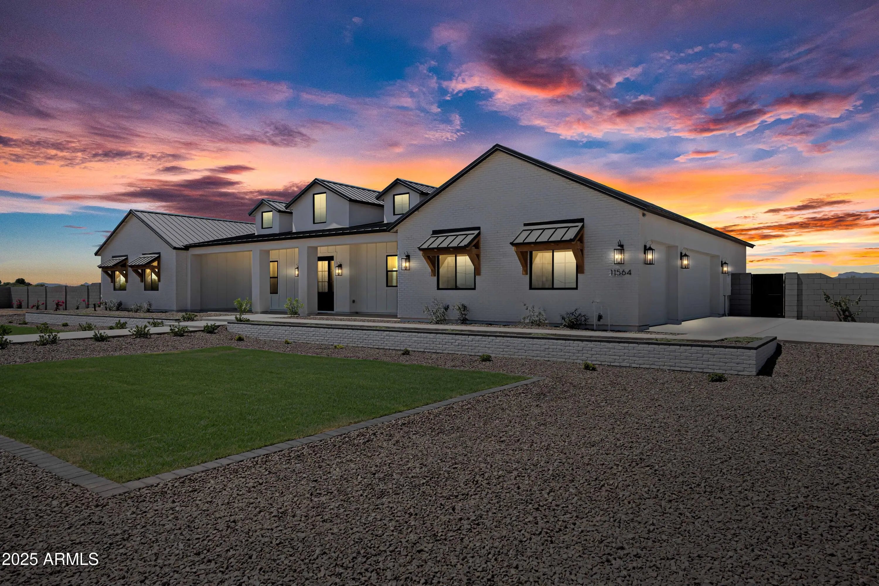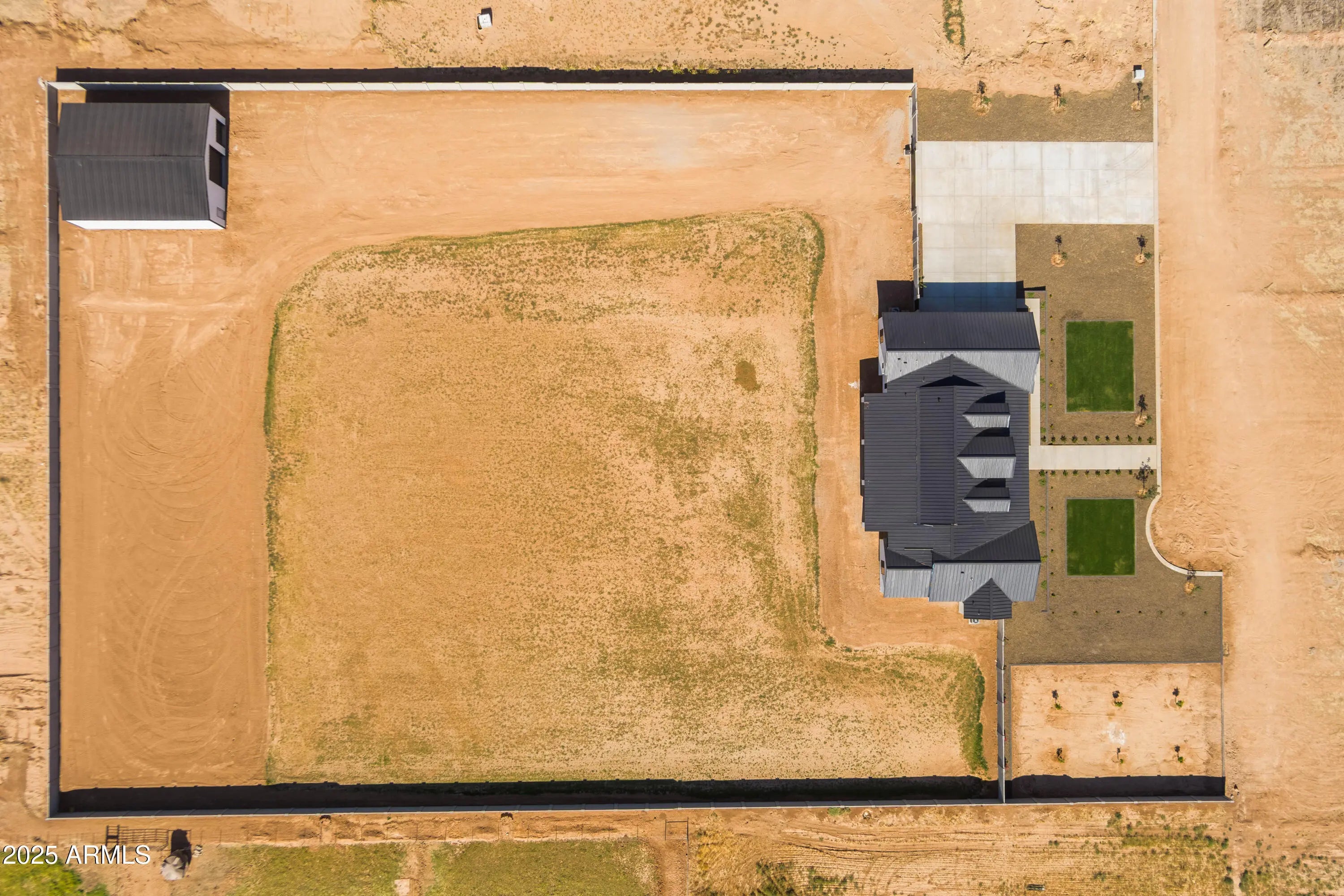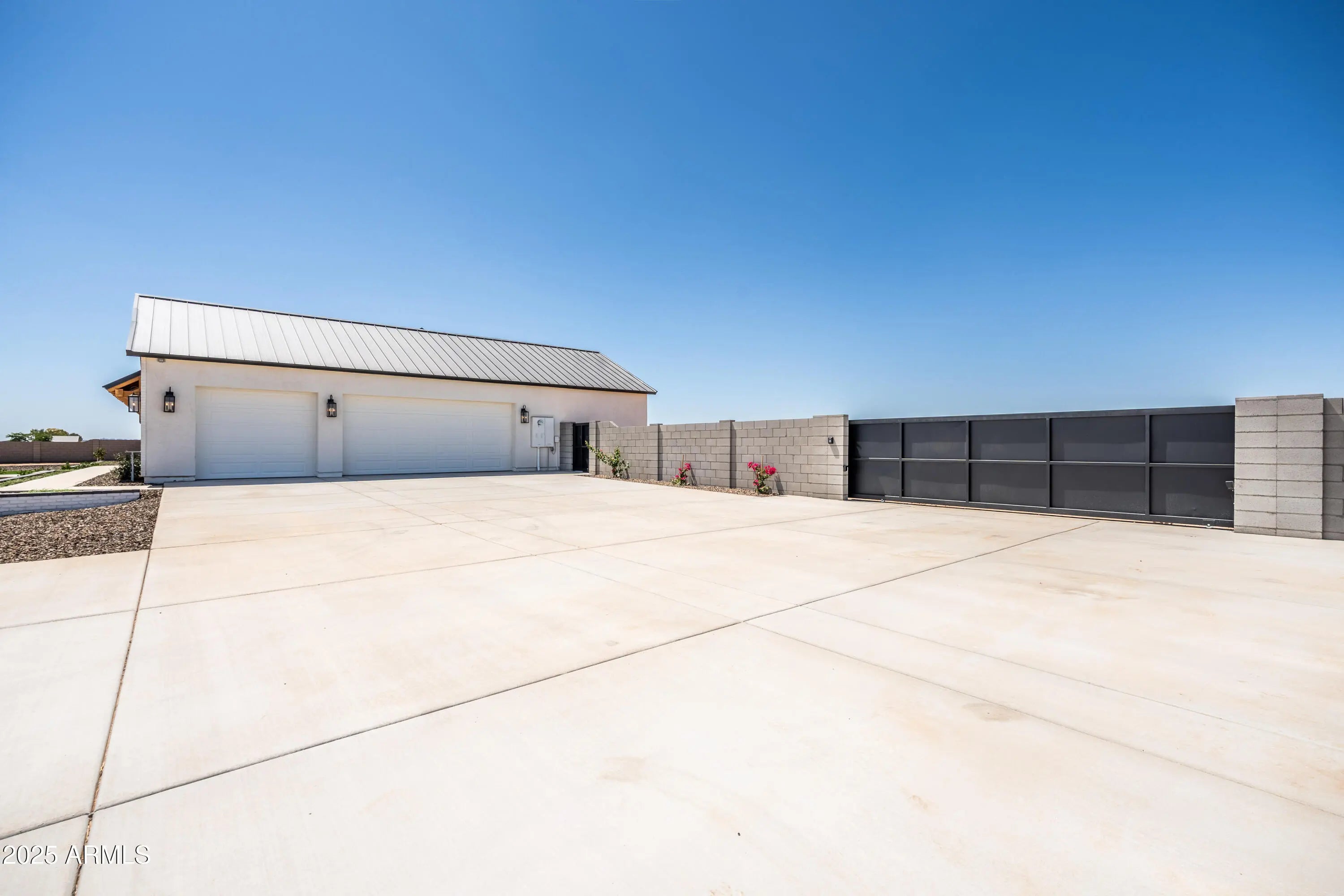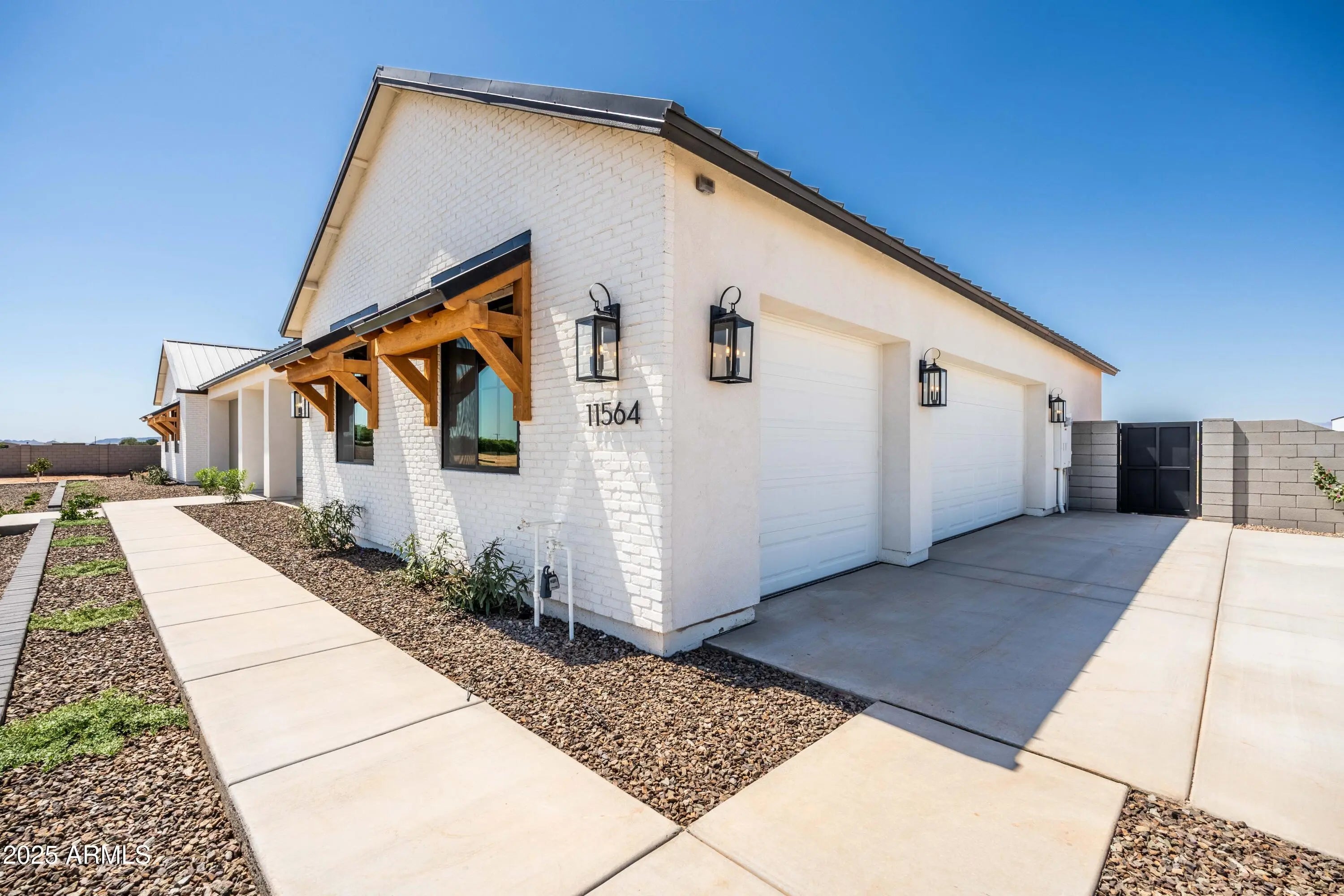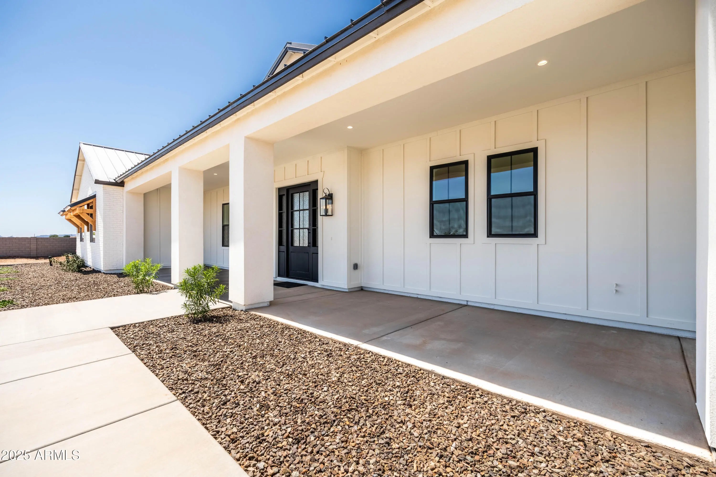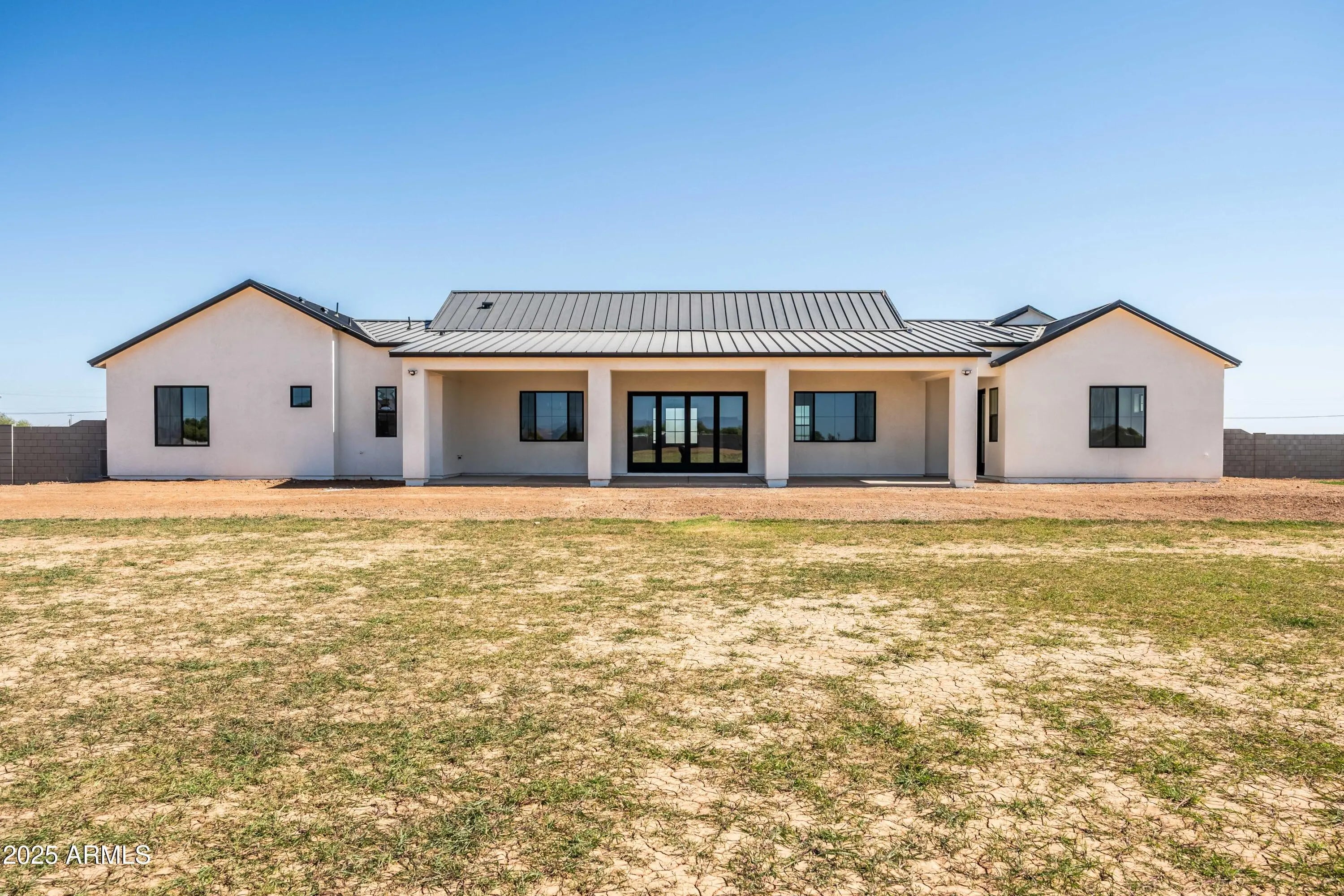 This is the one you've been waiting for - custom new construction on 2.5 acres with space, style, and substance. This 3,315 sf single-story home blends thoughtful craftsmanship with modern design, featuring 4 spacious bedrooms, 3 bathrooms, and an open-concept layout built for comfort and connection. Step inside and you'll immediately feel the difference—1' x 5' wood-look plank tile throughout, custom crown molding and upgraded trim at every turn, and an accordion-style patio door that opens wide to a scenic desert backdrop. The living room is anchored by a sleek fireplace and custom bookshelf, while the chef-inspired kitchen is the heart of the home with 42'' cabinetry with soft-close and dovetail drawers, stainless steel appliances, electric cooktop farmhouse apron sink, a large waterfall edge island, crisp quartz countertops and R/O system. Built with longevity and efficiency in mind, the home features spray foam insulation, 2"x6" framing (interior and exterior), 16" on-center construction, synthetic stucco, a durable metal roof system, and is electric car ready. The oversized 3-car garage includes extended depth and epoxy floors, perfect for storage or hobbies. Step outside and you'll appreciate the fully enclosed property, surrounded by a block wall with a 20' rolling automatic gate. The 2,000 square foot detached shop with a 14' door is a dream setup for a car enthusiast, horse owners, small business or anyone needing serious space. Front landscaping is already complete, and the entire property is on irrigation. And SAVE money with low well water bills! Location matters and this one is ideally situated just one mile from the planned Hwy 24 expansion, offering convenience without sacrificing the peaceful, open feel this property provides. The ideal buyer will love the space, freedom and flexibility this home offers whether you're looking to spread out, store your toys, or simply enjoy room to breathe.