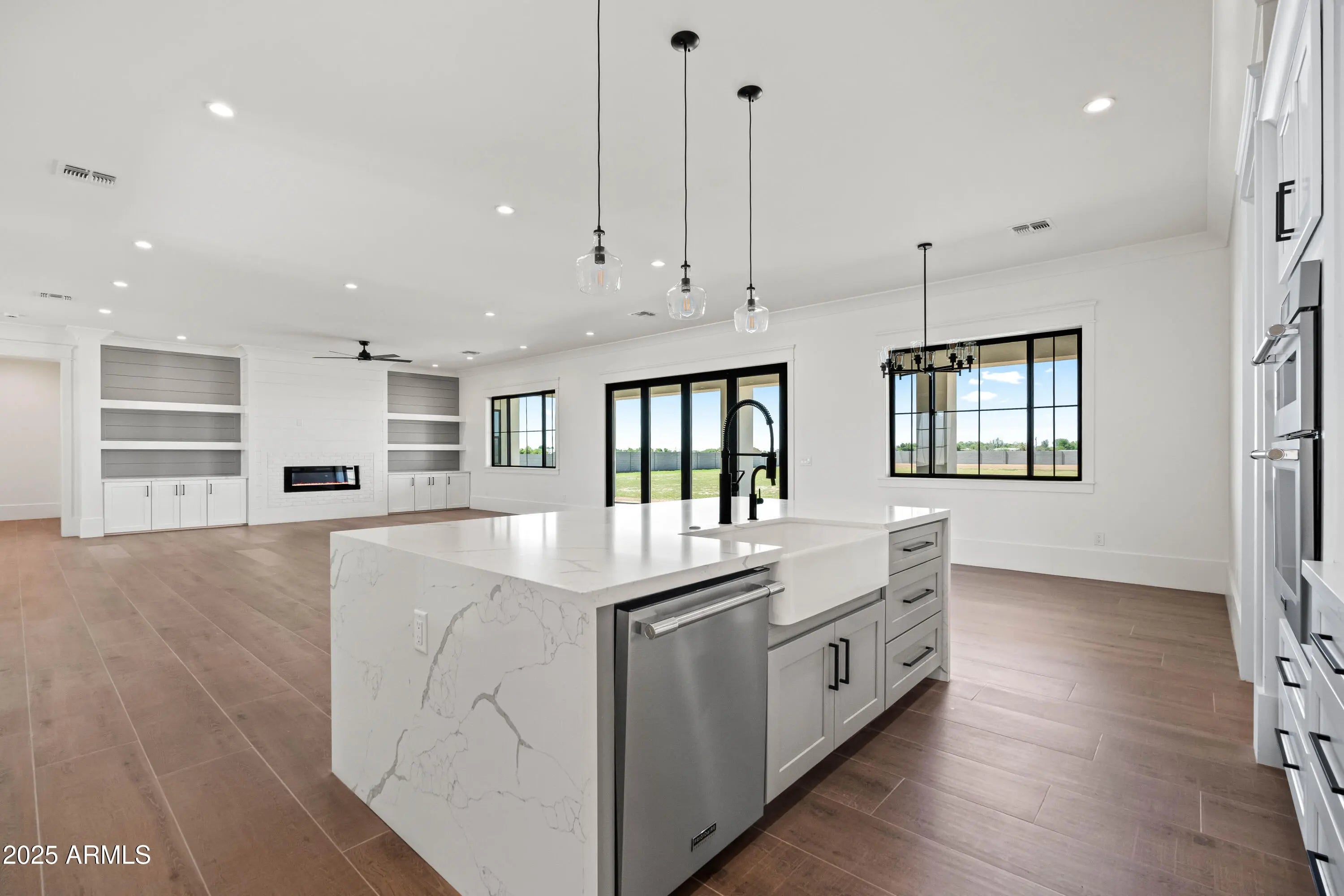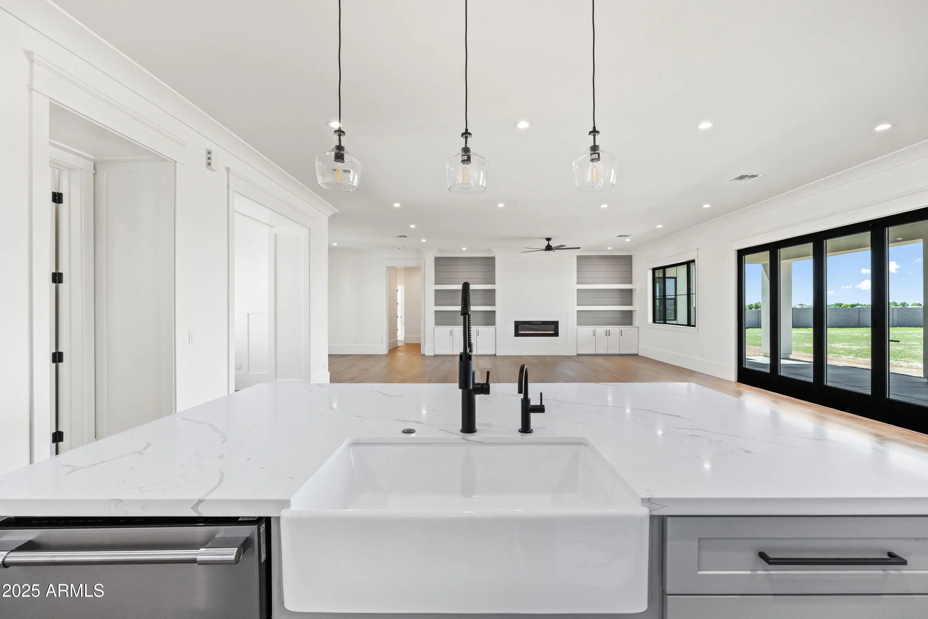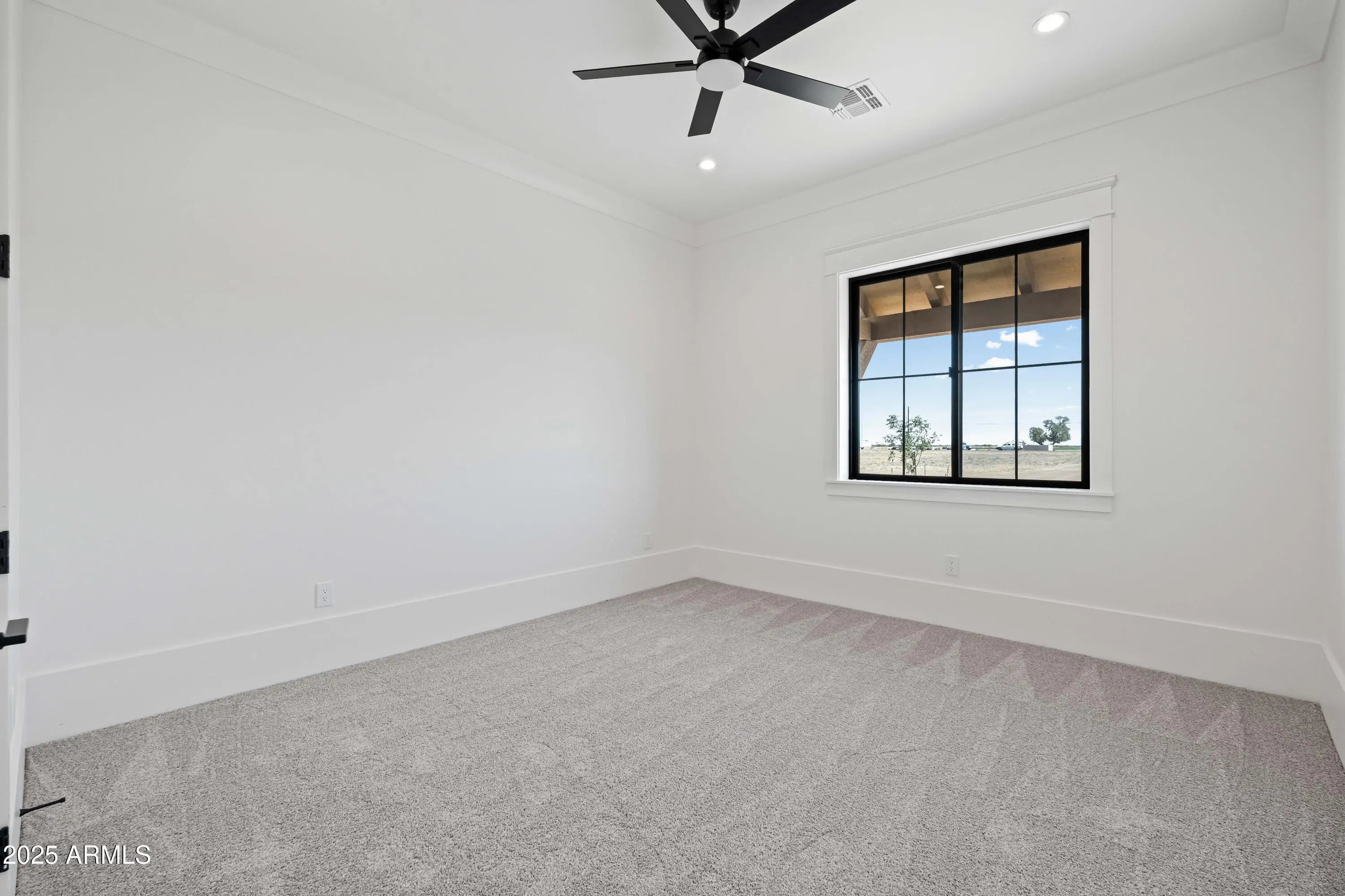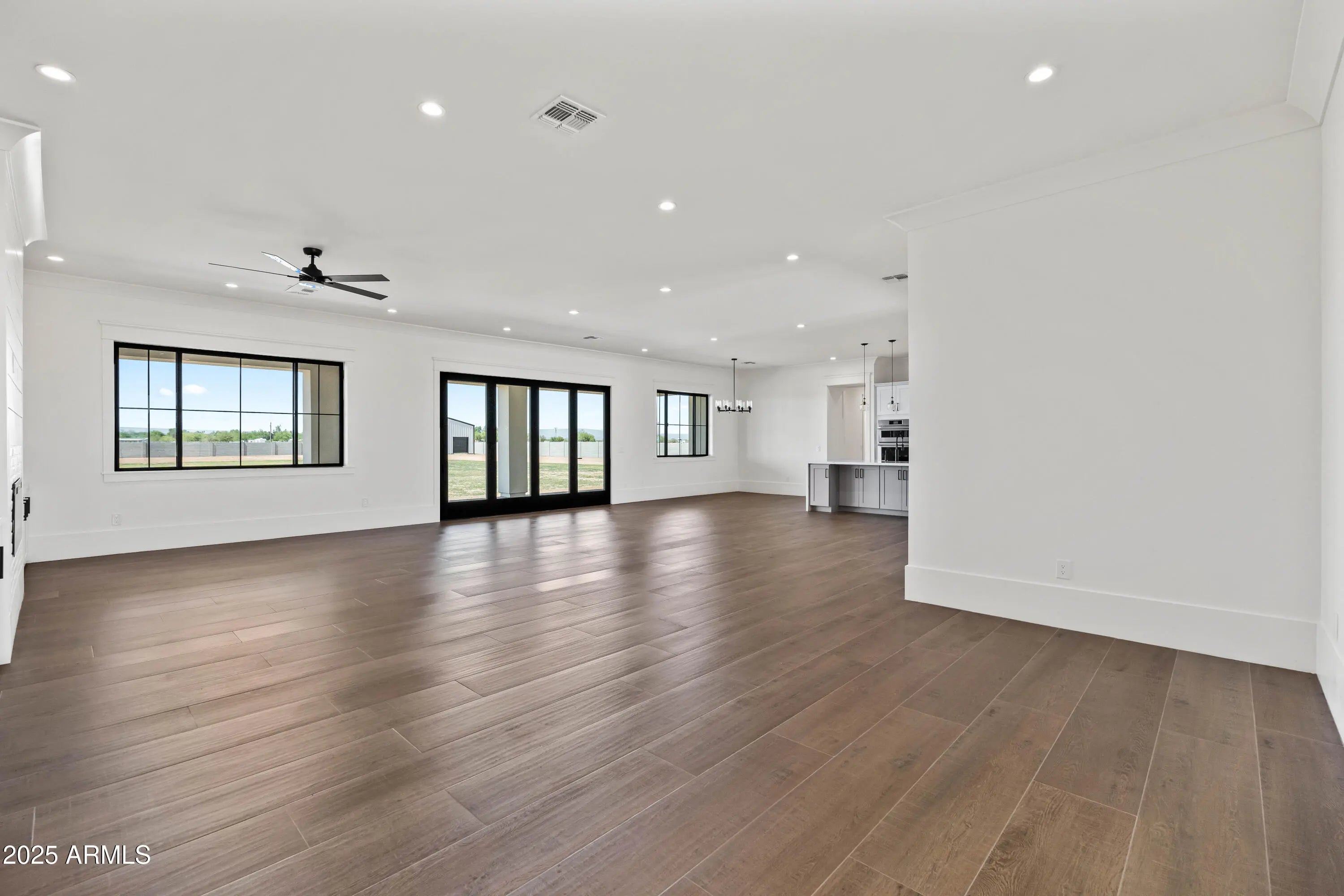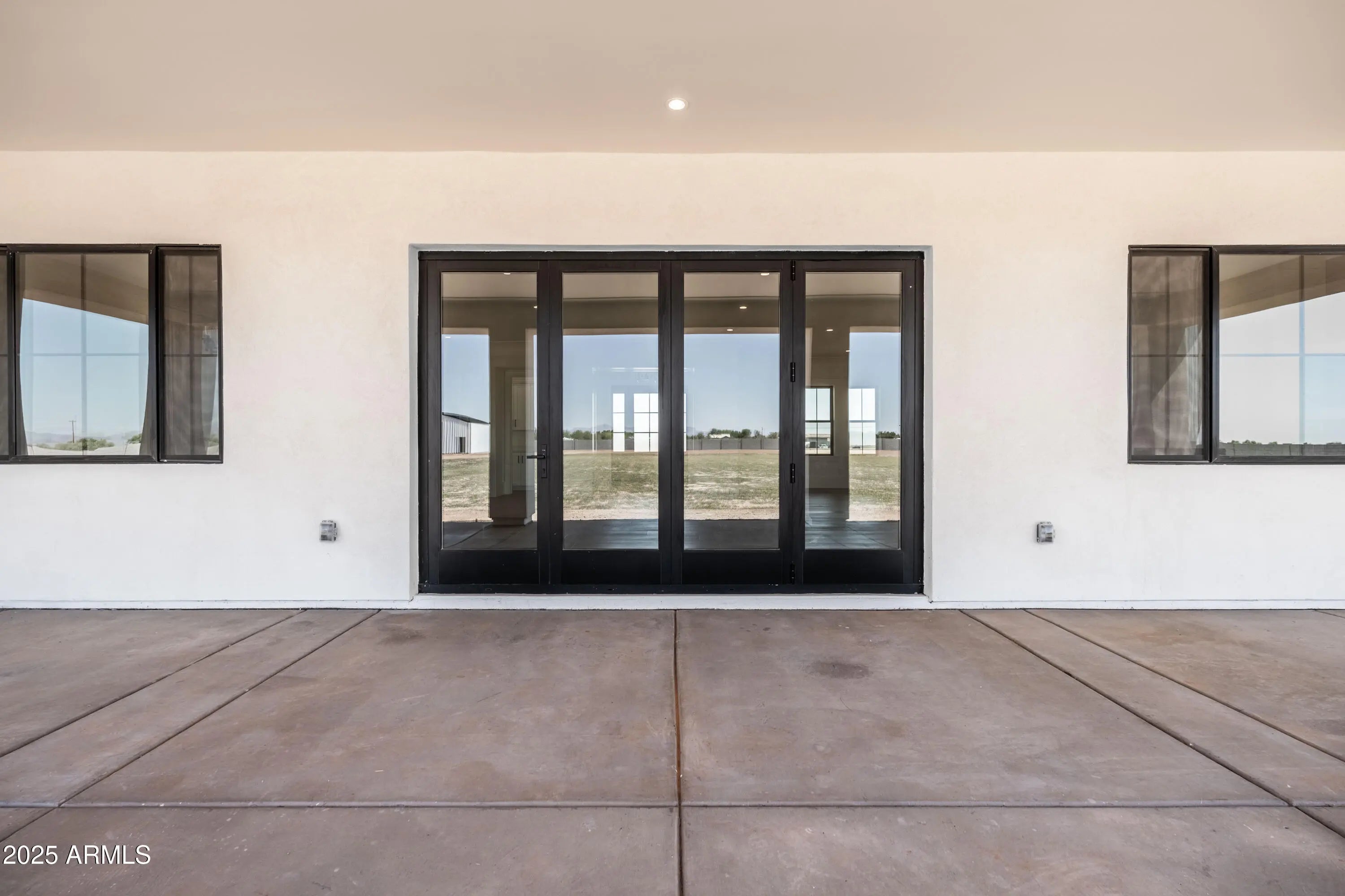 This is the one you've been waiting for - custom new construction on 2.5 acres with space, style, and substance. This 3,315 sf single-story home blends thoughtful craftsmanship with modern design, featuring 4 spacious bedrooms, 3 bathrooms, and an open-concept layout built for comfort and connection. Step inside and you'll immediately feel the difference—1' x 5' wood-look plank tile throughout, custom crown molding and upgraded trim at every turn, and an accordion-style patio door that opens wide to a scenic desert backdrop. The living room is anchored by a sleek fireplace and custom bookshelf, while the chef-inspired kitchen is the heart of the home with 42'' cabinetry with soft-close and dovetail drawers, stainless steel appliances, electric cooktop farmhouse apron sink, a large waterfall edge island, crisp quartz countertops and R/O system. Built with longevity and efficiency in mind, the home features spray foam insulation, 2"x6" framing (interior and exterior), 16" on-center construction, synthetic stucco, a durable metal roof system, and is electric car ready. The oversized 3-car garage includes extended depth and epoxy floors, perfect for storage or hobbies. Step outside and you'll appreciate the fully enclosed property, surrounded by a block wall with a 20' rolling automatic gate. The 2,000 square foot detached shop with a 14' door is a dream setup for a car enthusiast, horse owners, small business or anyone needing serious space. Front landscaping is already complete, and the entire property is on irrigation. And SAVE money with low well water bills! Location matters and this one is ideally situated just one mile from the planned Hwy 24 expansion, offering convenience without sacrificing the peaceful, open feel this property provides. The ideal buyer will love the space, freedom and flexibility this home offers whether you're looking to spread out, store your toys, or simply enjoy room to breathe.