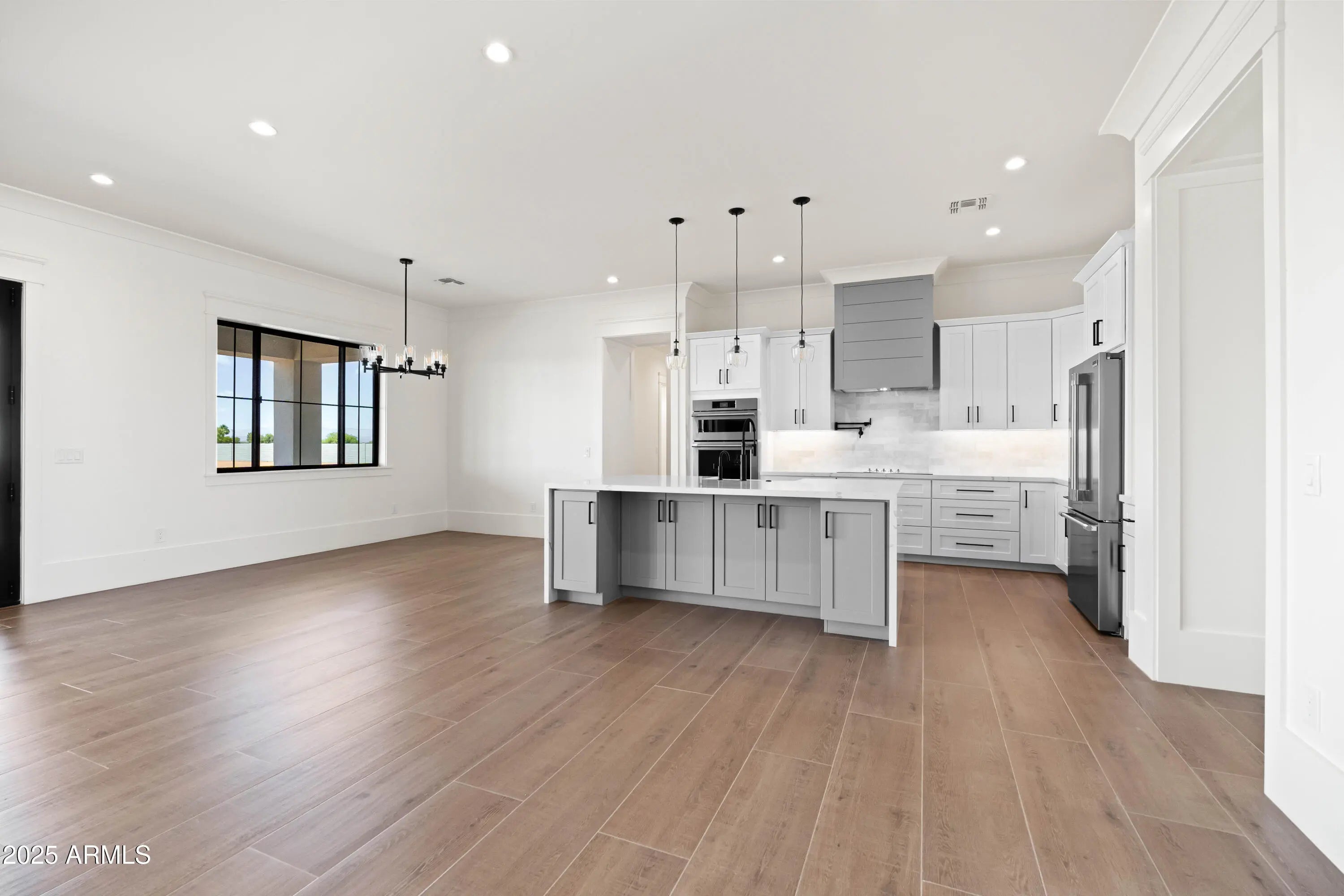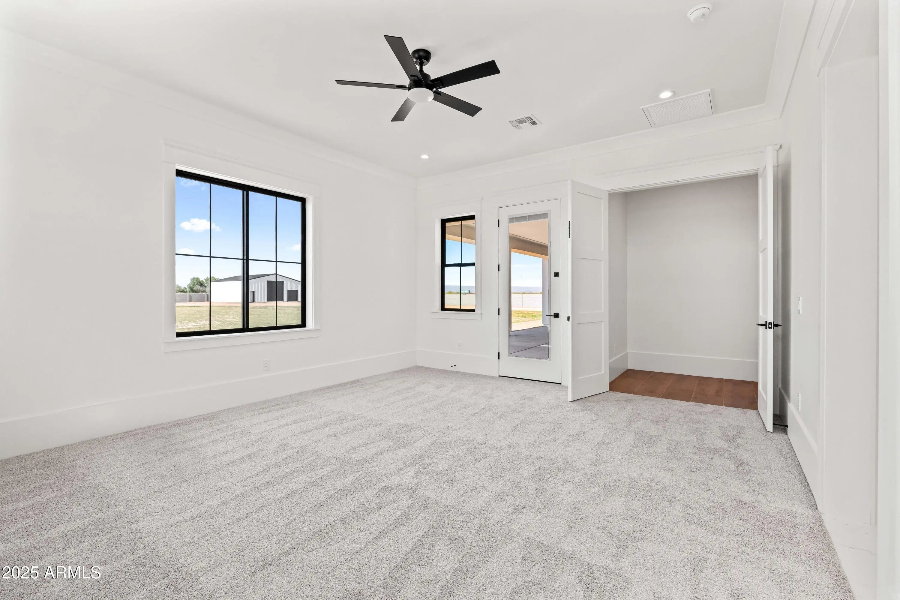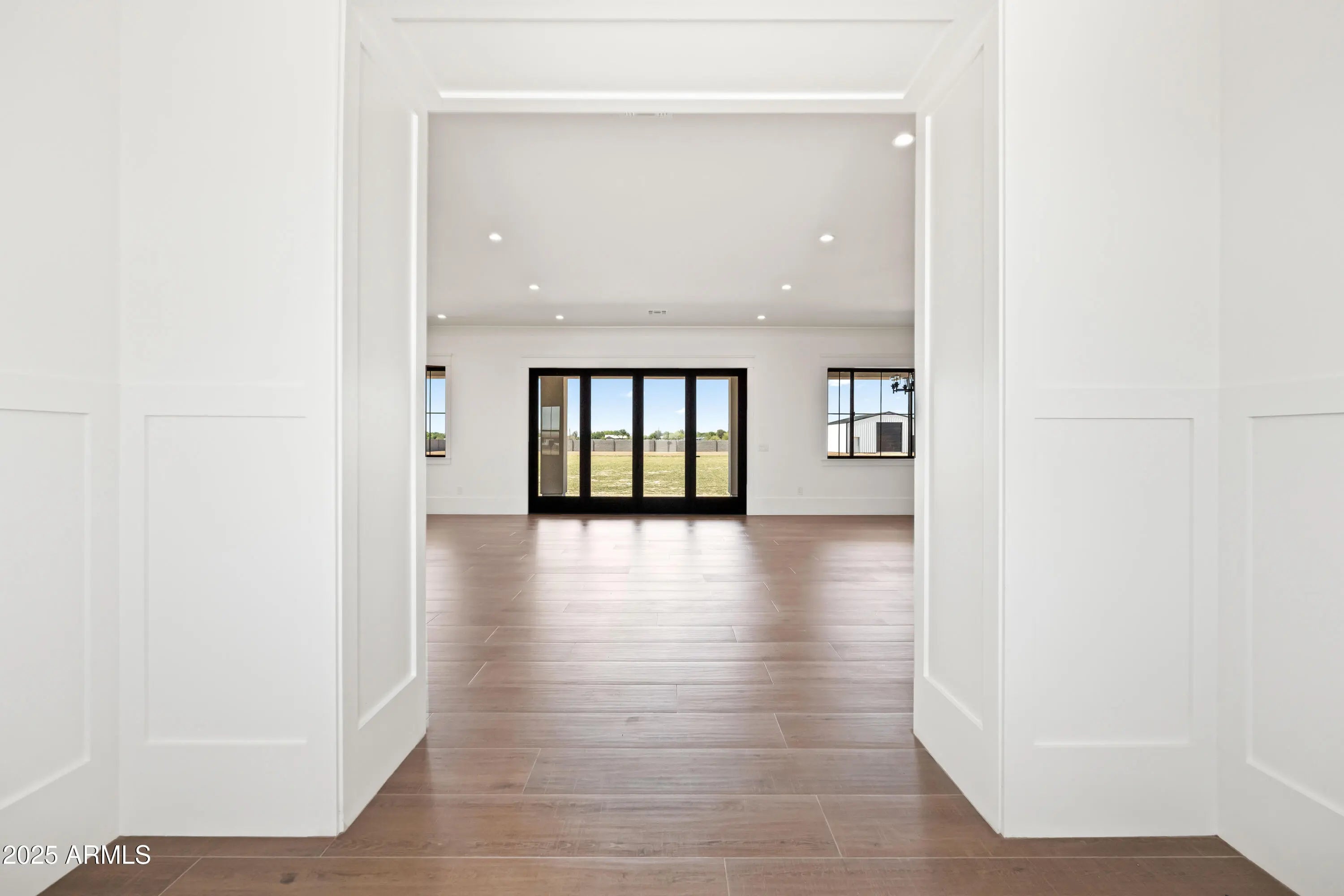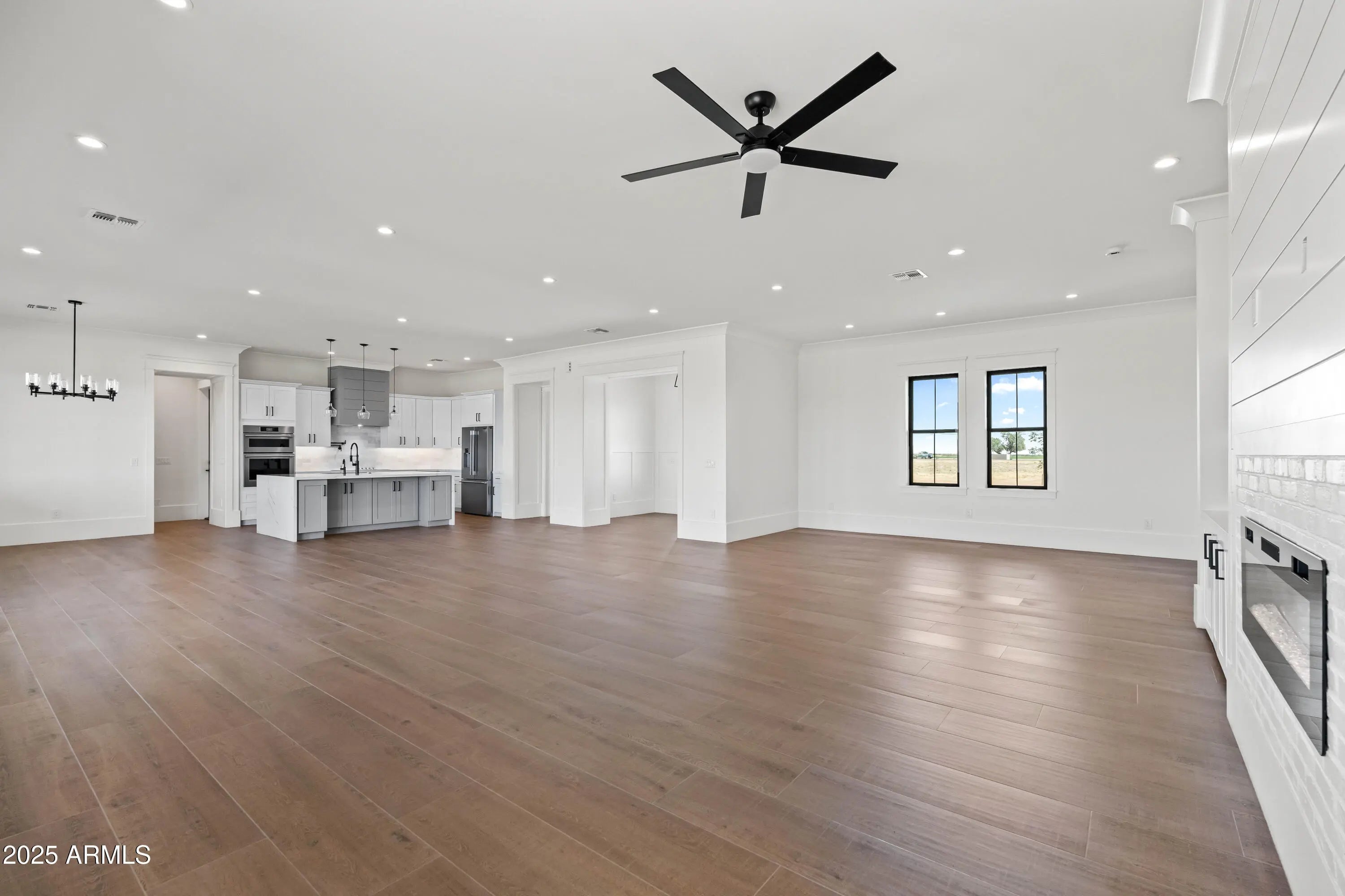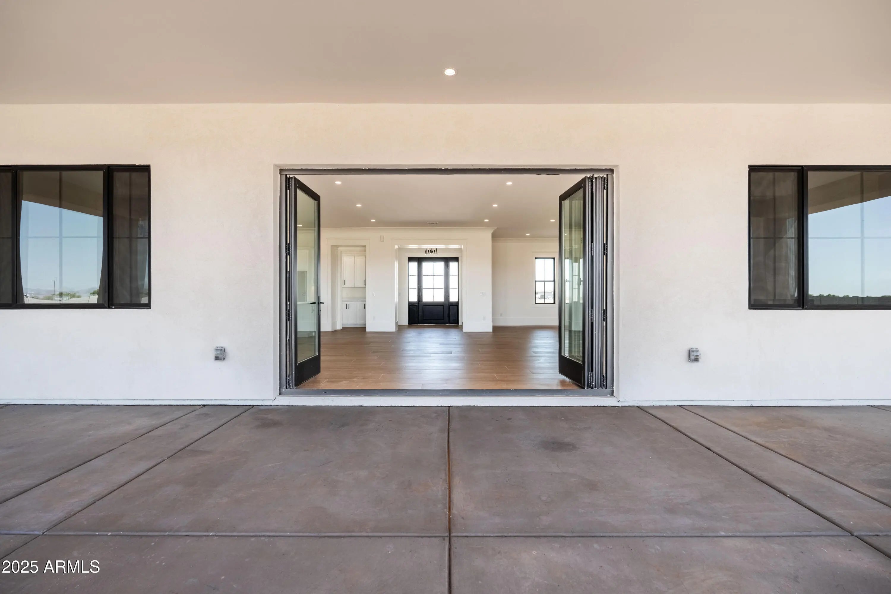 This is the one you've been waiting for - custom new construction on 2.5 acres with space, style, and substance. This 3,315 sf single-story home blends thoughtful craftsmanship with modern design, featuring 4 spacious bedrooms, 3 bathrooms, and an open-concept layout built for comfort and connection. Step inside and you'll immediately feel the difference—1' x 5' wood-look plank tile throughout, custom crown molding and upgraded trim at every turn, and an accordion-style patio door that opens wide to a scenic desert backdrop. The living room is anchored by a sleek fireplace and custom bookshelf, while the chef-inspired kitchen is the heart of the home with 42'' cabinetry with soft-close and dovetail drawers, stainless steel appliances, electric cooktop farmhouse apron sink, a large waterfall edge island, crisp quartz countertops and R/O system. Built with longevity and efficiency in mind, the home features spray foam insulation, 2"x6" framing (interior and exterior), 16" on-center construction, synthetic stucco, a durable metal roof system, and is electric car ready. The oversized 3-car garage includes extended depth and epoxy floors, perfect for storage or hobbies. Step outside and you'll appreciate the fully enclosed property, surrounded by a block wall with a 20' rolling automatic gate. The 2,000 square foot detached shop with a 14' door is a dream setup for a car enthusiast, horse owners, small business or anyone needing serious space. Front landscaping is already complete, and the entire property is on irrigation. And SAVE money with low well water bills! Location matters and this one is ideally situated just one mile from the planned Hwy 24 expansion, offering convenience without sacrificing the peaceful, open feel this property provides. The ideal buyer will love the space, freedom and flexibility this home offers whether you're looking to spread out, store your toys, or simply enjoy room to breathe.