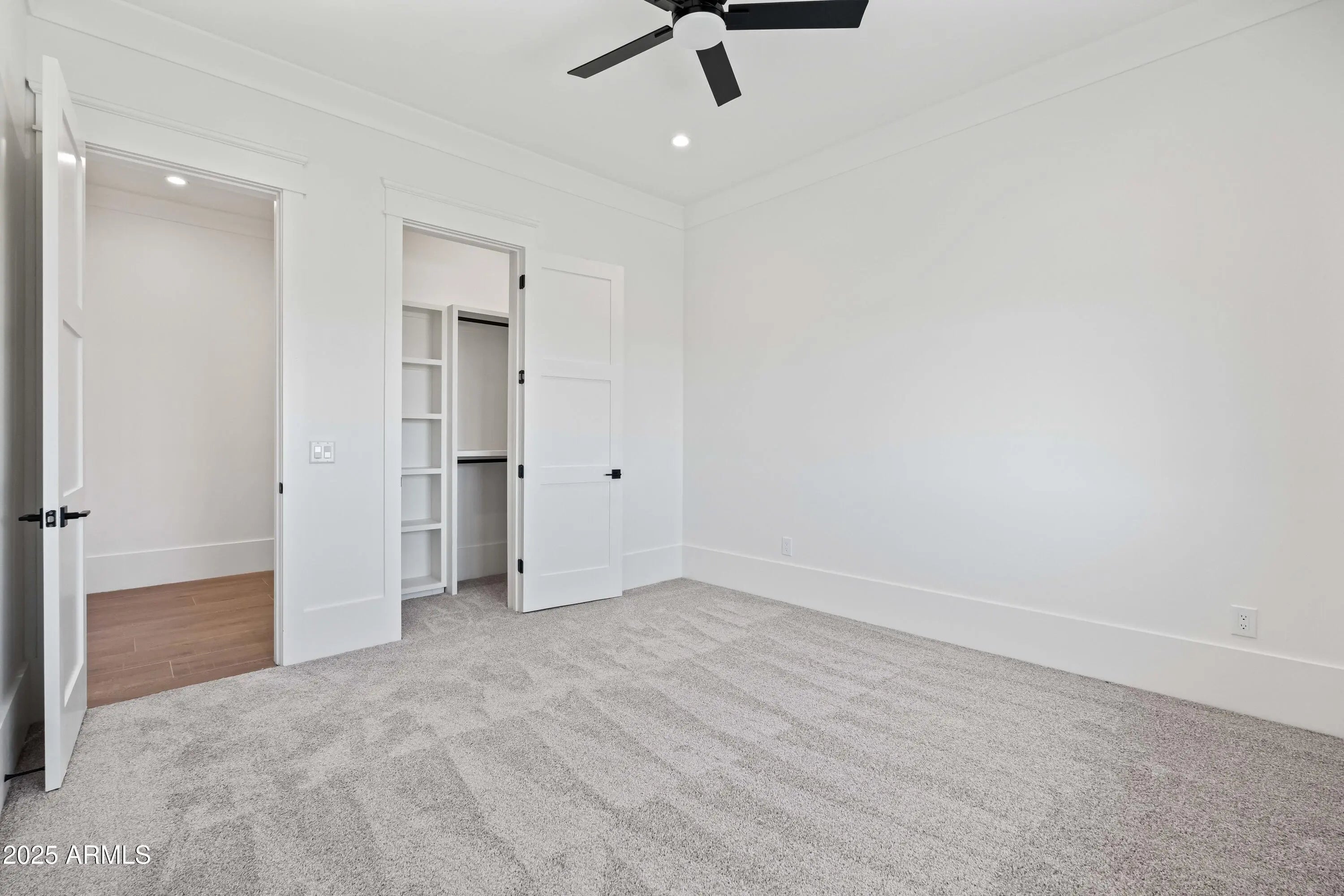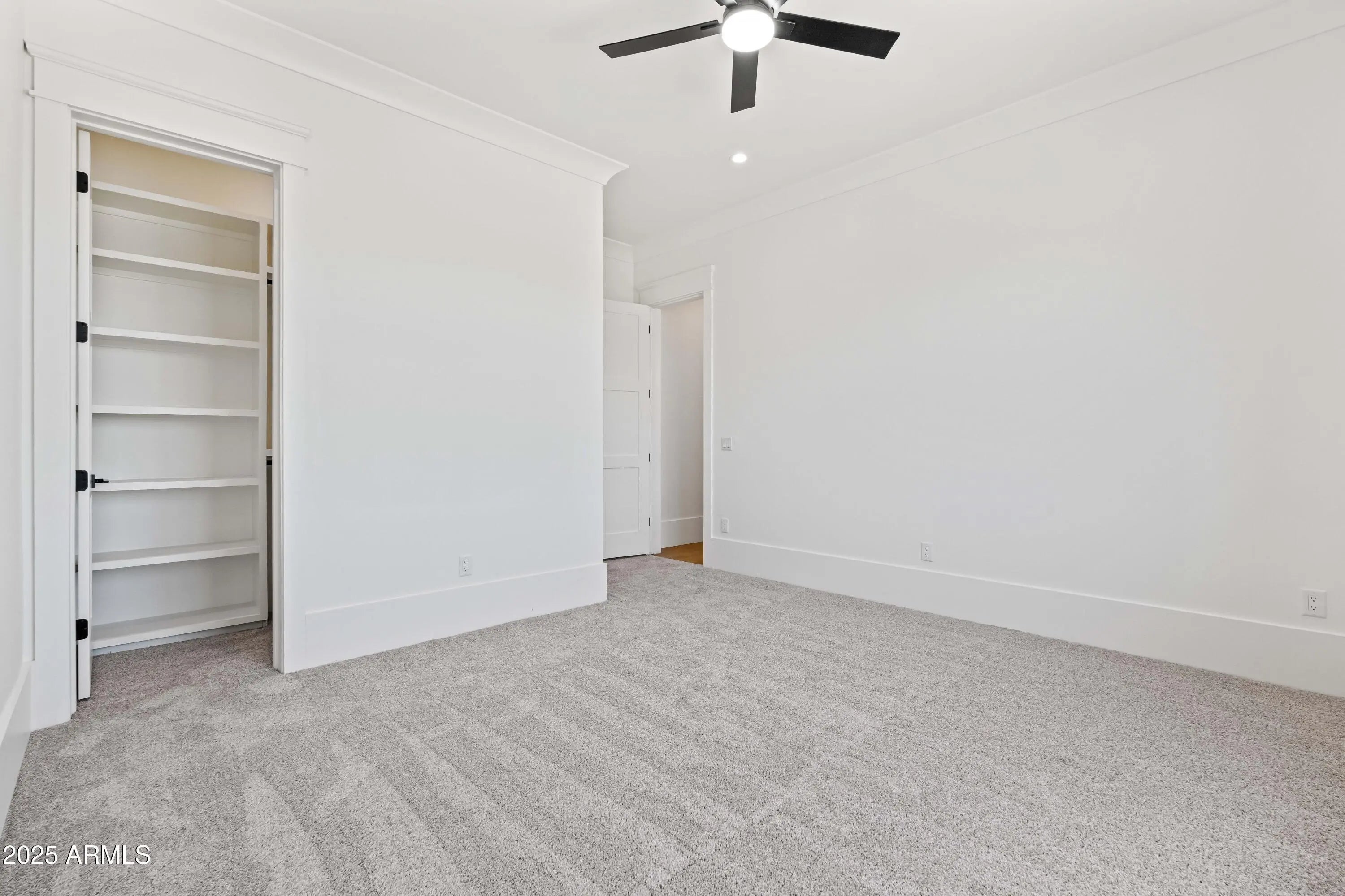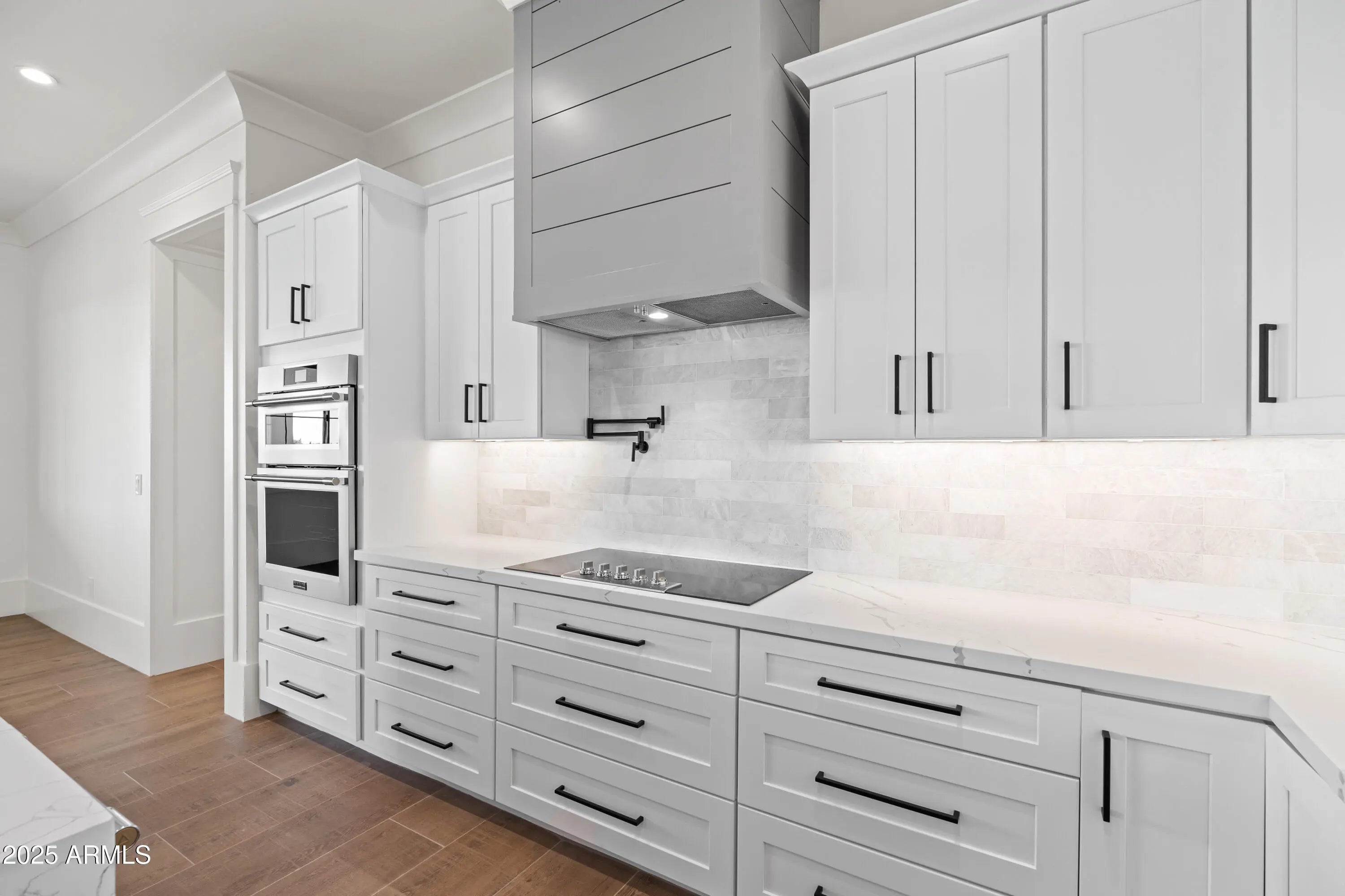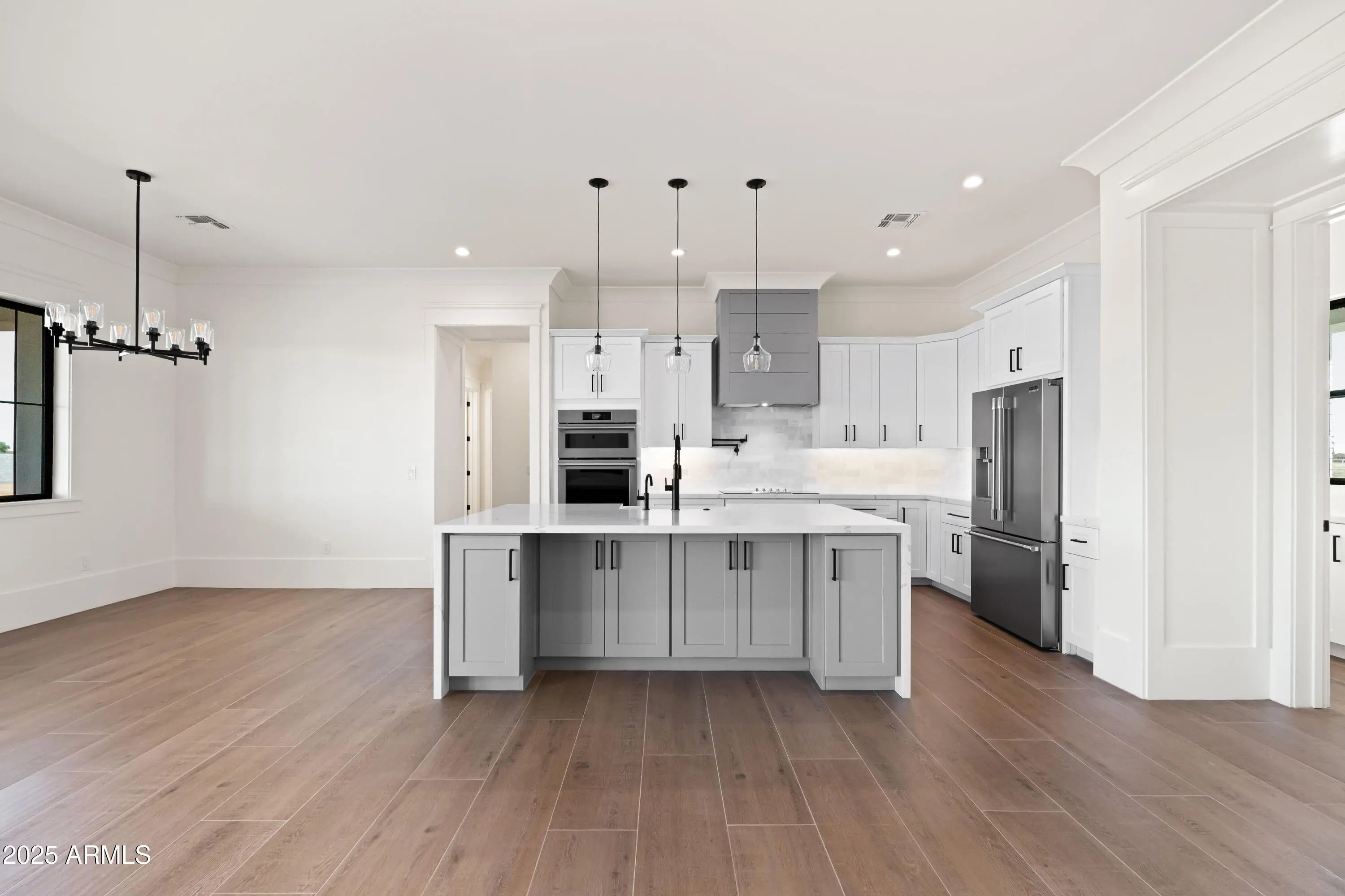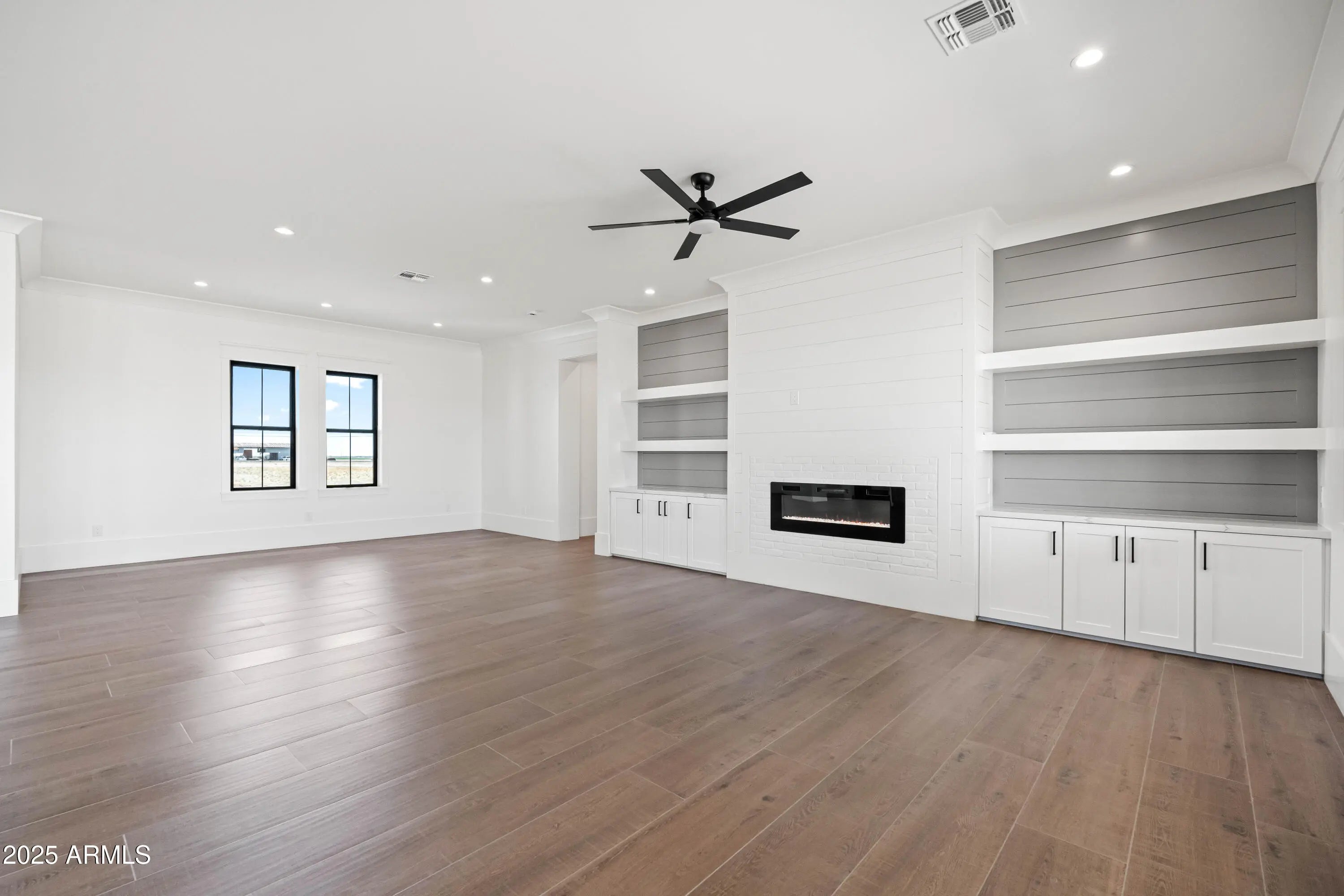 This is the one you've been waiting for - custom new construction on 2.5 acres with space, style, and substance. This 3,315 sf single-story home blends thoughtful craftsmanship with modern design, featuring 4 spacious bedrooms, 3 bathrooms, and an open-concept layout built for comfort and connection. Step inside and you'll immediately feel the difference—1' x 5' wood-look plank tile throughout, custom crown molding and upgraded trim at every turn, and an accordion-style patio door that opens wide to a scenic desert backdrop. The living room is anchored by a sleek fireplace and custom bookshelf, while the chef-inspired kitchen is the heart of the home with 42'' cabinetry with soft-close and dovetail drawers, stainless steel appliances, electric cooktop farmhouse apron sink, a large waterfall edge island, crisp quartz countertops and R/O system. Built with longevity and efficiency in mind, the home features spray foam insulation, 2"x6" framing (interior and exterior), 16" on-center construction, synthetic stucco, a durable metal roof system, and is electric car ready. The oversized 3-car garage includes extended depth and epoxy floors, perfect for storage or hobbies. Step outside and you'll appreciate the fully enclosed property, surrounded by a block wall with a 20' rolling automatic gate. The 2,000 square foot detached shop with a 14' door is a dream setup for a car enthusiast, horse owners, small business or anyone needing serious space. Front landscaping is already complete, and the entire property is on irrigation. And SAVE money with low well water bills! Location matters and this one is ideally situated just one mile from the planned Hwy 24 expansion, offering convenience without sacrificing the peaceful, open feel this property provides. The ideal buyer will love the space, freedom and flexibility this home offers whether you're looking to spread out, store your toys, or simply enjoy room to breathe.