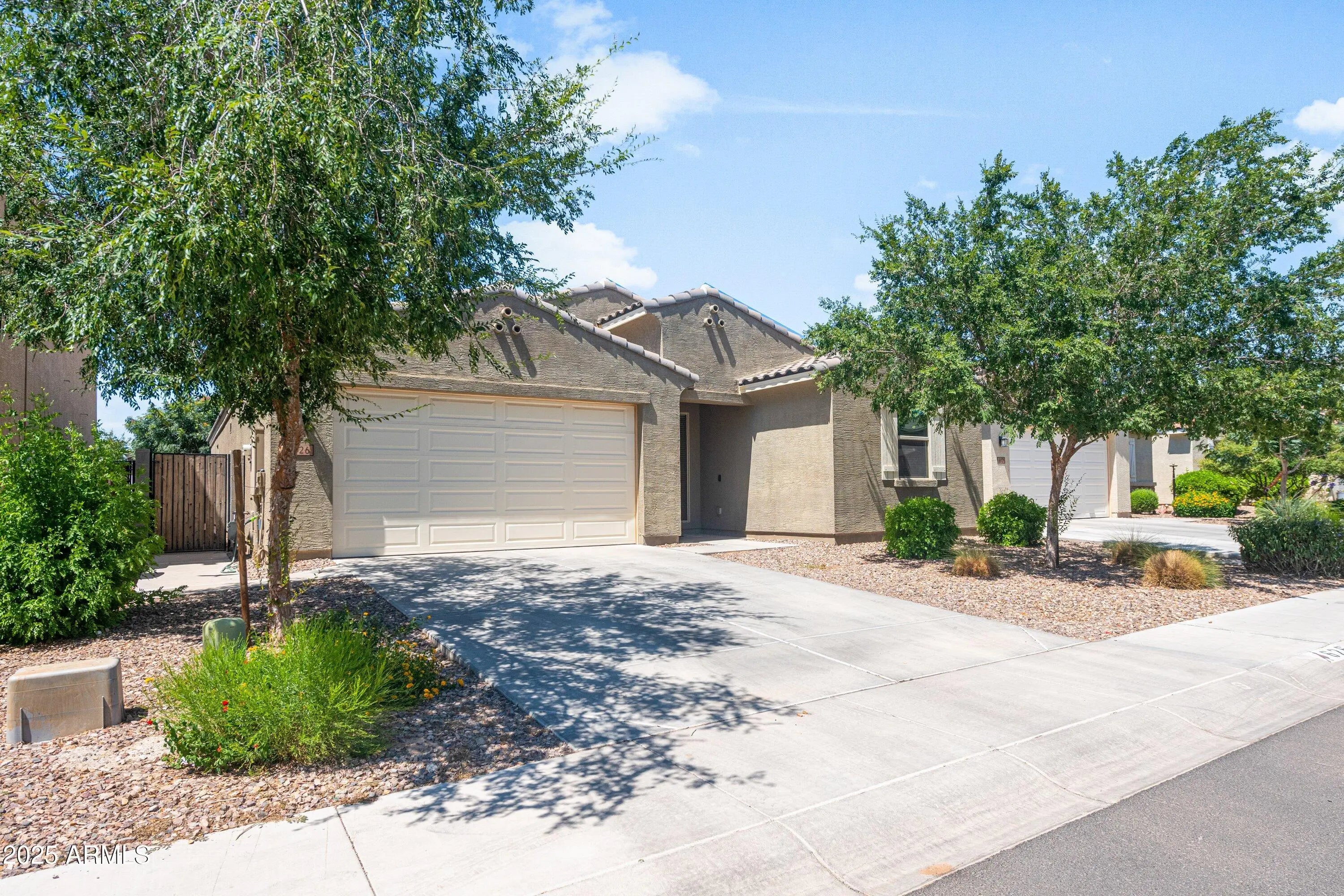 Step inside this beautifully maintained 3-bed, 2-bath single-level home (~2,127 sq ft) built in 2018, set on a generous 5,971 sq ft lot in vibrant San Tan Valley. You'll immediately notice the deep tandem 3-car garage (ideal for storage/workshop), high-end finishes and curb appeal that stands out from the moment you arrive. Enter into an open floor plan with tile floors, neutral palette and a family-friendly layout. The chef's kitchen is a highlight: granite countertops, wood cabinetry, stainless steel appliances, tile backsplash, pantry and a large breakfast bar island. The primary suite is quietly tucked away and features dual-sink vanity and walk-in closet. The backyard is made for Arizona living: covered patio, artificial turf and extended seating, perfect for summer cook-outs or relaxed evenings at home. Located in The Meadows East community with playgrounds and walking paths, just minutes from local shops and commuter routes. Don't miss your chance to own this modern, ready-to-go home in San Tan Valley
