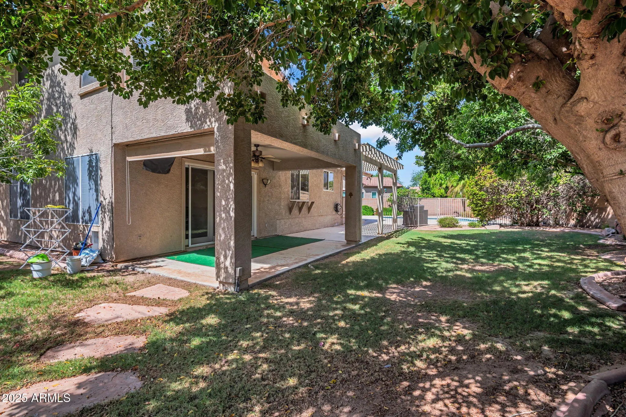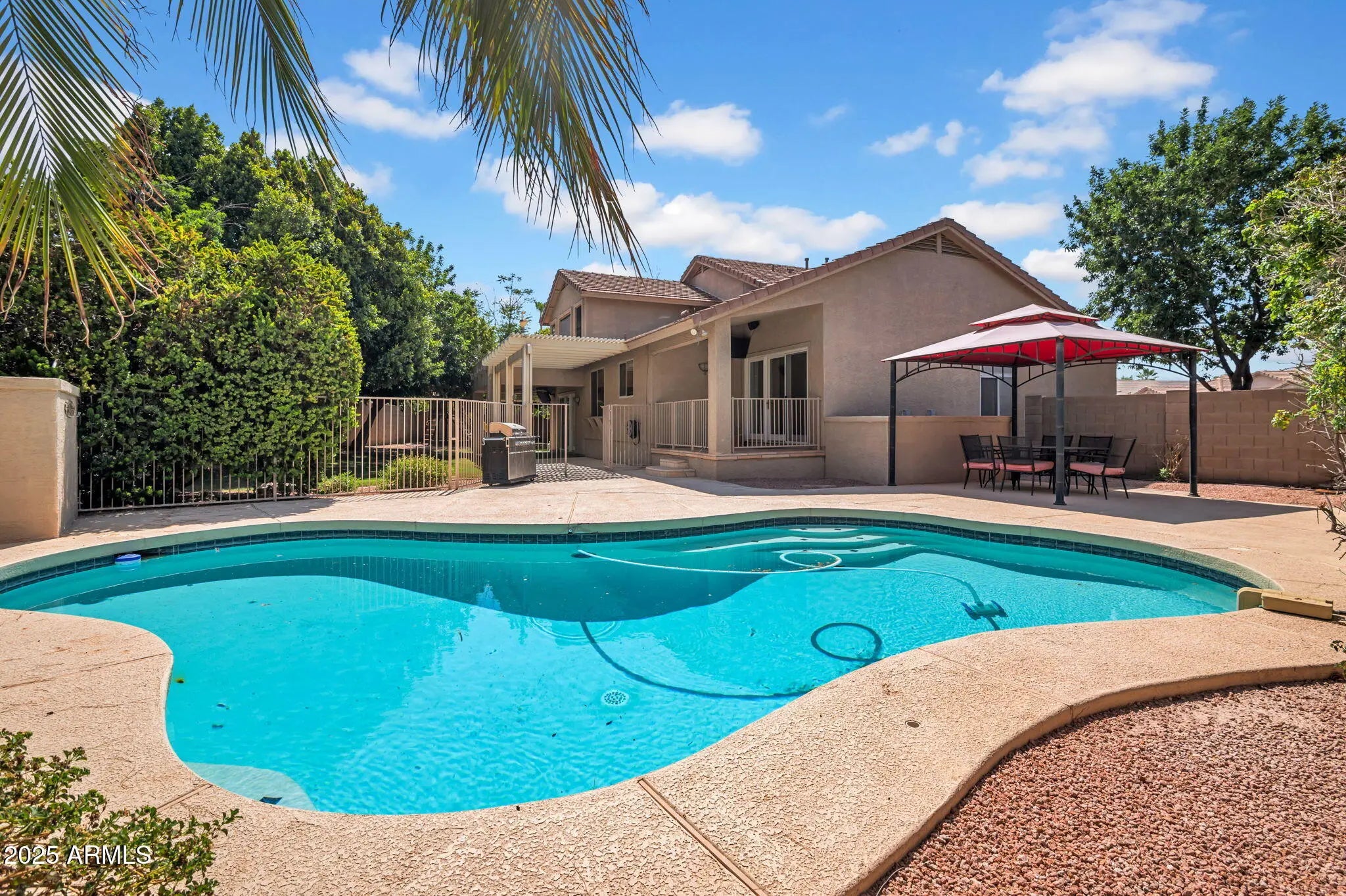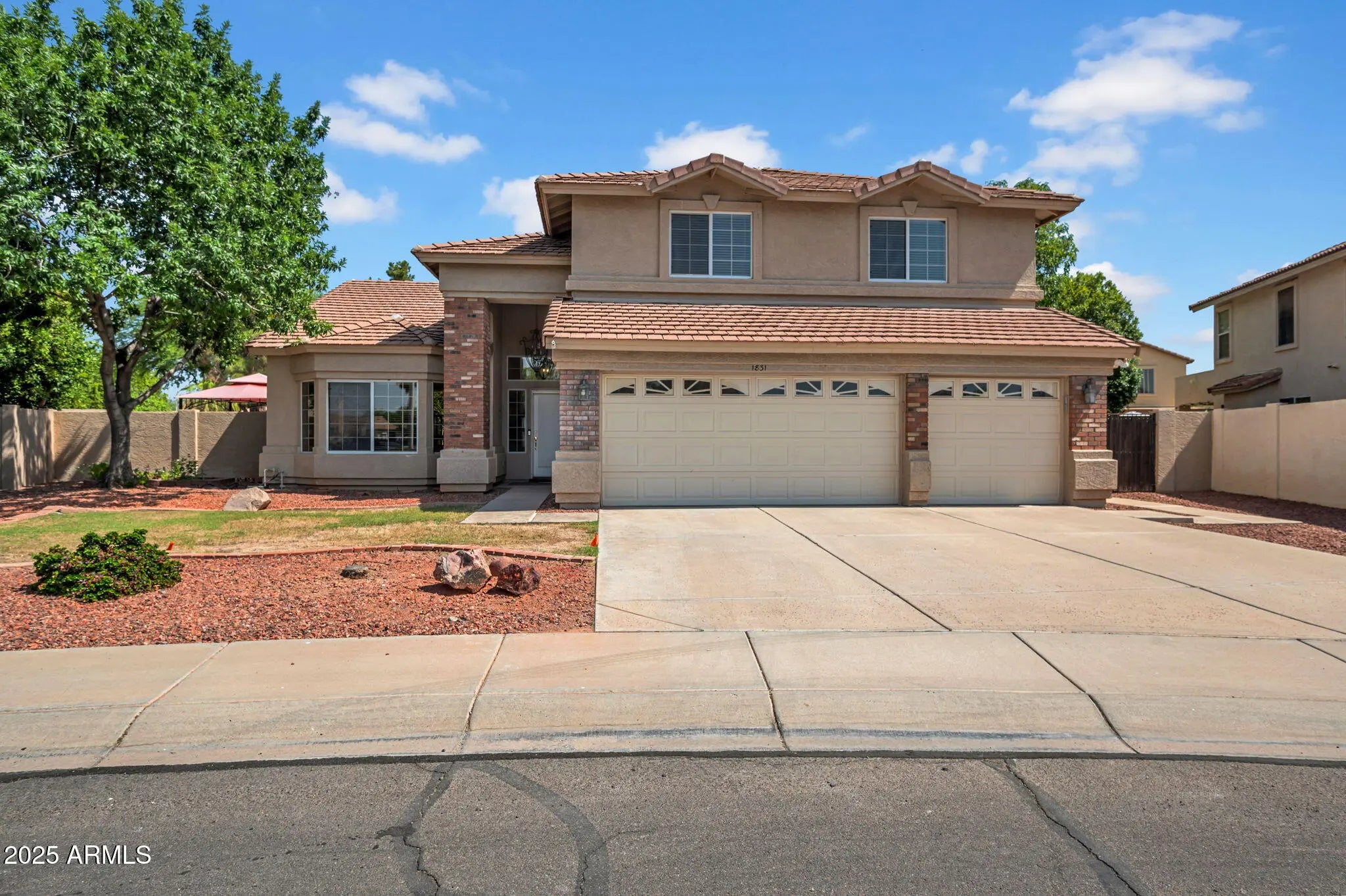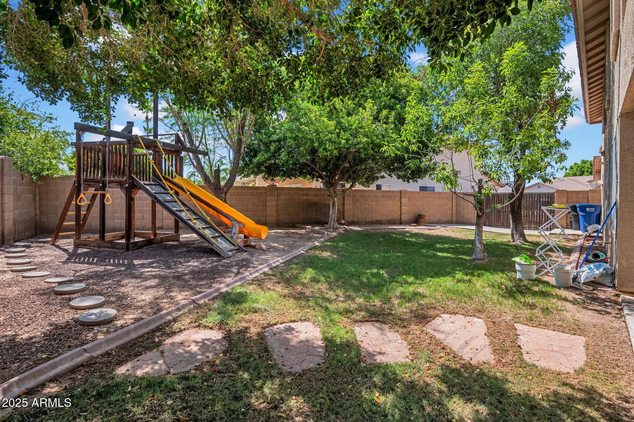 Welcome to 1831 W Armstrong Way, Chandler, AZ 85286 where comfort, space, and smart living come together in the sought after San Martin at The Vineyards community. Set on a generously sized lot with an RV gate, this beautifully maintained home combines timeless style with modern convenience. Rich hardwood floors create a warm and refined feel throughout the main living spaces. The custom kitchen features granite countertops, newer stainless-steel appliances, and flows effortlessly into the family room and dining area, perfect for both everyday living and entertaining. Downstairs, you'll find a full guest bedroom with a bathroom just steps away. Upstairs, the primary suite boasts two walk-in closets and a spacious en-suite bathroom partially renovated in 2021... ...plus three additional guest bedrooms, each with oversized closets for generous storage. Step outside to your private backyard oasis, where two sets of custom French doors open to an expansive covered patio, a fenced-in pool, children's playground and plenty of green space ideal for children at play or simply enjoying the Arizona sun. Smart home features include a Ring doorbell, fingerprint garage door lock, and window and door motion sensors offering both security and peace of mind. Located minutes from top-rated schools, shopping, dining, and medical facilities, this home offers the perfect balance of convenience and lifestyle.