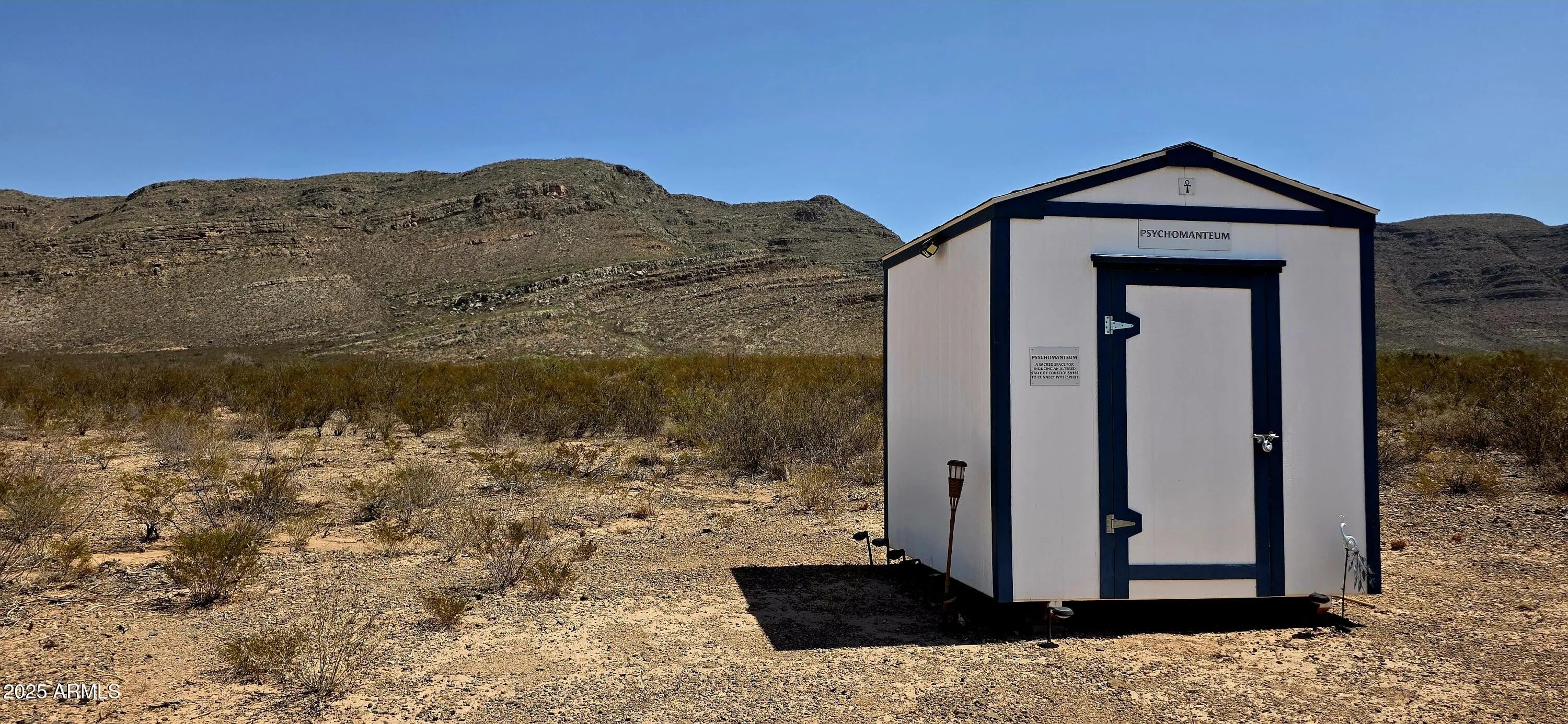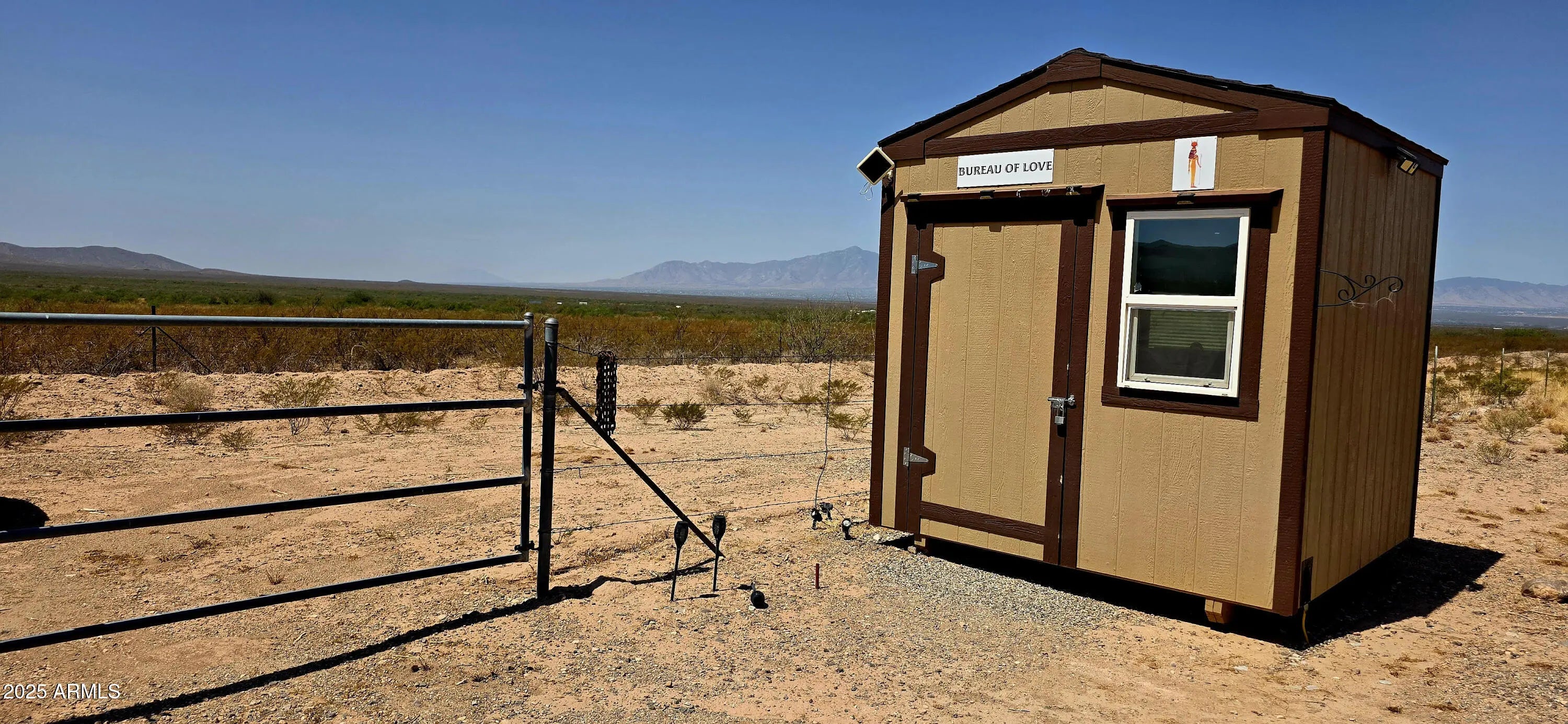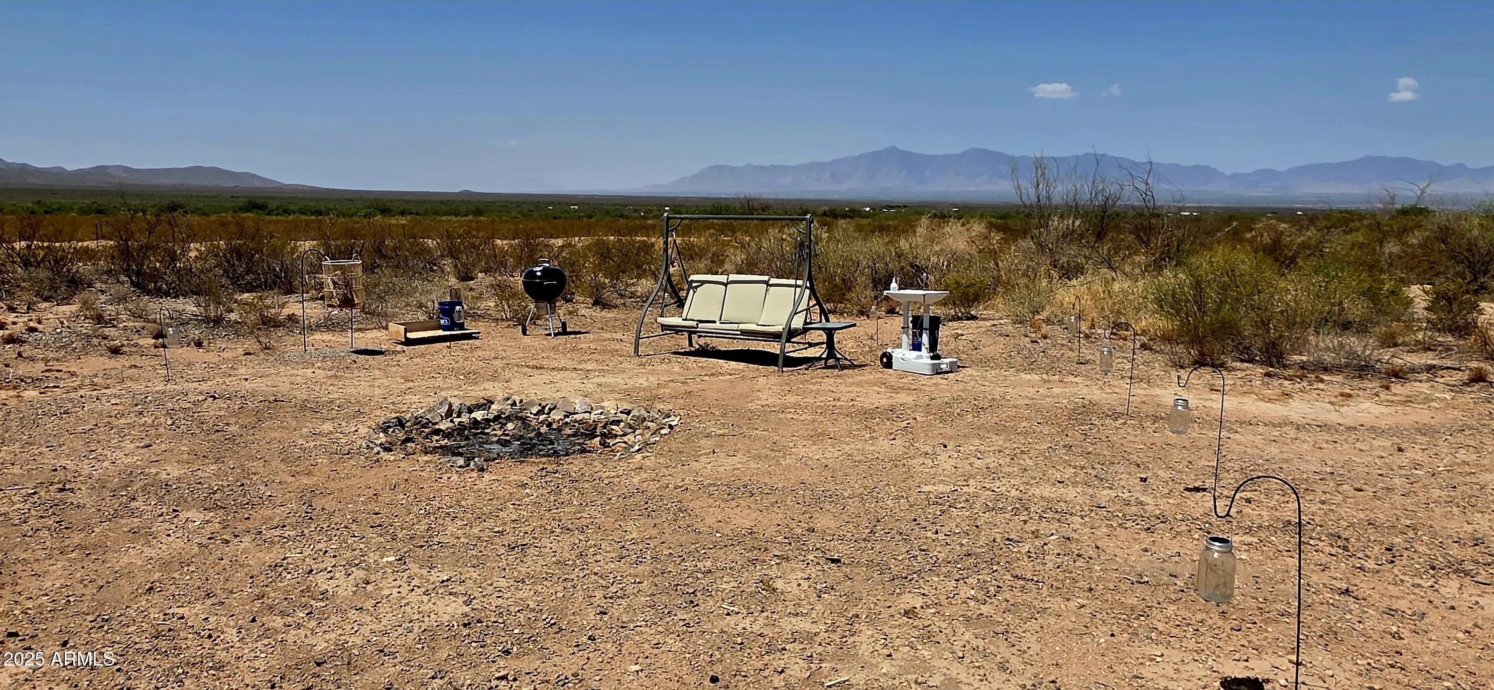 40.189 acres with four outbuildings on property. Two of the buildings are equipped with solar. The entire acreage is fenced and gated and the immediate living area is cleared. One can feel the serenity offered by this land. The 360 degree mountain views are soul stirring! The night sky is blanketed by stars, glinting and shimmering, melding with the lights of Sierra Vista, 30 minutes away. A meditation bench, crystal recharging table and a generator are a few of the items that convey with the sale. Zoned RU-4. the property is dividable, manufactured home allowed or use the Owner-Builder Opt Out and build your personal dream. The acreage is level and not in a flood zone. Easily traversed dirt road to property.