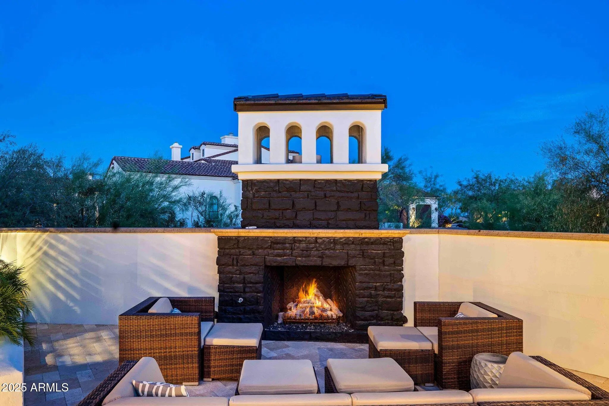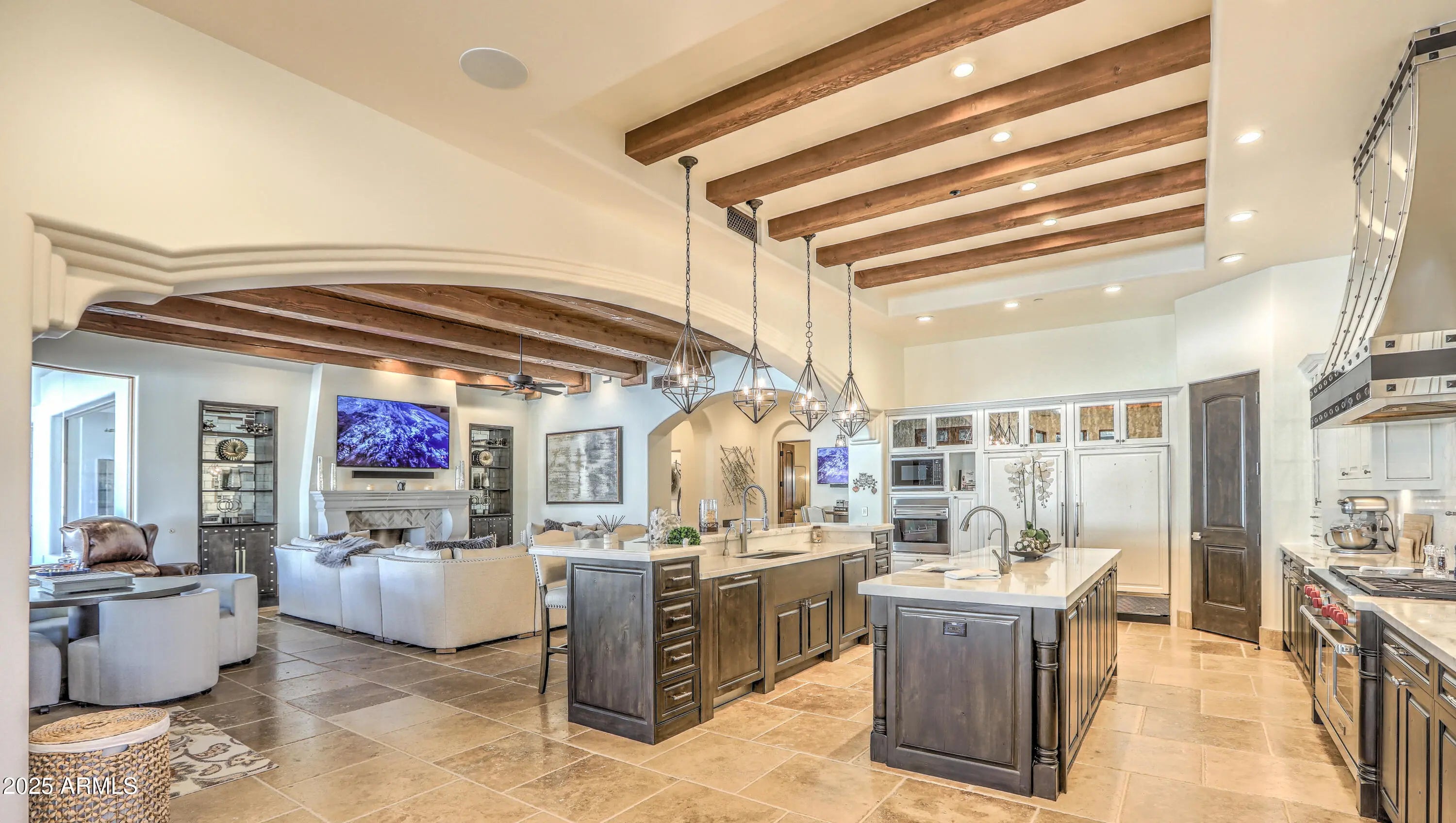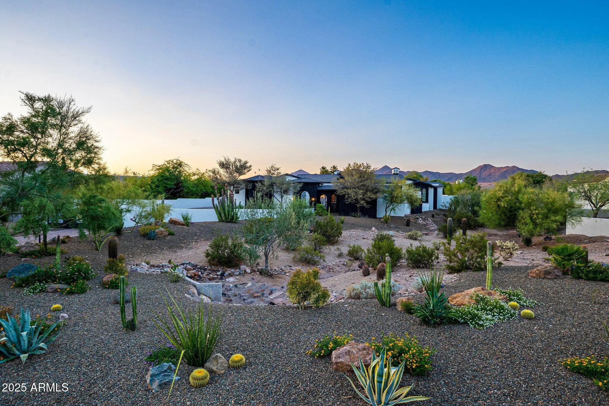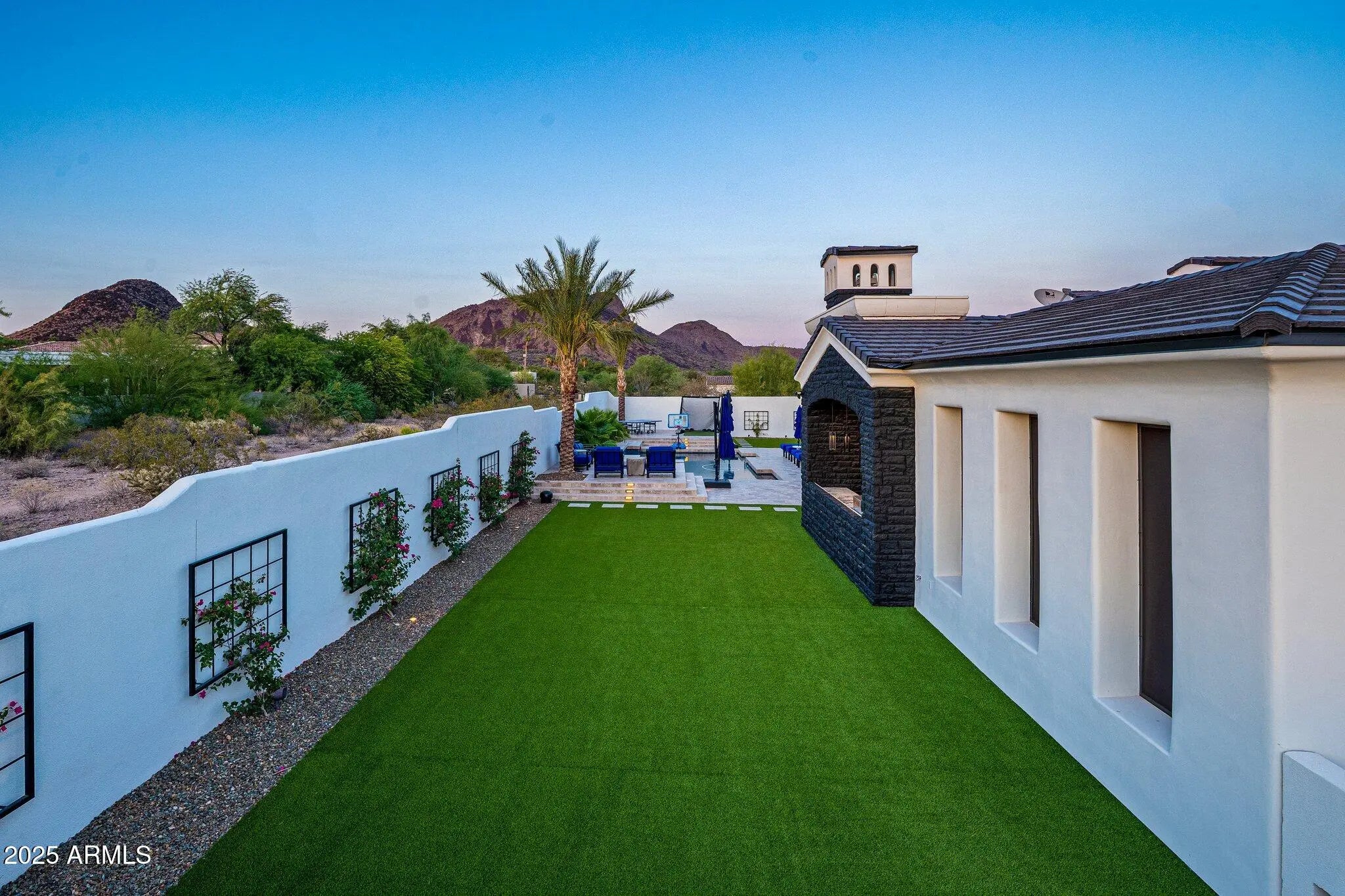 Behind a private gated entry driveway on quiet cul-de-sac this no-HOA spectacular estate has been fully transformed, offering opportunity to own a designer-finished home inside and out that lives like new. This property features more than $1.1 million in recent upgrades, including private travertine outdoor living with water/fire feature, 6 outdoor sound systems, 12-foot backyard walls sculpted to maximize privacy & mountain views, pool/spa, turf & hardscape, huge covered patio, multiple TVs, surround sound, fireplaces, and outdoor kitchen. A designer home w/ full chef's kitchen, soaring architectural ceilings, rotundas, curated finishes, sanctuary primary suite w/ 2 sitting areas, dual-sided fireplace, 2 generous walk-in closets, dual water closets, and a spa-caliber bath w/ sauna & gym. This property truly is architectural brilliance meeting turnkey luxury in a Scottsdale Mountain view estate. This spectacular estate has been fully transformed, offering the rare opportunity to own a fully designer-finished home and outdoor living spaces. Set against a breathtaking 360° backdrop of rugged mountain peaks and brilliant desert skies, this is where timeless design meets effortless resort living. This property features a newly refinished travertine courtyard with its own full-size gated entry, a fireplace, a unique water/fire feature and a full outdoor sound system. The courtyard leads to a dramatic arched entry, where a custom over-sized iron door opens into interiors defined by soaring beamed and barrel ceilings, two rotundas, rich textures, and curated finishes. A Restoration Hardware-featured fireplace anchors the formal living room, setting the tone for spaces that are as architectural as they are welcoming. At the heart of the home, a custom chef's kitchen stuns with dual marble-topped islands, glazed cabinetry, a mother-of-pearl backsplash, and top-of-the-line Wolf, and Sub-Zero appliances, w/ a separate bar and wine room in the family room. Whether hosting a crowd or cooking solo, every detail is designed to elevate the everyday. The primary suite is a sanctuary of scale and serenity. Enjoy a private sitting area, dual-sided fireplace, two generous walk-in closets, dual water closets, and a spa-caliber bath complete with sauna and fitness room. Each guest suite offers its own luxe ensuite bath and walk-in closet, while the detached casitaw/ kitchenette, full bath, and walk-in closetwelcomes guests or extended family with style and privacy. Modern luxury is woven into every corner: an upgraded Savant smart home system integrates lighting, sound, HVAC and AV throughout. Ten ultra-thin Sony 4K TVs, Sonos soundbars, architectural speakers throughout the entire house and exterior, and a newly upgraded 8K projector in the custom home theater deliver an immersive entertainment experience. A commercial-grade Cox Gigabit hardwired WI-FI internet system ensures seamless connectivity. The resort-caliber backyard feels like a private retreat, complete w/ a newly resurfaced Pebble Tec pool and spa, brand-new turf and hardscape, a dramatic outdoor fireplace, and a newly outfitted kitchen with built-in grillall set beneath a covered travertine patio with new ceiling fans and a surround sound TV system. Major enhancements include a complete reimagination of the entire outdoor area of this 1-acre estate, enlarged car parking area, new gated driveway with connected walls for privacy and security, all-new exterior and interior paint, a new concrete tile roof with a 15-year warranty and all new flat roof w/ 12-year warranty, and five new HVAC systems, EV charging outlet in the garage, updated Savant system, new speakers and sound bars throughout, new theater AV equipment, newly imagined family room built-ins and fireplace, with updated lighting, cabinetry and countertops throughout. From sweeping views to sophisticated details, every inch of this property has been elevated. This is more than a homeit's a design-forward lifestyle and a rare opportunity to own one of the most refined and turnkey estates in the desert.