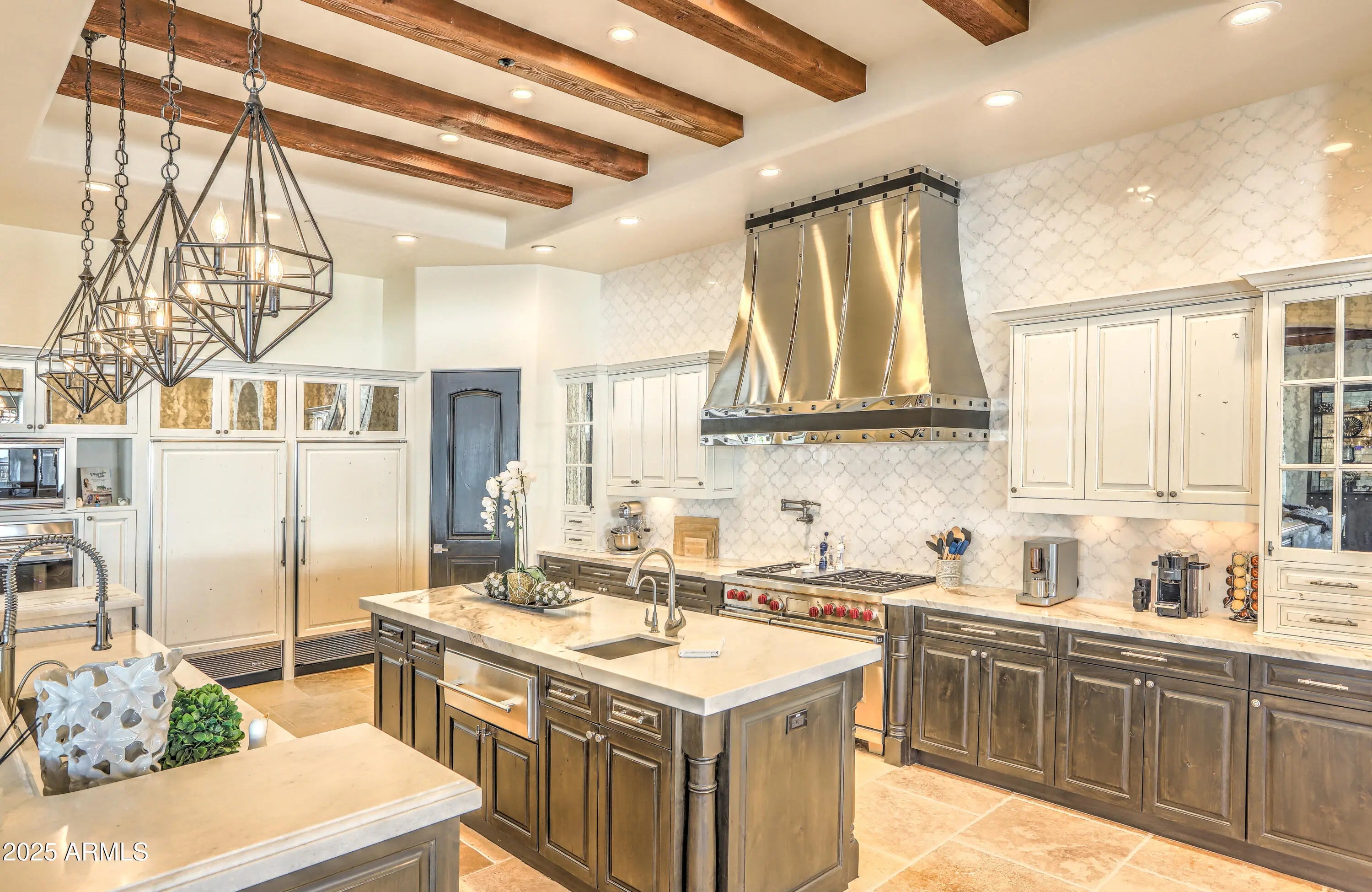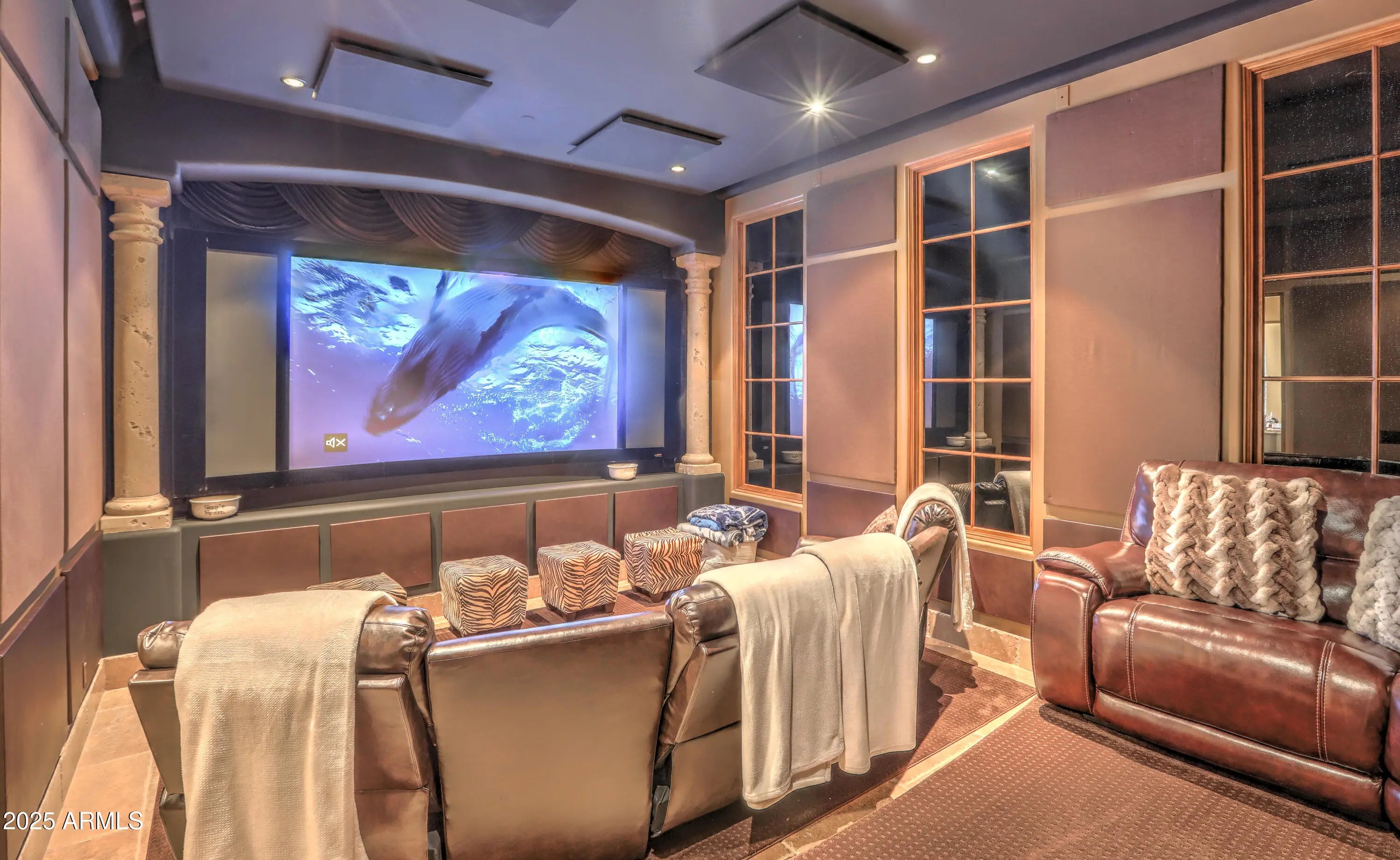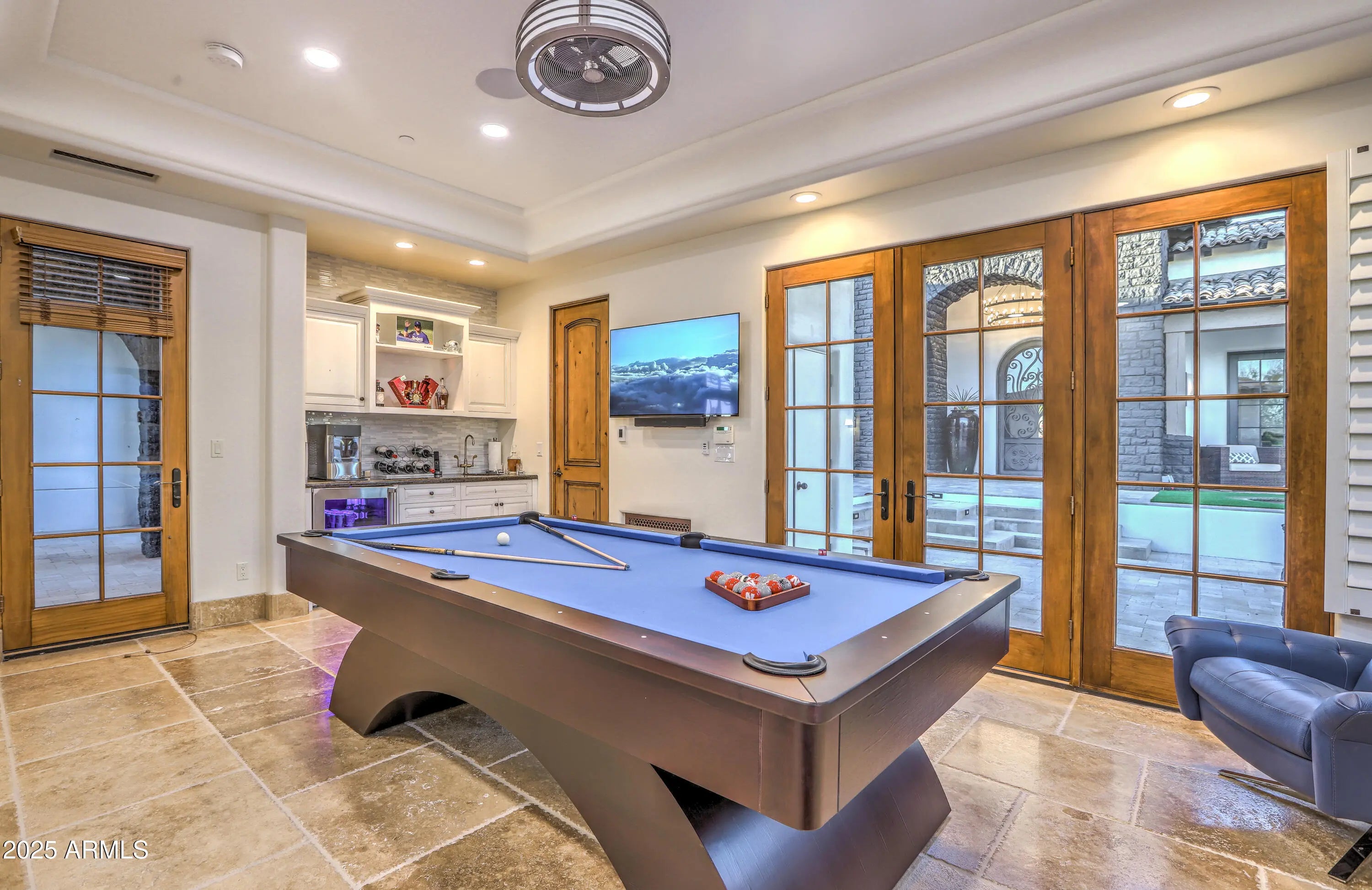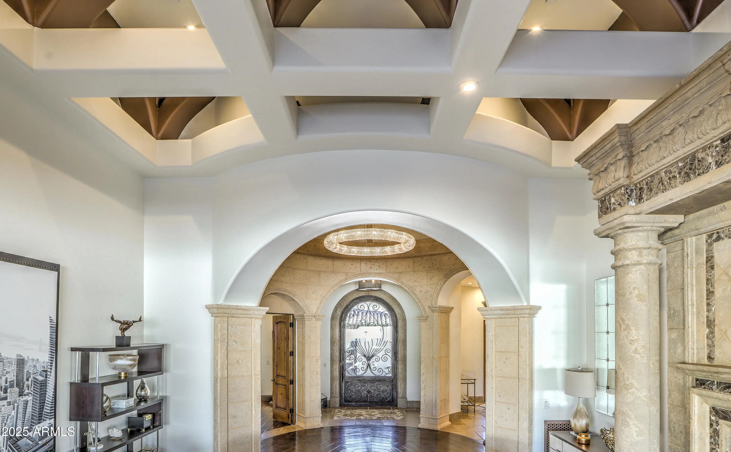 Behind a private gated entry driveway on quiet cul-de-sac this no-HOA spectacular estate has been fully transformed, offering opportunity to own a designer-finished home inside and out that lives like new. This property features more than $1.1 million in recent upgrades, including private travertine outdoor living with water/fire feature, 6 outdoor sound systems, 12-foot backyard walls sculpted to maximize privacy & mountain views, pool/spa, turf & hardscape, huge covered patio, multiple TVs, surround sound, fireplaces, and outdoor kitchen. A designer home w/ full chef's kitchen, soaring architectural ceilings, rotundas, curated finishes, sanctuary primary suite w/ 2 sitting areas, dual-sided fireplace, 2 generous walk-in closets, dual water closets, and a spa-caliber bath w/ sauna & gym. This property truly is architectural brilliance meeting turnkey luxury in a Scottsdale Mountain view estate. This spectacular estate has been fully transformed, offering the rare opportunity to own a fully designer-finished home and outdoor living spaces. Set against a breathtaking 360° backdrop of rugged mountain peaks and brilliant desert skies, this is where timeless design meets effortless resort living. This property features a newly refinished travertine courtyard with its own full-size gated entry, a fireplace, a unique water/fire feature and a full outdoor sound system. The courtyard leads to a dramatic arched entry, where a custom over-sized iron door opens into interiors defined by soaring beamed and barrel ceilings, two rotundas, rich textures, and curated finishes. A Restoration Hardware-featured fireplace anchors the formal living room, setting the tone for spaces that are as architectural as they are welcoming. At the heart of the home, a custom chef's kitchen stuns with dual marble-topped islands, glazed cabinetry, a mother-of-pearl backsplash, and top-of-the-line Wolf, and Sub-Zero appliances, w/ a separate bar and wine room in the family room. Whether hosting a crowd or cooking solo, every detail is designed to elevate the everyday. The primary suite is a sanctuary of scale and serenity. Enjoy a private sitting area, dual-sided fireplace, two generous walk-in closets, dual water closets, and a spa-caliber bath complete with sauna and fitness room. Each guest suite offers its own luxe ensuite bath and walk-in closet, while the detached casitaw/ kitchenette, full bath, and walk-in closetwelcomes guests or extended family with style and privacy. Modern luxury is woven into every corner: an upgraded Savant smart home system integrates lighting, sound, HVAC and AV throughout. Ten ultra-thin Sony 4K TVs, Sonos soundbars, architectural speakers throughout the entire house and exterior, and a newly upgraded 8K projector in the custom home theater deliver an immersive entertainment experience. A commercial-grade Cox Gigabit hardwired WI-FI internet system ensures seamless connectivity. The resort-caliber backyard feels like a private retreat, complete w/ a newly resurfaced Pebble Tec pool and spa, brand-new turf and hardscape, a dramatic outdoor fireplace, and a newly outfitted kitchen with built-in grillall set beneath a covered travertine patio with new ceiling fans and a surround sound TV system. Major enhancements include a complete reimagination of the entire outdoor area of this 1-acre estate, enlarged car parking area, new gated driveway with connected walls for privacy and security, all-new exterior and interior paint, a new concrete tile roof with a 15-year warranty and all new flat roof w/ 12-year warranty, and five new HVAC systems, EV charging outlet in the garage, updated Savant system, new speakers and sound bars throughout, new theater AV equipment, newly imagined family room built-ins and fireplace, with updated lighting, cabinetry and countertops throughout. From sweeping views to sophisticated details, every inch of this property has been elevated. This is more than a homeit's a design-forward lifestyle and a rare opportunity to own one of the most refined and turnkey estates in the desert.