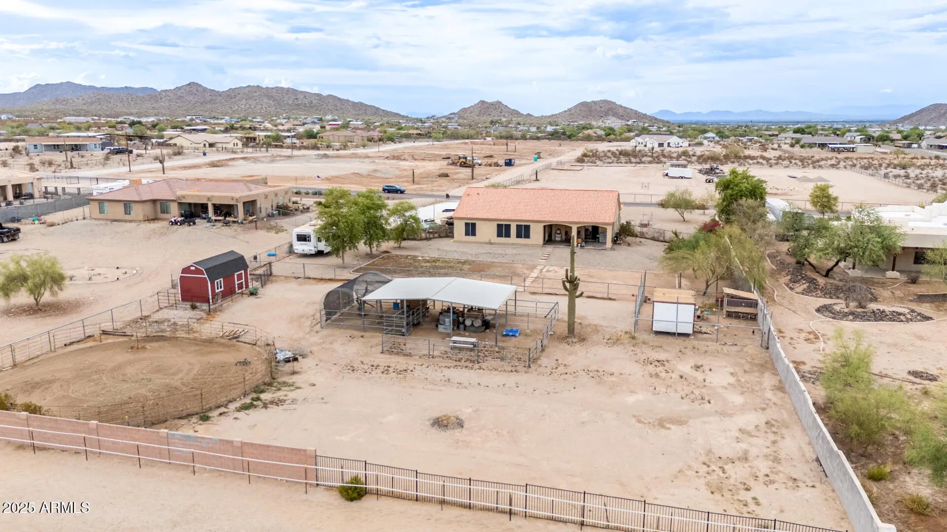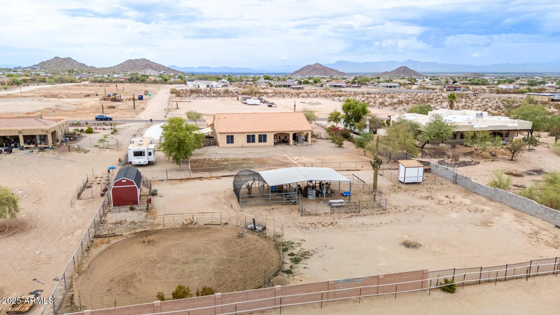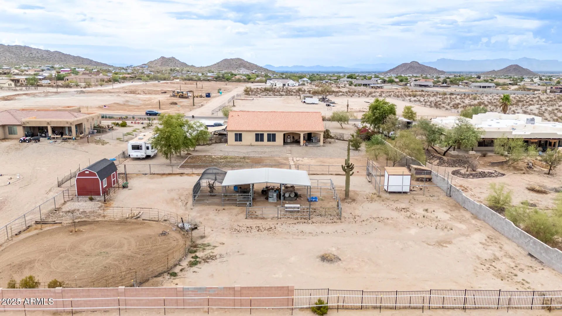 HORSE PROPERTY ON 1.25 ACRES. Want a home where you can stretch out and not touch your neighbors wall? This 4 bedroom 2 bathroom San Tan Regional County Island offers just that. Equipped with 3 horse stalls and a round pen this home is turn key for an equestrian enthusiast. Bring your horses and kick up your feet. This home has a extra large rooms!! Work on your next project in the spacious 3 car garage. Enjoy parties indoors with the extra large dining and living room. Tons of cabinet space to store your plates and cookware. Enjoy evenings by the fireplace or soak in the master bathrooms separate tub. Spend cool winter days outside on the south facing patio. Store your toys on the side of the yard inside a the built out RV area. Home has completed backyard fencing for your dogs or goats.