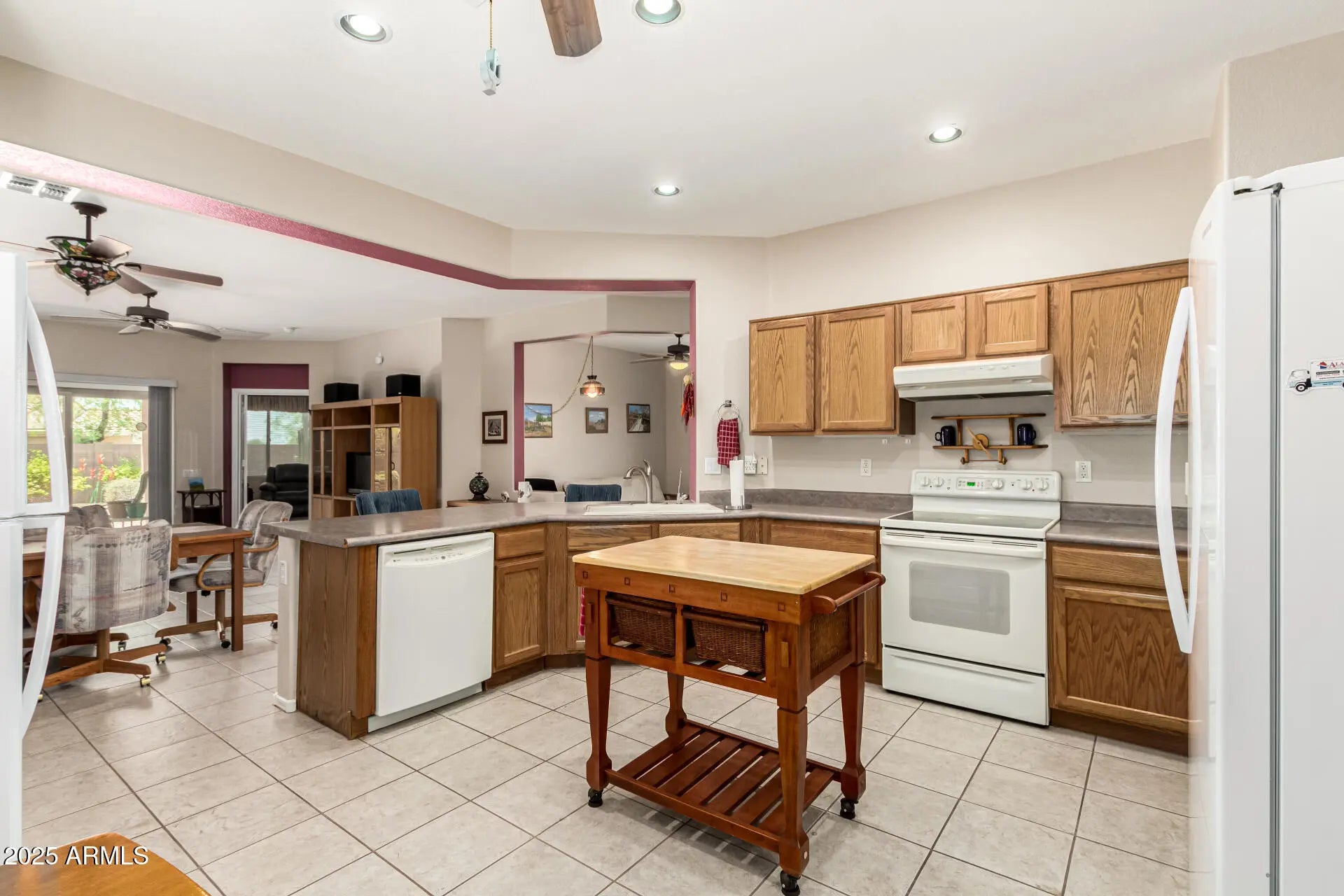 MY OH MY, ORIGINAL OWNER LOVED HOME! NEUTRAL TILE IN TRAFFIC & WET AREAS, SPLIT FLOOR PLAN WITH PRIMARY BEDROOM AT THE BACK OFF FAMILY ROOM! 2 OTHER BEDROOMS AT THE FRONT OF THE HOME PLUS A WONDERFUL OPEN ROOM, HAS BEEN USED FOR FORMAL DINING, OPEN DEN, PLAY ROOM, YOU CHOOSE! KITCHEN IS OPEN & BRIGHT WITH PANTRY, NICE TONE OAK CABINETS & CORNER SINK OVERLOOKING OPEN LIVING AREA, GREAT ROOM & DINETTE AREA! CEILING FANS EVERYWHERE! IMPROVEMENTS INCLUSE HVAC SYSTEM 2020, SOME ROOF WORK, HOT WATER TANK! GORGEOUS DESERT YARD, GAS LINE FOR GRILL, SECURITY DOOR, LAUNDRY ROOM CABINETS PLUS EXTENDED LENGTH GARAGE! LONG DRIVEWAY TOO! DID I MENTION THE AMAZING VIEWS & PRIVACY NEXT TO OPEN DESERT AREA? MAKE SURE YOU SEE THIS ONE SOON, IT'S A KEEPER! FURNISHINGS AVAILABLE UNTIL SOLD