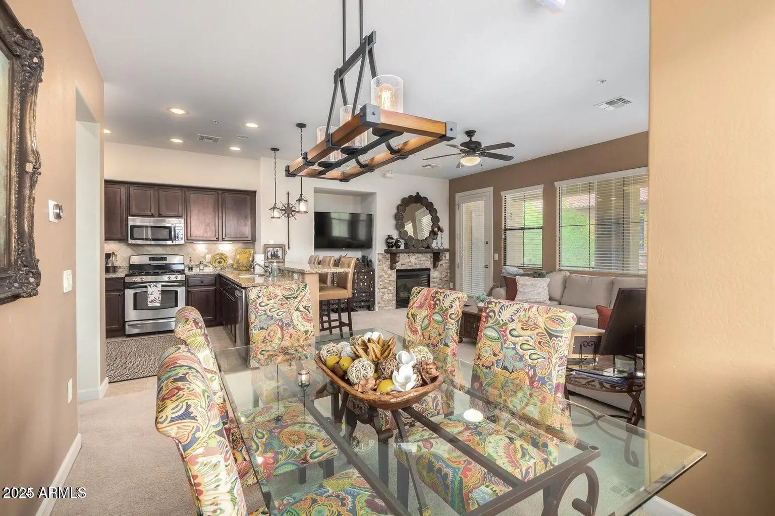 Amazing townhome near McDowell Mountain Preserve with new A/C system! Welcome to this beautifully updated two-bedroom, two-bath townhome featuring a two-car garage. The living room boasts a beautiful fireplace with elegant stone accents, creating a warm and inviting atmosphere. Step outside to a large, open patio, perfect for relaxing or entertaining. The modern kitchen is a chef's dream, equipped with stainless steel appliances, stunning granite countertops, and a convenient breakfast bar. Enjoy meals in the adjacent formal dining area, enhanced with updated fixtures that add a touch of sophistication. The large master bedroom offers a private balcony, providing a serene retreat with views of the surrounding area. Inside laundry adds convenience, making daily chores a breeze. Located just steps away from the McDowell Mountain Preserve, and minutes from Scottsdale's shopping and dining, this townhome offers easy access to outdoor adventures and breathtaking scenery. Experience the perfect blend of comfort, style, and location in this must-see home!