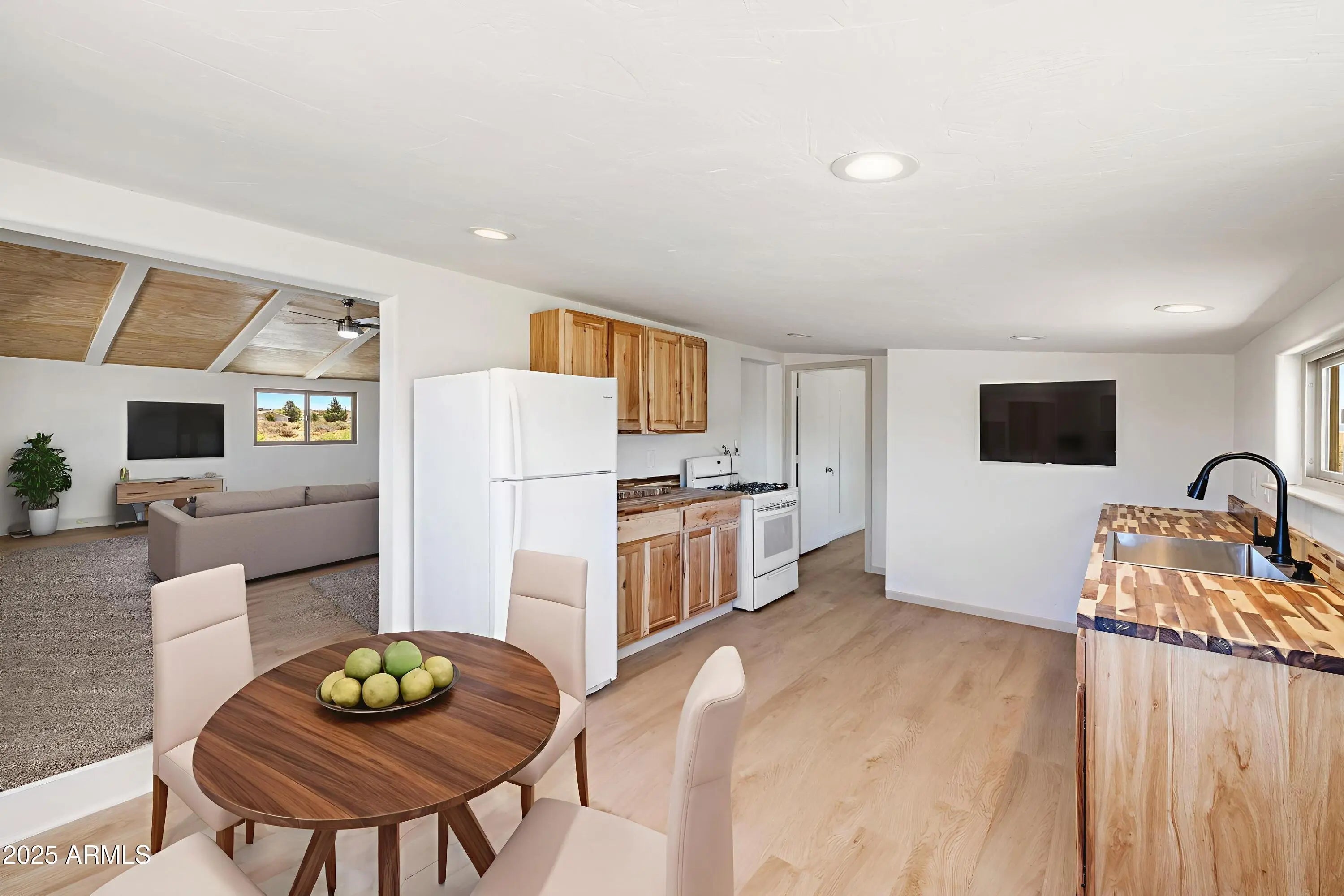 Dreaming of wide-open spaces and fresh renovations? This fully remodeled 3 bed, 2 bath ranch in charming Skull Valley sits on 2.49 acres with views for days! Vaulted ceilings, almost everything brand-new (floors, vanities, cabinets!) and that cozy modern-meets-country vibe. Got horses? Bring'em! Love pets? There's room to roam. The sunny kitchen with natural wood finishes is a chef's dream. With its peaceful setting and open sky views, this gem is ready for your new adventure!