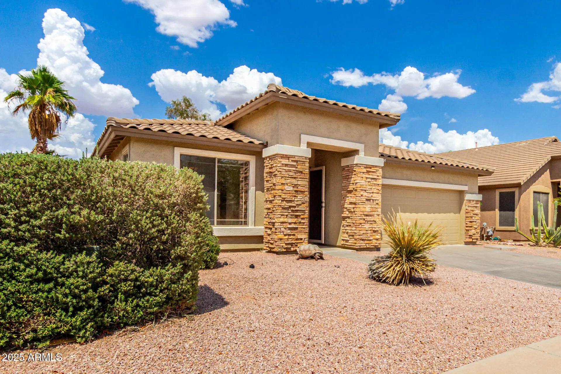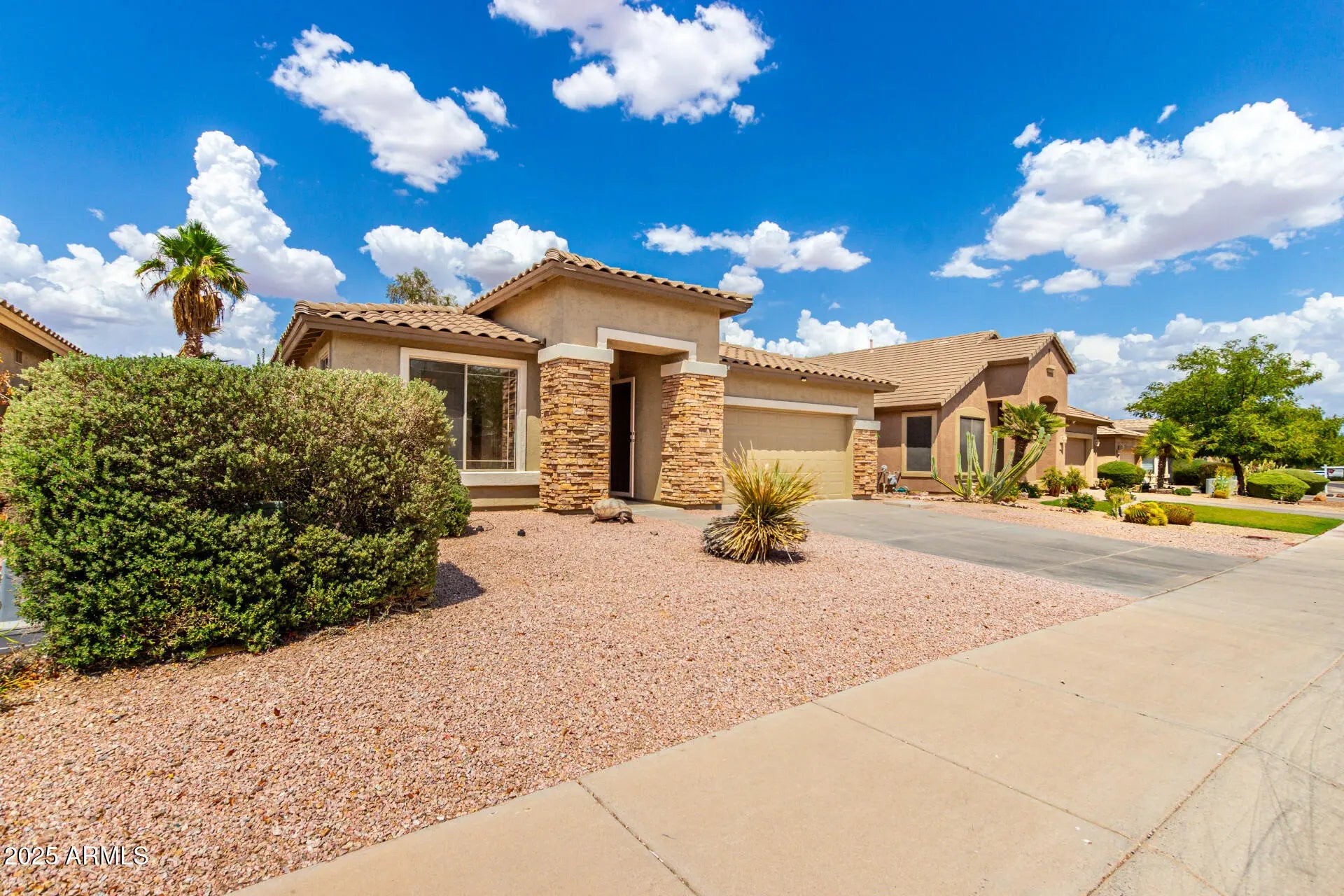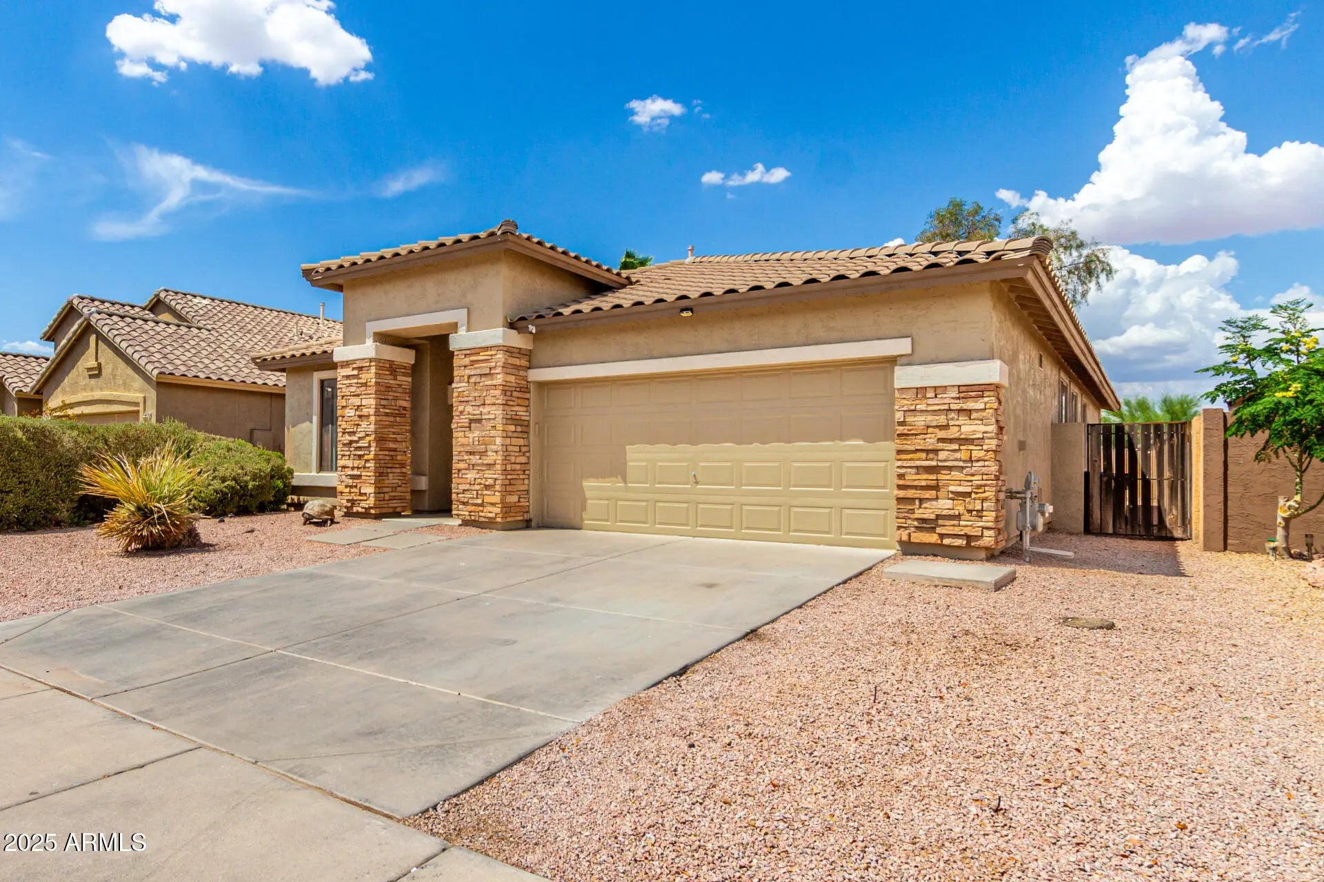 Home, sweet home! This gorgeous 3 bed, 2 bath residence in Johnson Ranch is looking for its new owners! A stunning facade w/stone accents, an easy-care landscape, and a 2 car garage are just the beginning. Discover spacious dining & living areas w/durable tile flooring, new plush carpet in all the right places, graceful archways, and new and fresh, neutral paint. The gorgeous eat-in kitchen is comprised of ample cabinetry w/crown molding, a pantry, granite counters, New Fridge, SS appliances, and a prep island w/a breakfast bar. The primary bedroom showcases a walk-in closet and a full bath w/dual sinks plus a garden tub. You'll also find a cozy open den, ideal for a reading nook. Also including a quaint backyard w/a covered patio, this home is a true gem! Hurry, don't miss out!