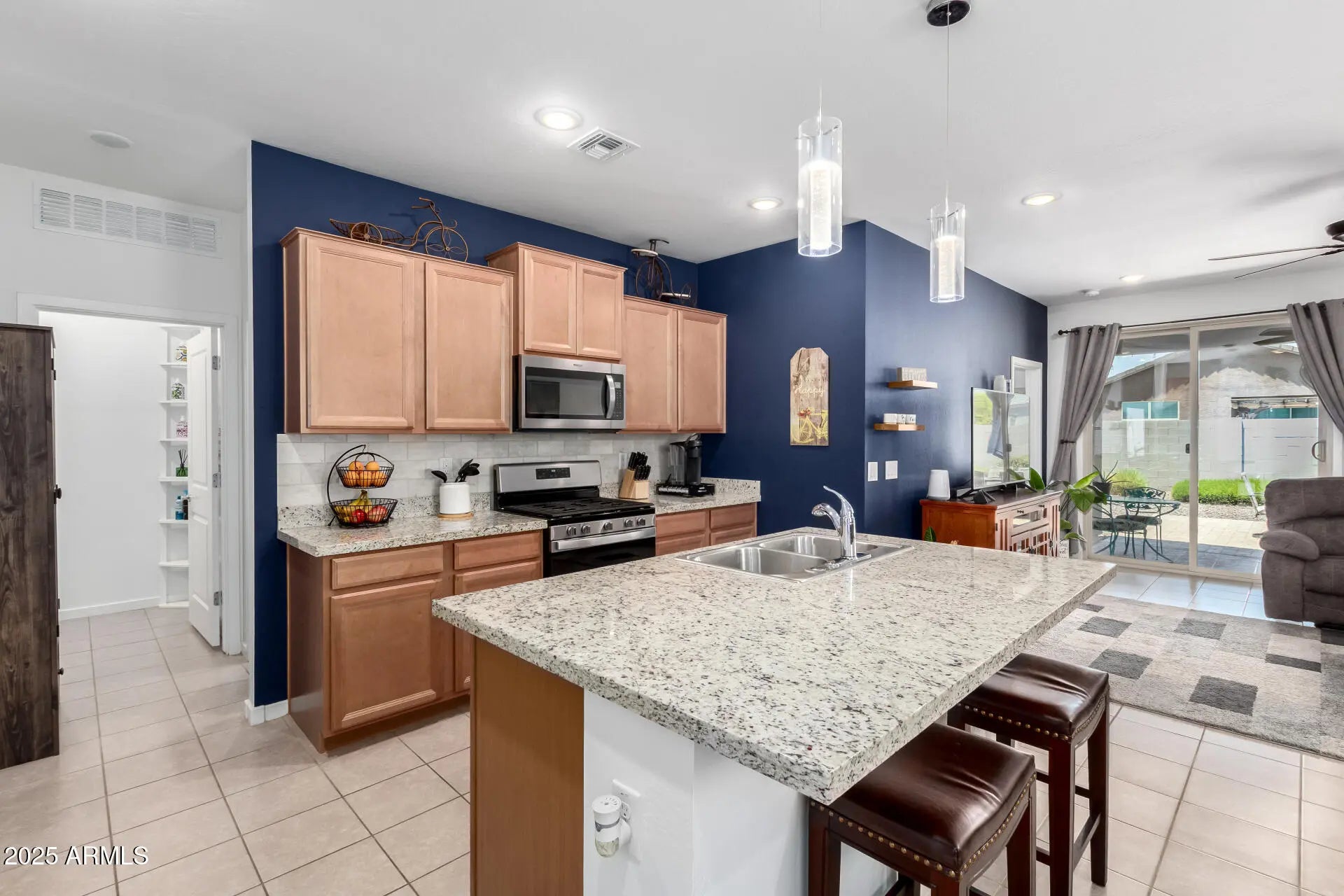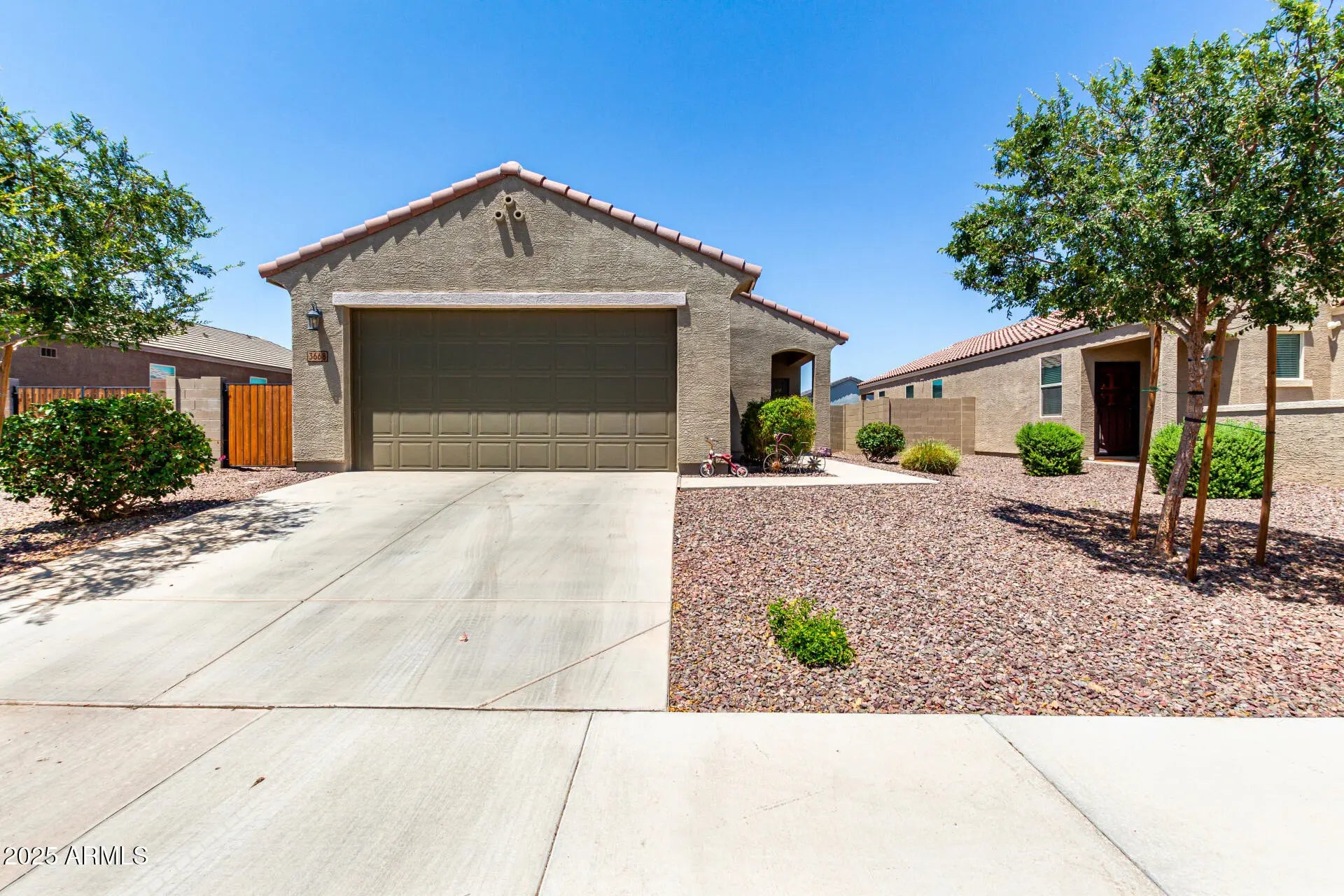 Start creating lasting memories in this 3-bedroom gem nestled in Archer Meadows! Be welcomed by a 2-car garage and RV gate. Inside, the bright and open great room shines with tile flooring and recessed lighting, setting the stage for comfort and fun. Whip up your favorites in the kitchen featuring stainless steel appliances, a walk-in pantry, granite counters, a center island with breakfast bar, tile backsplash, and sleek neutral cabinetry. Main bedroom promises sweet dreams with a private bath, dual sinks, and a generous walk-in closet. Out back, you can relax with its covered patio, paver sitting area, and plenty of room to add a pool or host unforgettable BBQs. Plus, enjoy all the perks of the community with a sparkling pool and more. Don't let this one get away!
