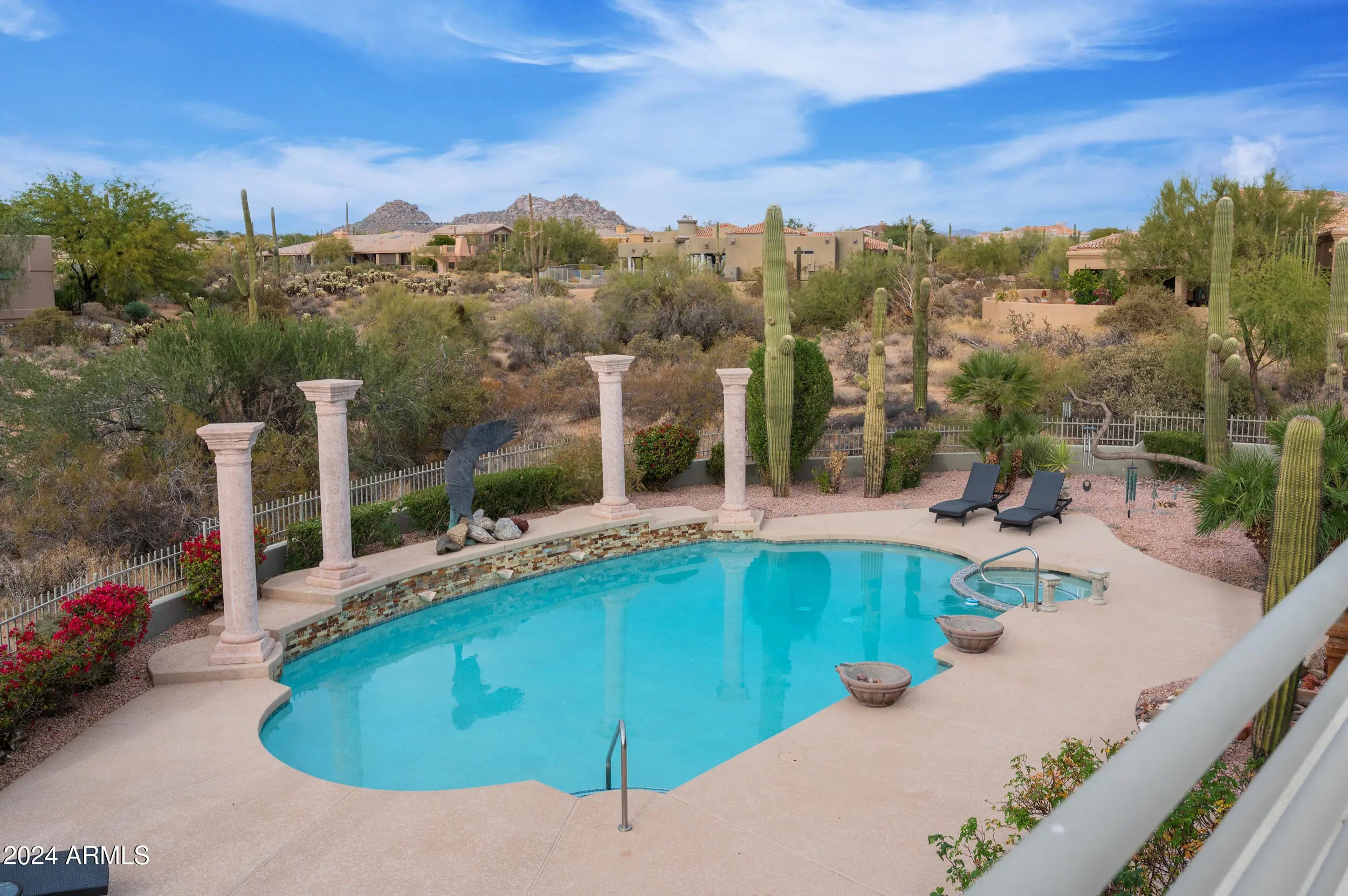 Scottsdale Seasonal Retreat with Pinnacle Peak Views Discover resort-style living in this beautifully furnished single-level home in the prestigious gated community of Eagles Glen, North Scottsdale. Perfectly situated to capture stunning views of Pinnacle Peak, this property offers a true desert oasis for your seasonal stay. Step inside to find a spacious, open floor plan thoughtfully designed with Arizona-inspired furnishings and art, creating a warm and inviting atmosphere. Large windows flood the living spaces with natural light and showcase the serene desert landscape beyond. The backyard is your private resort—a heated pool and spa overlooking the mountains, multiple seating areas for entertaining or relaxing, and an outdoor dining space ideal for Scottsdale's sun-dren... ... and an outdoor dining space ideal for Scottsdale's sun-drenched days and star-filled nights. Residents enjoy access to the community tennis courts and recreation center, all within a quiet, well-maintained enclave. This home is offered fully furnished for your convenience, with everything in place for an effortless move-in. Whether you're here for golf, hiking, or simply soaking in the Scottsdale lifestyle, this home combines comfort, convenience, and unforgettable views for your next stay.