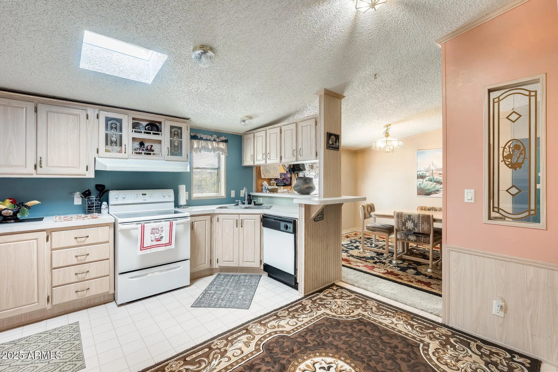Well-maintained manufactured home with stunning mountain views and no HOA! Enjoy a newer AC (2019) and roof updates (2019 & 2022), making this home move-in ready. The open layout features a skylight that fills the living area with natural light, and the split master bedroom offers added privacy. The office/den includes doors, allowing for an easy conversion to a 3rd bedroom. Refrigerator, washer, and dryer all convey. Low-maintenance desert landscaping in front and back makes outdoor living a breeze. Don't miss this peaceful desert retreat!