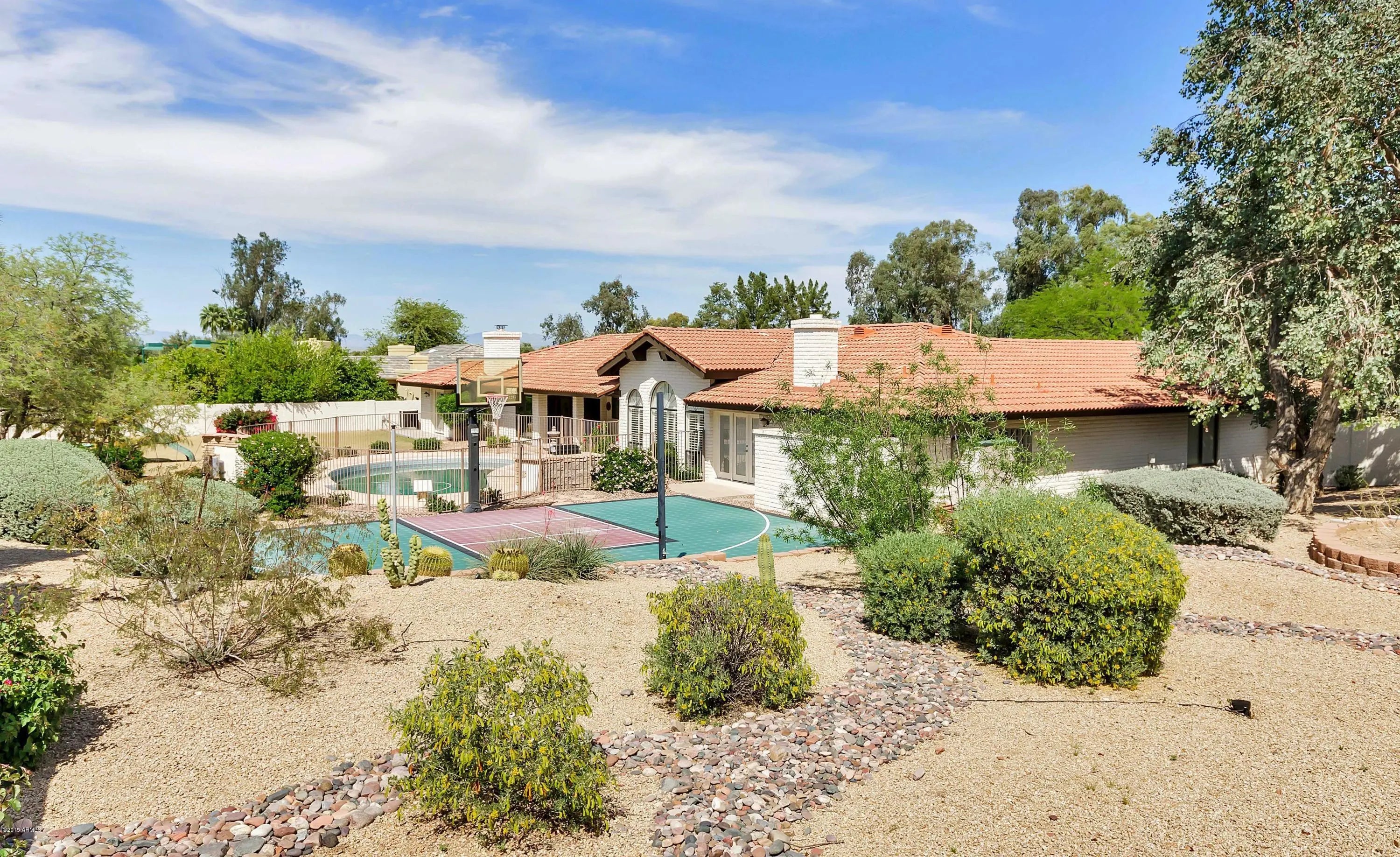 This exquisitely remodeled 5 bedroom with game room and den/3.5 bath home is located on a large private cut-de-sac in the highly coveted Doubletree Canyon. Gorgeous mountain views with convenient access to hiking trails. This home has far too many upgrades to list, including custom paint with upgraded light fixtures/fans, beautiful wet bar, soaring vaulted ceilings, Pella windows, extensive built-ins, huge gourmet kitchen with granite countertops with state of the art appliances, a huge master suite with fireplace and walk-in shower. The backyard is an entertainer's delight with a sports court, pool, and built in BBQ.Conveniently located near great schools, PV Mall and fine dining.