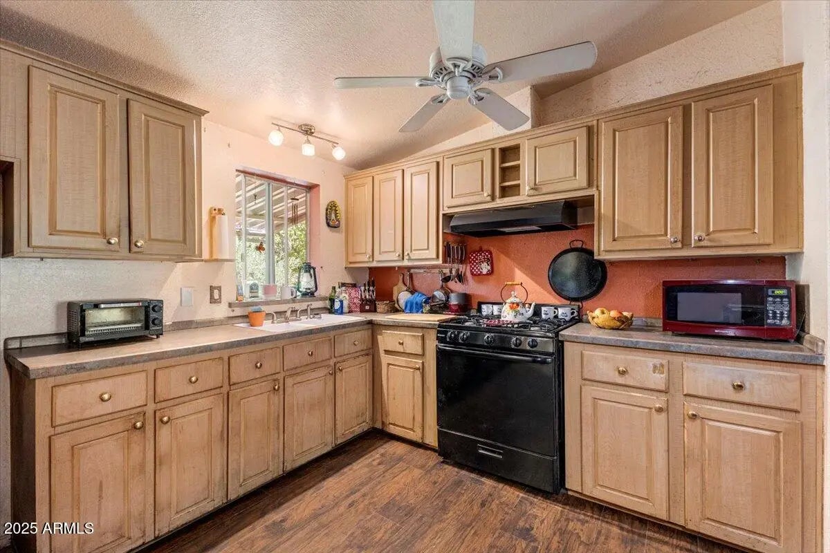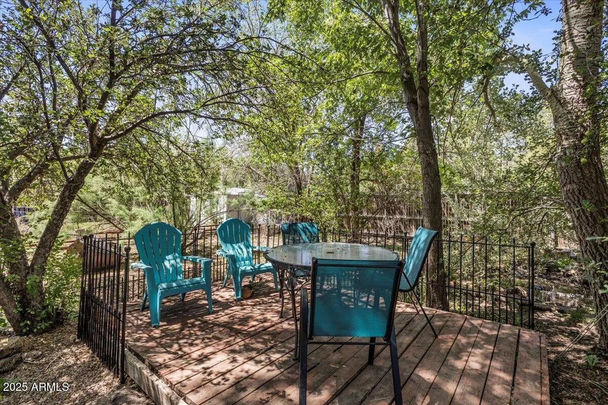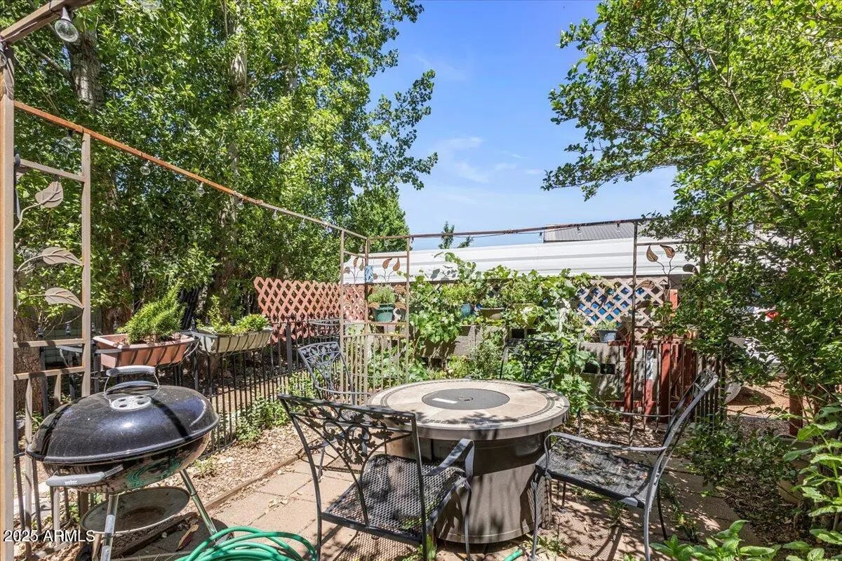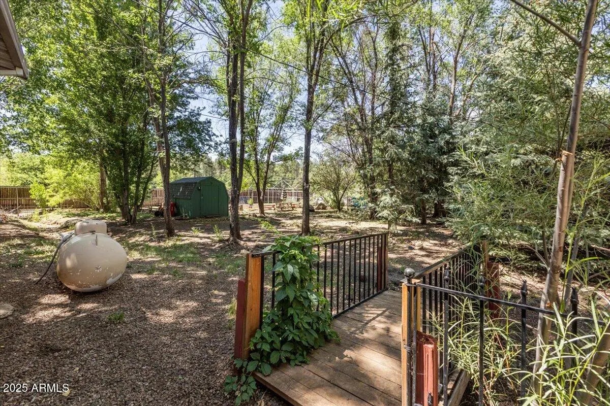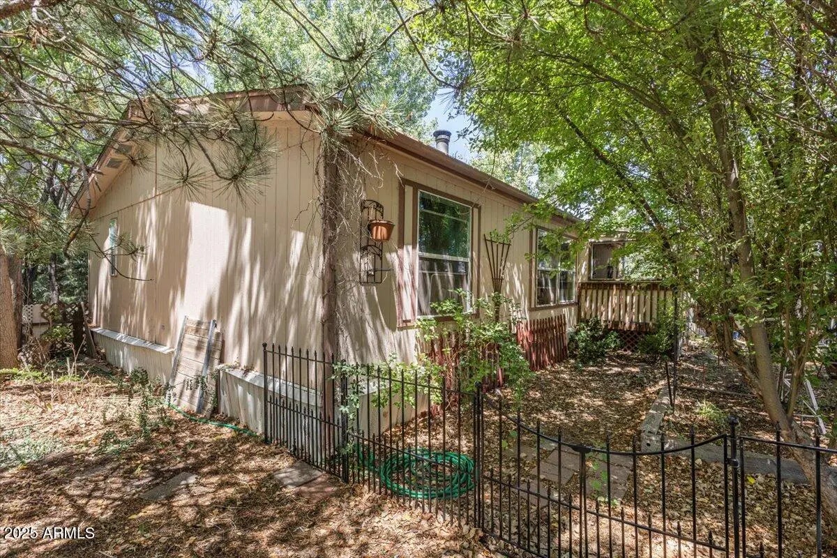 Great Home on .45 Acre in Pinetop-Lakeside! Located in a private setting within the town limits of Pinetop-Lakeside, this well-kept home sits on a fully landscaped and fully fenced .45-acre lot, close to shopping, skiing, golf, and restaurants. The home features an open, split-bedroom floor plan with central heating, and a wood stove in the living room that efficiently heats the home. The outdoor space includes a private rear deck, lower gazebo area, two small greenhouses, workshop, storage sheds, and plenty of extra parking with RV access through the back gate. There's also room for a garden, play area, or other outdoor uses. This manufactured home includes tie-downs and is ready for new owners.