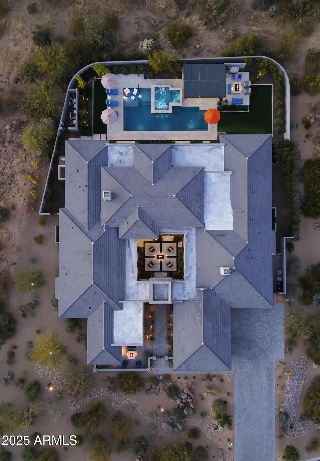 This Boulder Ranch home in North Scottsdale blends modern luxury with a serene desert setting. The exterior features clean architectural lines, stucco, stone accents, and native landscaping. A private courtyard leads to a spacious interior with soaring ceilings, custom shelving, and floor-to-ceiling windows. The chef's kitchen boasts waterfall-edge islands, quartz countertops, and top-tier appliances, perfect for entertaining. The primary suite offers dual walk-in closets, a spa-inspired bathroom, and backyard access. Additional guest suites, a private casita, a pool, spa, outdoor kitchen, heated patios, and a five-car climate-controlled garage enhance the living experience. Whole-house automation completes this luxury retreat. (for More DETAILED DESCRIPTION Please Click More) Experience the allure of an exquisite residence, where luxury meets sophistication. This spacious home in North Scottsdale epitomizes modern elegance, nestled harmoniously in a serene desert setting. The exterior boasts clean architectural lines and a stunning blend of stucco and stone, surrounded by natural landscaping with native plants like ocotillo, agaves, and desert blooms. Enter through a private courtyard, an intimate oasis that sets the stage for the home's sophisticated design. Inside, the residence opens to a vast living space featuring soaring ceilings, custom hardwood shelving, and floor-to-ceiling windows that flood the area with natural light. The interior showcases contemporary luxury with neutral tones, porcelain tile floors, bespoke finishes, and custom lighting. The state-of-the-art chef's kitchen, complete with two waterfall-edge islands, expansive quartz countertops, and top-of-the-line appliances, flows effortlessly into the dining and living areasperfect for both intimate gatherings and grand-scale entertaining. The primary suite is a private sanctuary, featuring two spacious walk-in closets and direct access to the backyard oasis. The spa-inspired bathroom boasts a freestanding soaking tub, a walk-in rain shower, dual vanities, a bidet toilet, and custom lighting. Two additional guest suites, designed as primary bedrooms, are ideal for multi-generational living. Each of the other three bedrooms in the home also includes its own en-suite bathroom. A separate casita adds versatility, offering a one-bedroom, one-bathroom setup with a living room and kitchenperfect for family or visiting guests. For added convenience, the home includes two powder rooms, each featuring smart toilets. Step outside to your private retreat, where a pool, spa, and full outdoor kitchen await. Two covered and heated patios, equipped with power shades, enhance the outdoor living experience. Don't miss the private outdoor shower for added luxury. The pool and spa are heated independently, so you can enjoy the spa without the need to heat the pool. For the discerning buyer, the climate-controlled garage accommodates up to five cars. Completing the home is a state-of-the-art Control4 whole-house automation system. Embrace the essence of luxury living in North Scottsdale at Boulder Ranch.