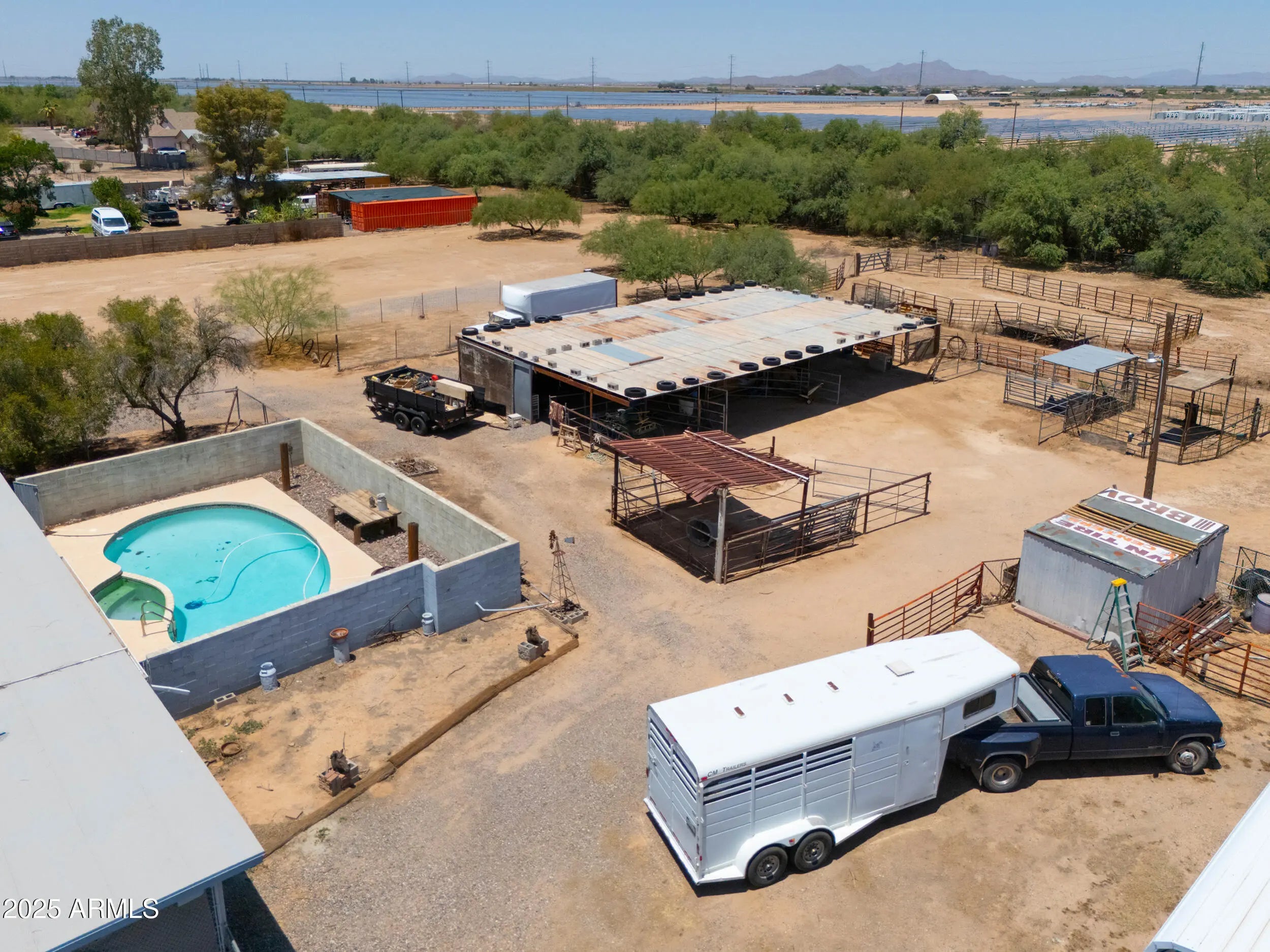 Come home to peace and quiet at this quaint county home built in 1974 nestled on 1 acre in quiet neighborhood. Solid slump block constructed boasts 3 large bd, and 2 baths. Step saver kitchen with breakfast nook just off the living room and opens to the family room with fireplace. Pool & Spa area are fenced, but have access to the barn, workshop and corrals. Huge, covered area in the back approx. 40x60 with workshop, storage, and parking. Several horse corrals, with extra panels to make more if you need them. Dish washer does not work, won't be replaced. HVAC unit replaced in 2020. .