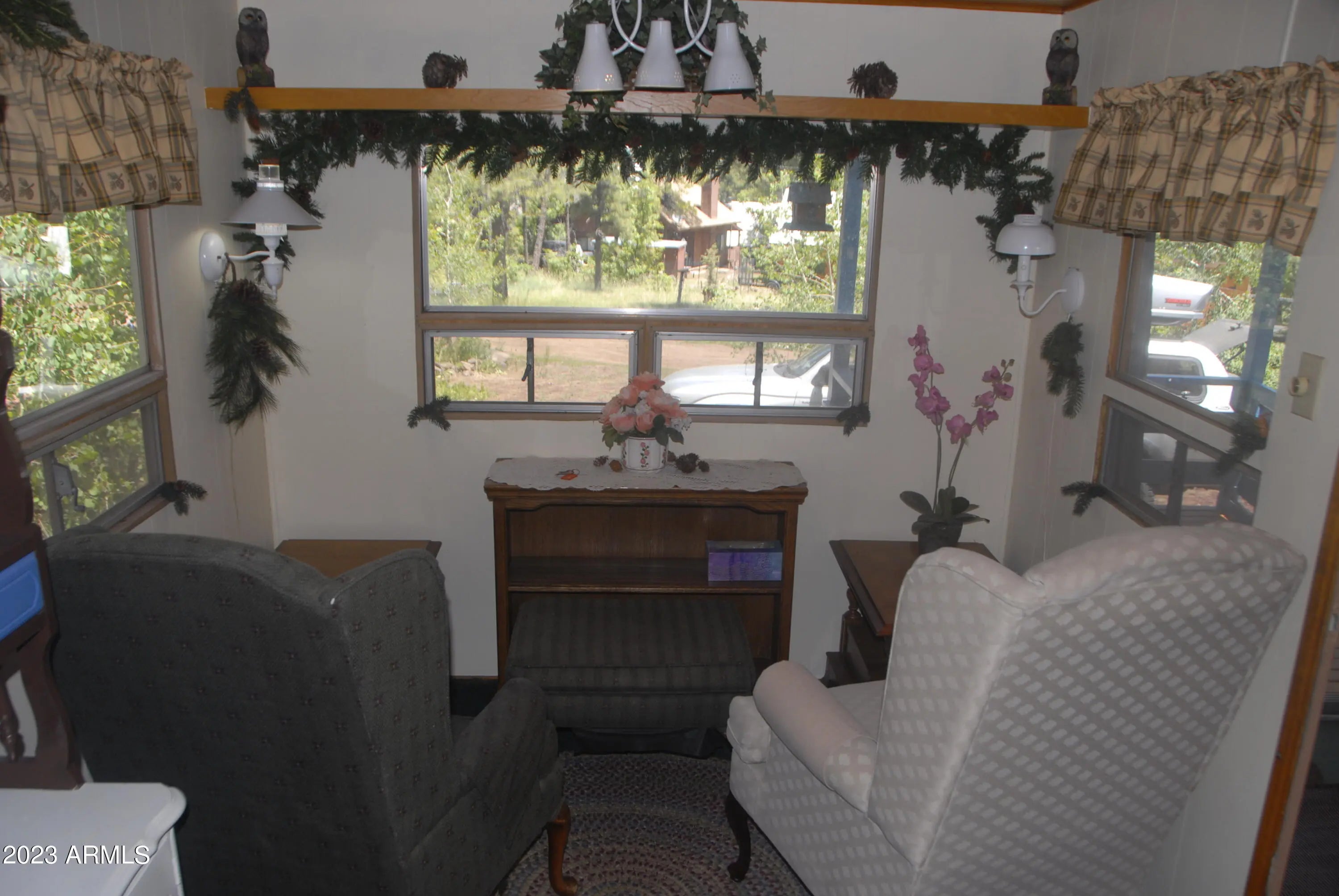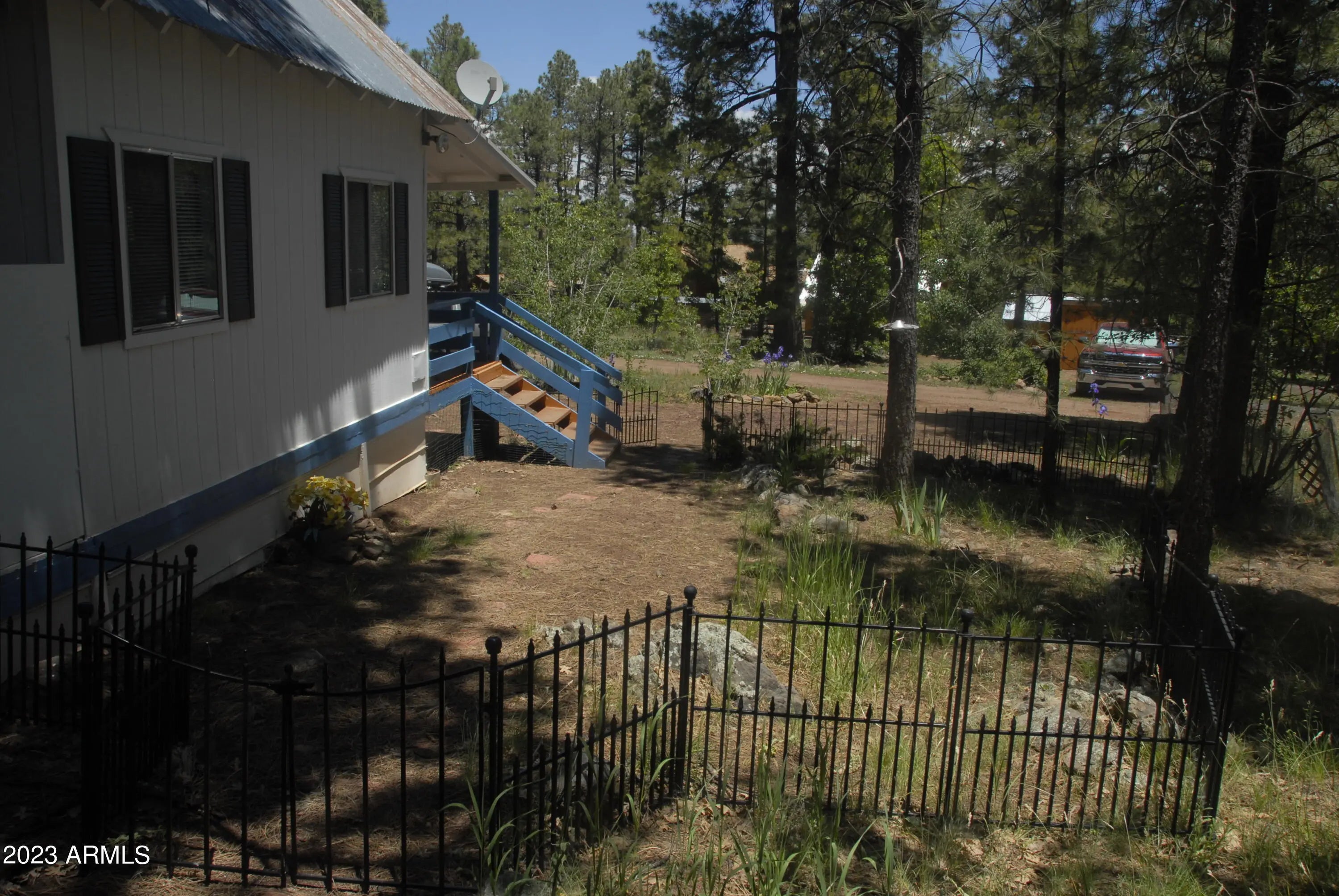 OWNED LAND!!! Escape to the enchanting 1-bedroom, 1-bath cabin surrounded by majestic Ponderosa Pines, where a cool sanctuary awaits you. This cozy retreat offers respite from the sweltering heat, with temperatures consistently 30 degrees cooler than Phx. Step inside to discover a charming interior adorned with rustic accents and an open-plan living area drenched in natural light. The well-equipped kitchen beckons you to prepare delightful meals, while the plush bed in the serene bedroom promises cool restful nights. Refresh in the spacious 50's bathroom before venturing out to the private patio, where you can unwind in the shade of the towering pines. Whether you seek tranquility or outdoor adventures, this cabin provides the perfect haven. Immerse yourself in the cool embrace of nature!
