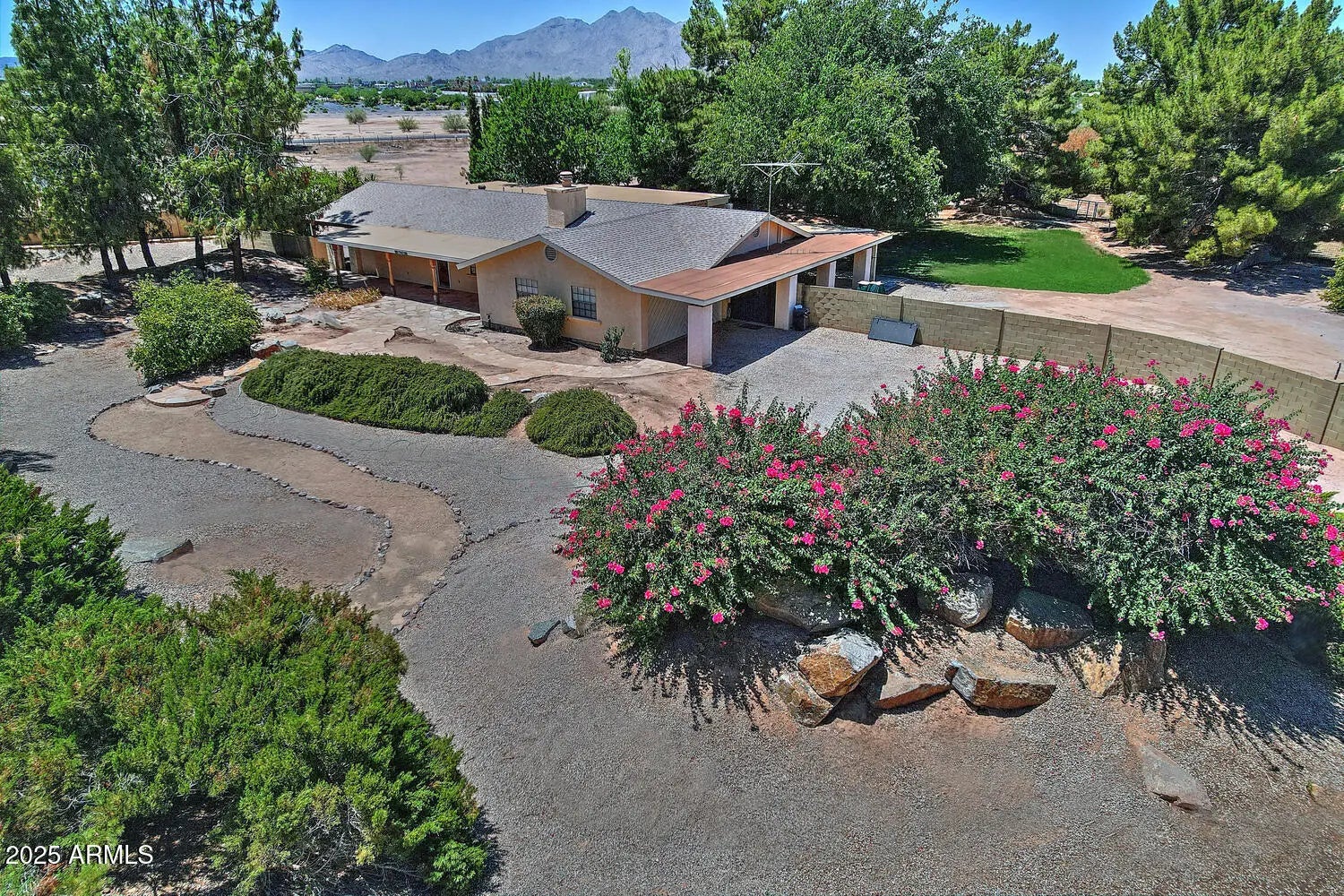Large property 2 parcels approx 5 acres with home for equestrian or urban farm in Ranchos Jardines. These larger acreage contiguous lots do not come available on market often. The original home is 2 bedroom 2 baths with rustic Arizona charm. Live in it or build your next home(s) or Both! There are so many mature trees, mountain views, arena areas, a tack/storage room, and much more. come visit and experience this lovely location and Rural farm feel yet you are still close to Everything, Highways, stores, schools, outdoor activities, dining and more!