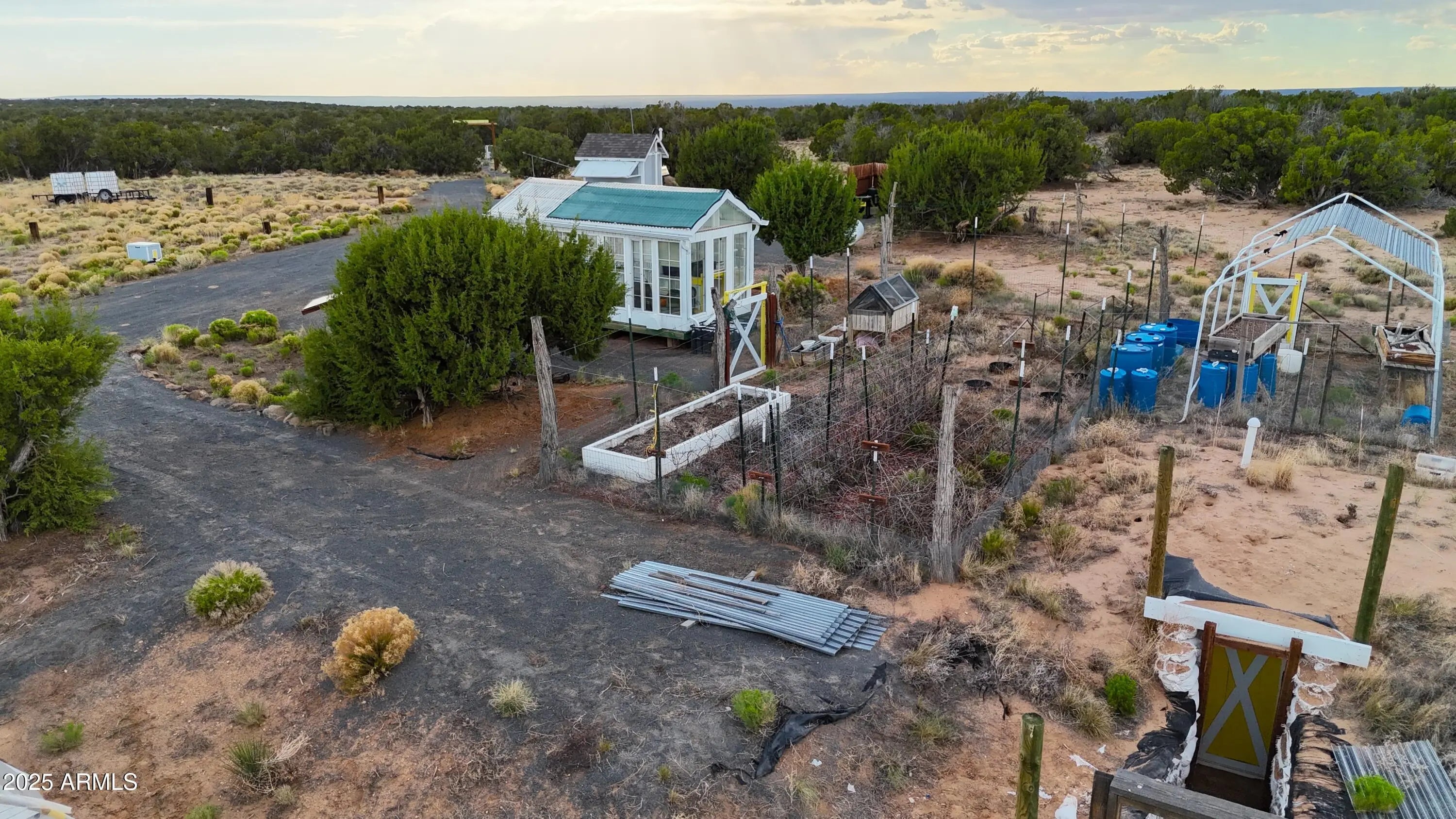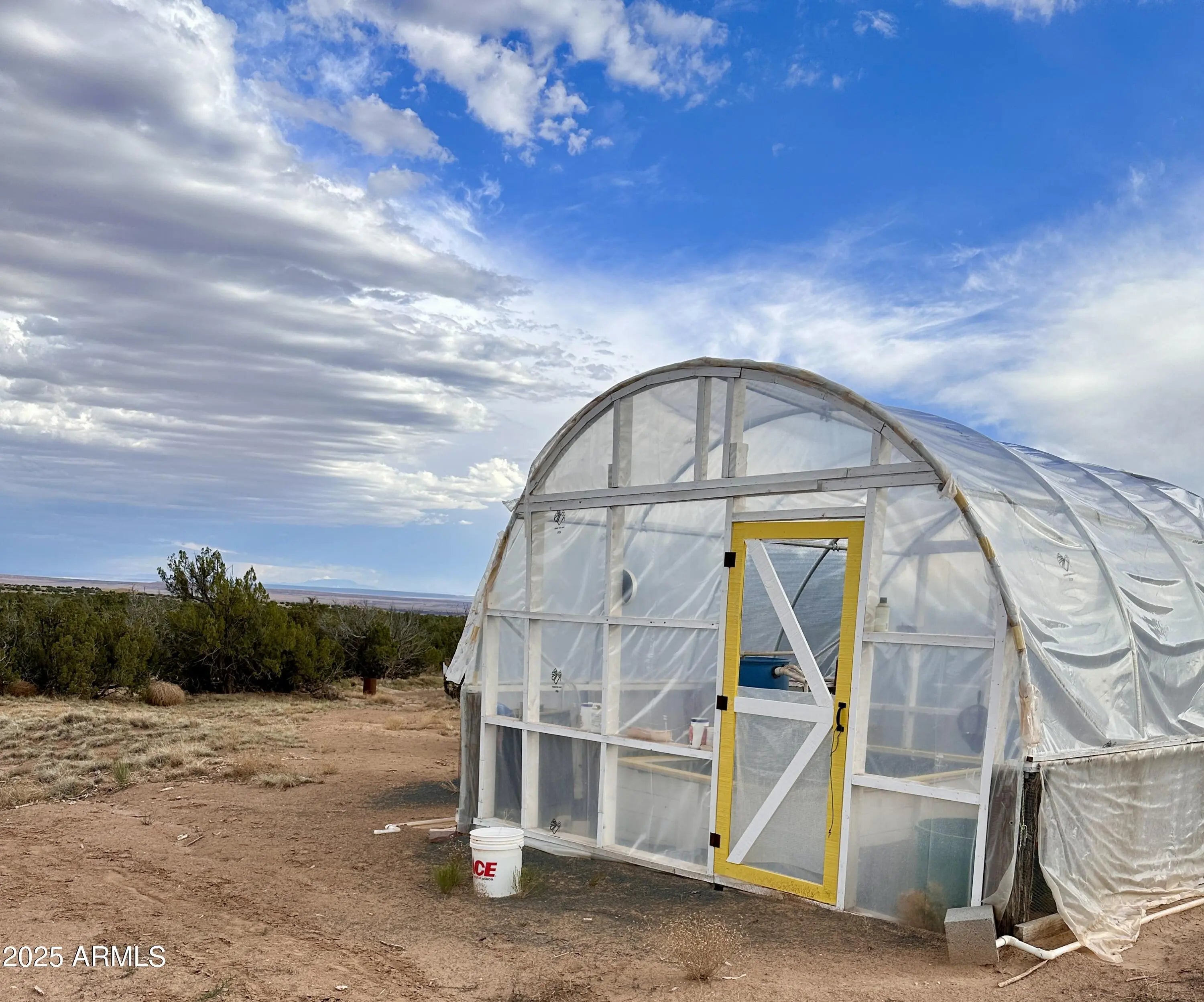 Grandview Ranch - 37+ Acres Bordering Reservation Land with Panoramic Views & Off-Grid Potential! Welcome to Grandview Ranch, a truly one-of-a-kind 37+ acre property that borders reservation land, offering unmatched privacy, sweeping views, and endless potential. Just 20 minutes from St. Johns, this expansive Arizona getaway is more than land—it's a vision brought to life. The permitted entrance off Highway 191 features a cement culvert and attractive chaparral gateway, leading to a stone driveway that sets the tone for the rugged beauty and work that's gone into this sustainable homestead. Sustainable Living, The owner has already established a 5-acre developed area with thoughtfully designed infrastructure, making it easy for the next owner to step right into off-grid or self-sufficient living. Features include: A sturdy 16x16 workshop, An insulated 8x10x10 storage room, A fully functional root cellar, Two greenhouses, one solar-powered with a 275-gallon water storage tank, A 5 foot deep catfish tank with filtration system, Multiple additional water storage systems in place. Whether you're seeking a prepper's paradise, a weekend escape, or a full-time homestead, Grandview Ranch delivers with space, resources, and a stunning natural setting. While the property is sold as-is and could use some light TLC, it is ready for new owners to take the reins and make it their own. With room to roam, views to inspire, and infrastructure already in place, Grandview Ranch is a rare opportunity to own a slice of Arizona paradise.