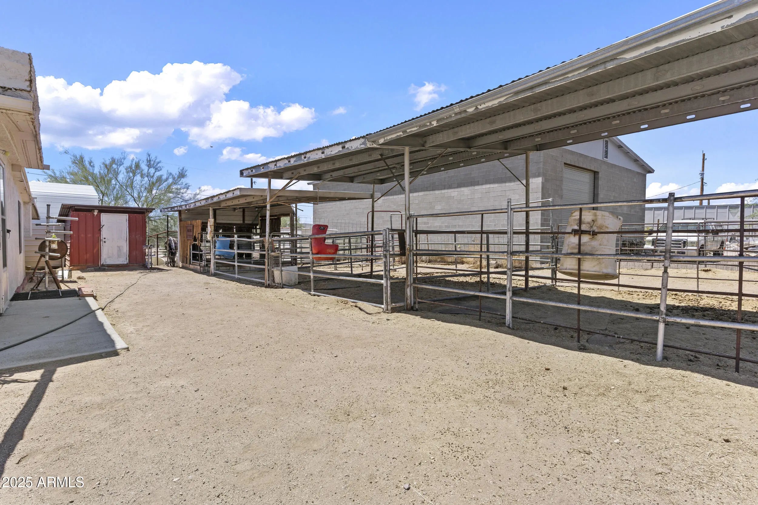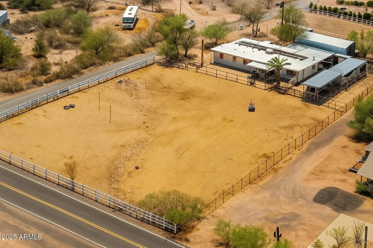 Desert Retreat with RV Barn, Horse Setup & panoramic Superstition Mountain Views! Ride, hike out to trails from your front yard. Enjoy wide-open desert living on over an acre with a 20'×40' RV barn, 4 covered horse stalls, tack room/outbuildings, solar power, and plenty of room for animals, equipment, and toys. Includes patience poles, feeders, and space for a future round pen. No HOA and serviced by Arizona Water Company for reliable water. Two cooling systems—HVAC and evaporative—for year-round comfort. Interior updates already underway, ready for your finishing touches and personal style. A rare find in Apache Junction with views, land, and flexibility!