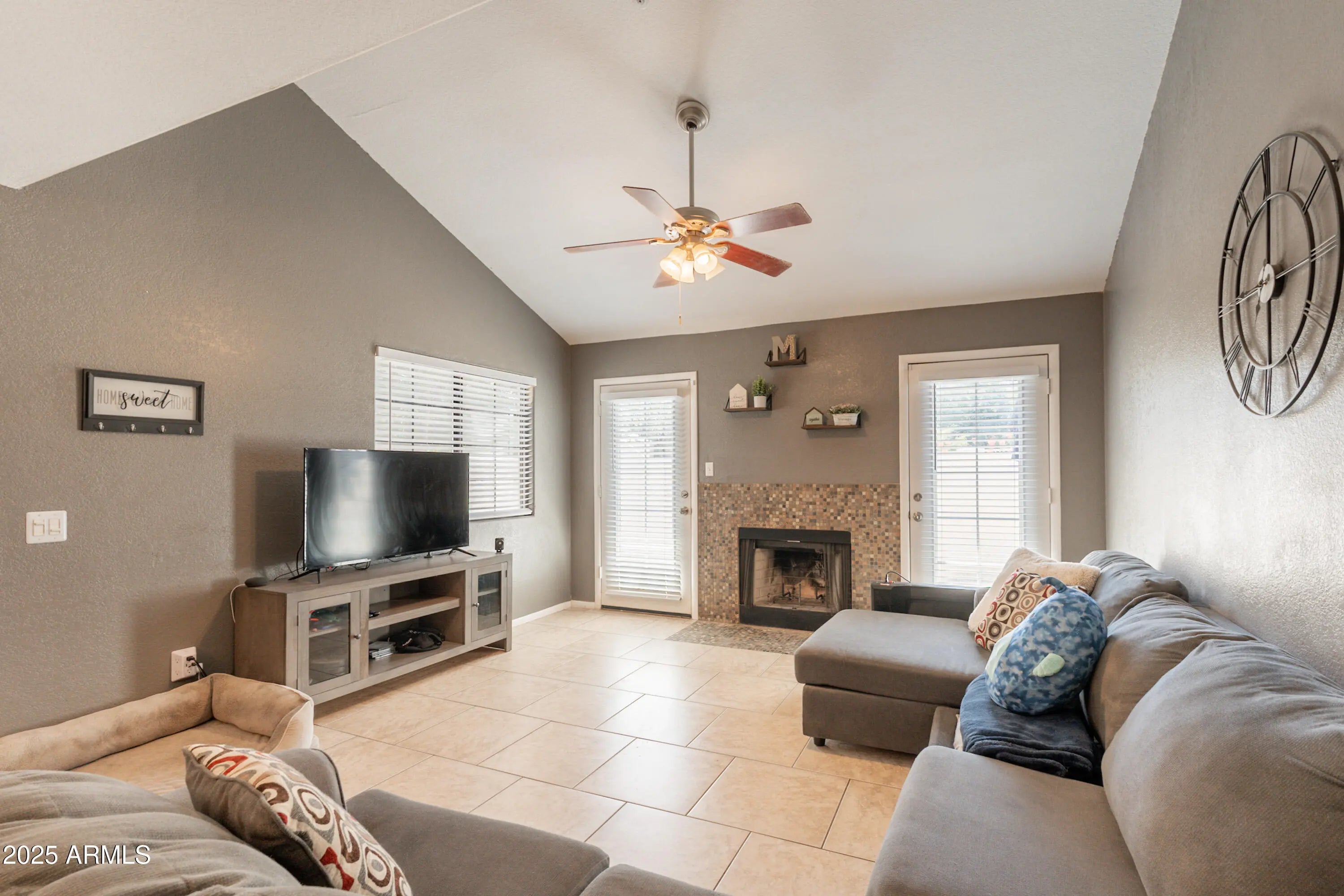 Come see this stunning, updated single-level townhouse located in one of Tempe's most desirable areas. Thoughtfully designed with a split floor plan, this home features a spacious open kitchen that flows seamlessly into a great large room perfect for both relaxing and entertaining. A cozy wood-burning fireplace with a decorative tile border adds warmth and charm to the living space. The kitchen and bathrooms boast updated cabinetry with custom hardware, quartz countertops, and new upscale faucets. You'll love the newer stainless-steel appliances, brick-laid ceramic tile flooring in all the right places. The bathrooms have been redone with 12'' x 23'' tile surrounds and a newer tub and shower that bring a modern touch to the home. Enjoy the outdoors with three private patios, for morning coffee or quiet evenings. The home also includes a 1-car garage with a storage area and sits right next to the community pool, offering easy access to one of the best amenities in the complex. This beautifully upgraded home truly has it alldon't wait, it won't last long!