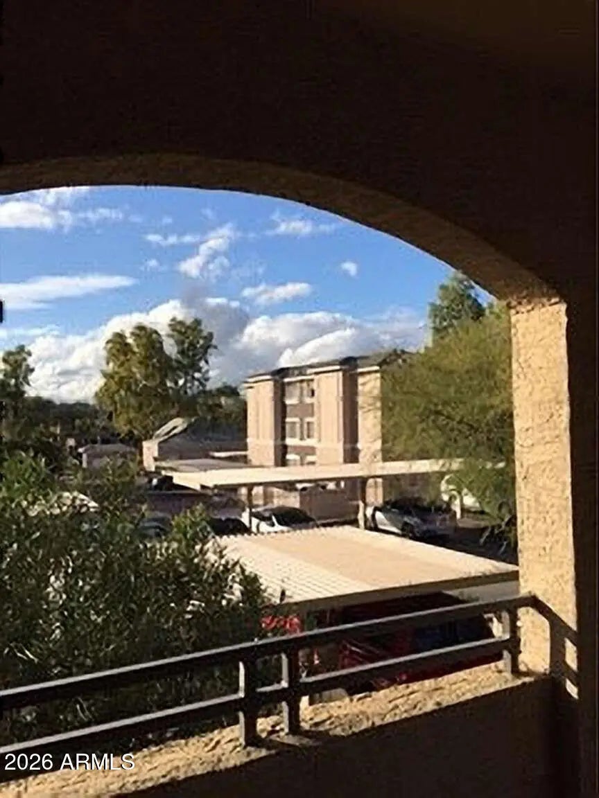 This comfortable, always bright, unique corner condominium is in an ideal location in Phoenix. Located on the borders of Scottsdale, and Tempe, the amenities nearby make this an ideal location for work and play! Papago Park trails are right across the street, with the famous Botanical Gardens and downtown Scottsdale just minutes away. This condo has been well maintained with a focus on energy conservation. GREEN ENERGY features are many: Trane 14-Seer HVAC (2022) with Surge Protector, Hot Water Heater 2021, Professionally installed 3M Solar Heat-resistant Film on west facing windows, Room Darkening curtains, Ceiling Fans in main rooms (2024), Nest Thermostat. Other features: Granite counters, 18'' Ceramic Floor tiles, R/O system, New Fridge (2024), Electronic Schlage Smart Door Lock. This NW facing corner unit is only steps away from the clubhouse and pool! The curved, architecturally pleasing balcony has a painted epoxy floor, creating a welcoming, bright area to unwind in! View your covered parking spot from the balcony. This condo is Fully Furnished and is move-in ready!