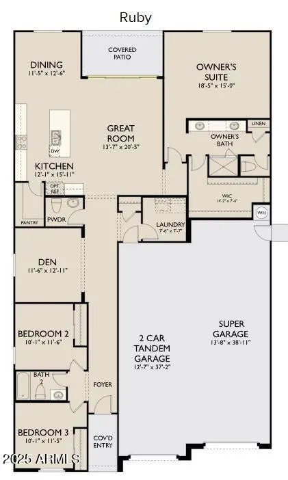 Located in San Tan Valley, this adorable single story, 2171 sqare foot, 3 bedroom , 2.5 bath residence boasts a meticulously designed living space. Crafted with a keen eye for both style and functionality, this home harmoniously blends modern elegance with timeless comfort. This home seamlessly integrates open-concept living featuring a den, 8' doors, 4-panel center sliding glass door, a large kitchen adorned with quartz countertops, 42'' upper white cabinets and stainless steel appliances. The expansive owner's suite includes dual vanities in the bathroom and a large walk-in closet. Additional bedrooms offer ample space for family or guests, each thoughtfully designed with comfort in mind. This home will come with a washer, dryer, fridge, blinds throughout, a soft water loop, as well as a garage door motor. Complete with a four car tandem this residence represents the epitome of ideal living.