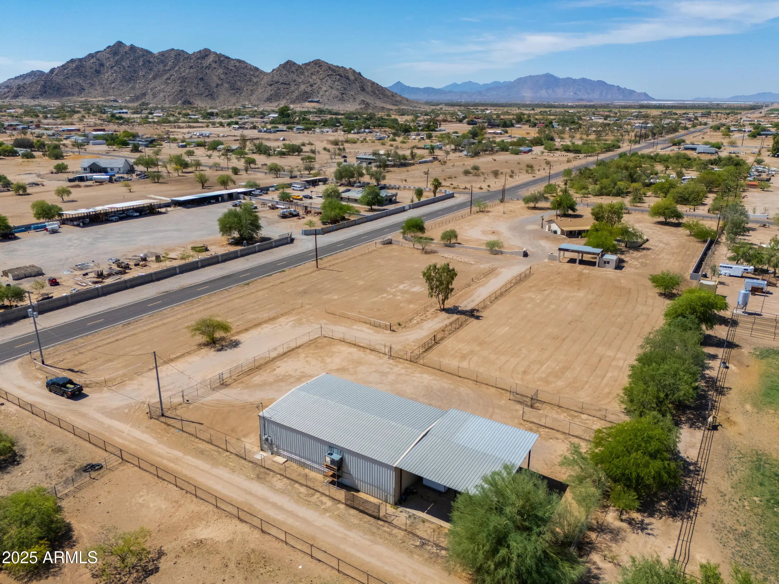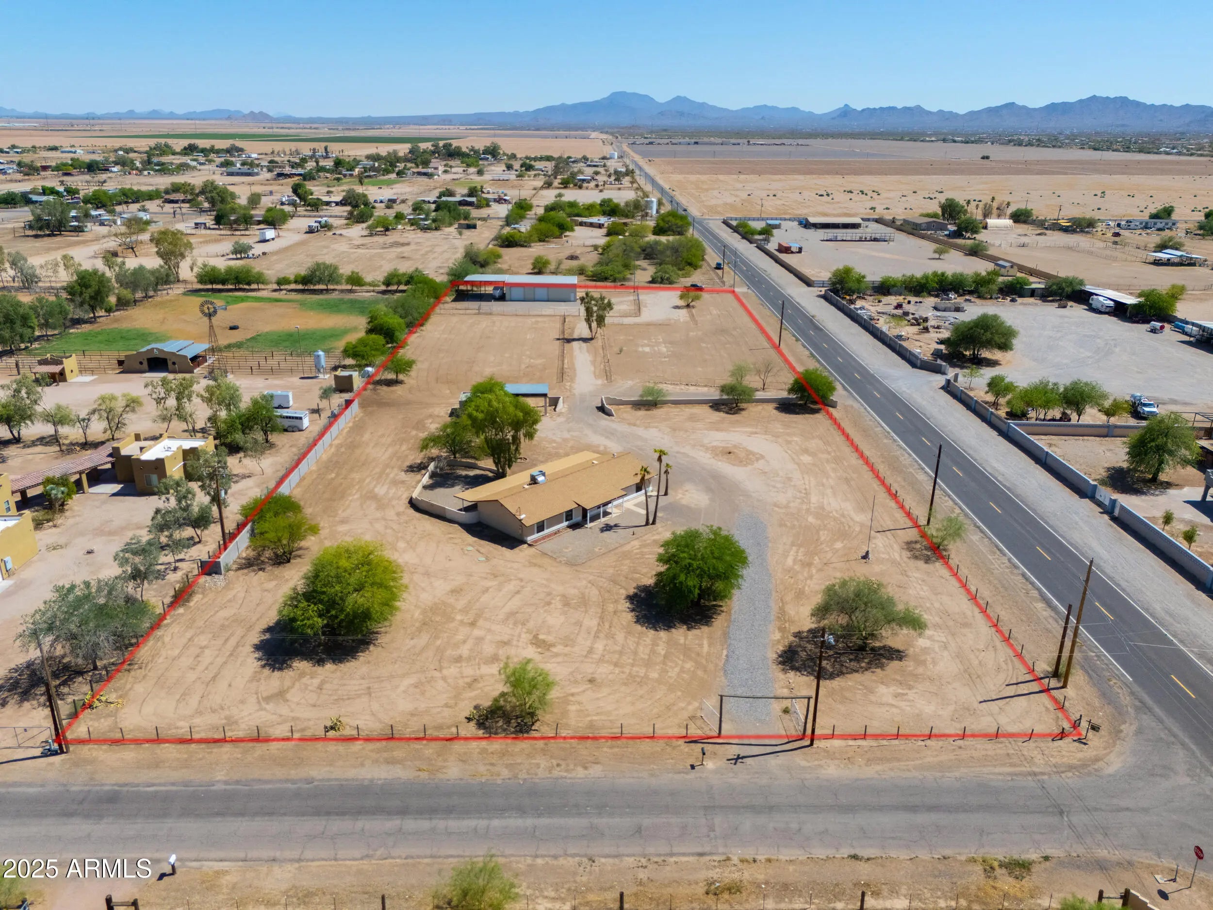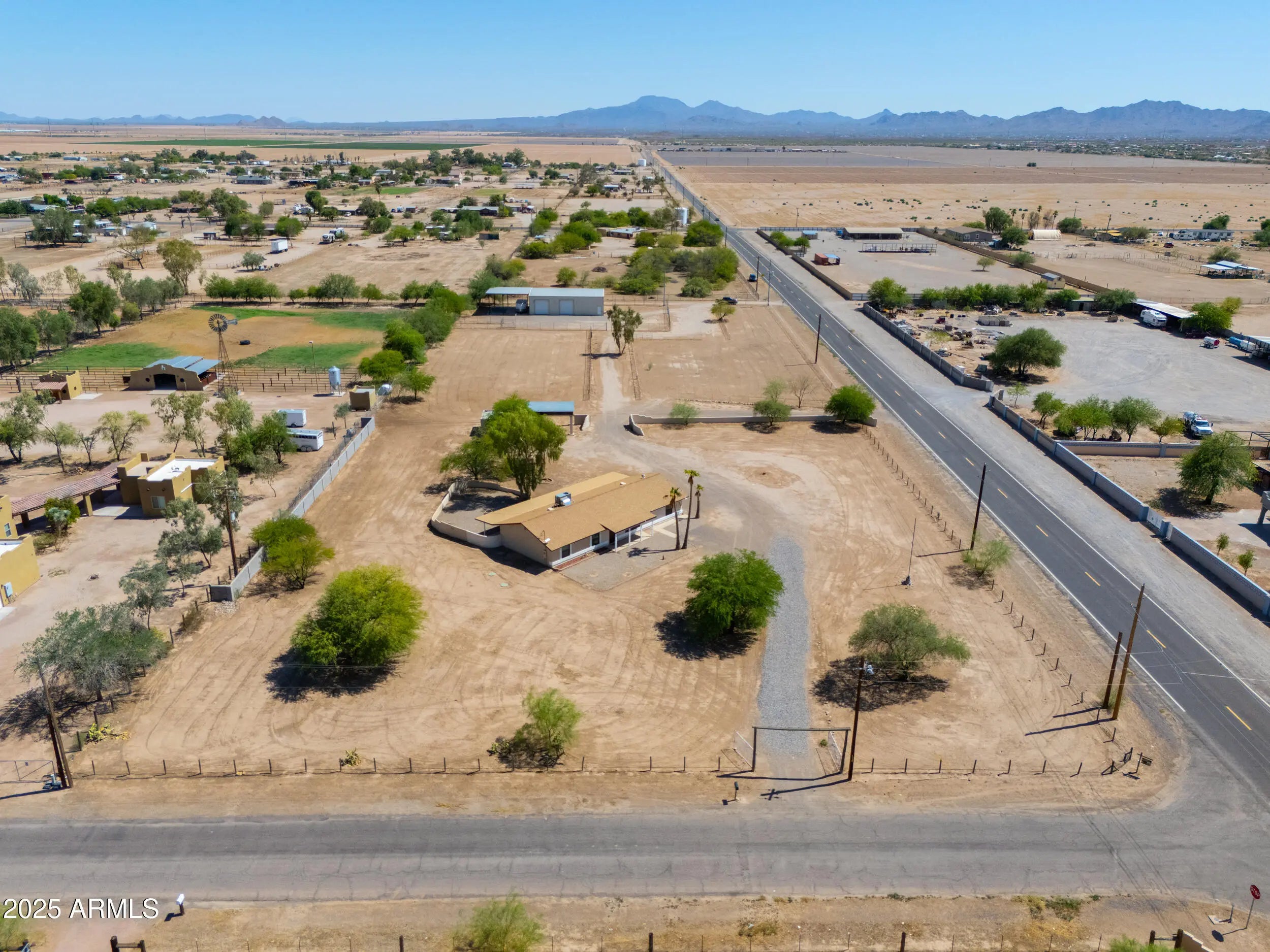 Welcome to your Dream Property situated on a 3.42-acre picturesque lot with a Site Built Home & 2400 sq ft Shop!This beautifully maintained 4-bedroom, 2-bath home offers the perfect blend of comfort, space, and functionality. Inside, you'll find a floor plan that features a Bright and Open living area, Modern Finishes,Kitchen Island and Stylish Granite Countertops. The spacious bedrooms provide ample room for family, guests, or a home office setup.The real gem of the property-a Massive 2,400 sq ft fully air-conditioned Shop complete with a Bathroom and Kitchenette! Whether you're a hobbyist, small business owner, or just need extra space for your toys and tools, this versatile steel building is ready to meet your needs Also included are 2 large corrals with plenty of space for your horses and is just a short ride to the TACC Community Arena where you can compete in or watch Barrel Racing/Rodeo events or head down the Vekol Wash on your horses/quads/SxS! This property is located in an area with all paved roads,private water company, irrigation and best of all No HOA! Just 5 minutes from Dollar General, Raceway Bar & Grill, Rob's Convenience and Farmers Convenience Store/Restaurant for your shopping/food/fuel needs,and for all you Auto Racers this property is 10 minutes from Apex Motor Club and approximately 25 miles from Podium Club at Attessa! This property is truly a hidden gem and will go fast!