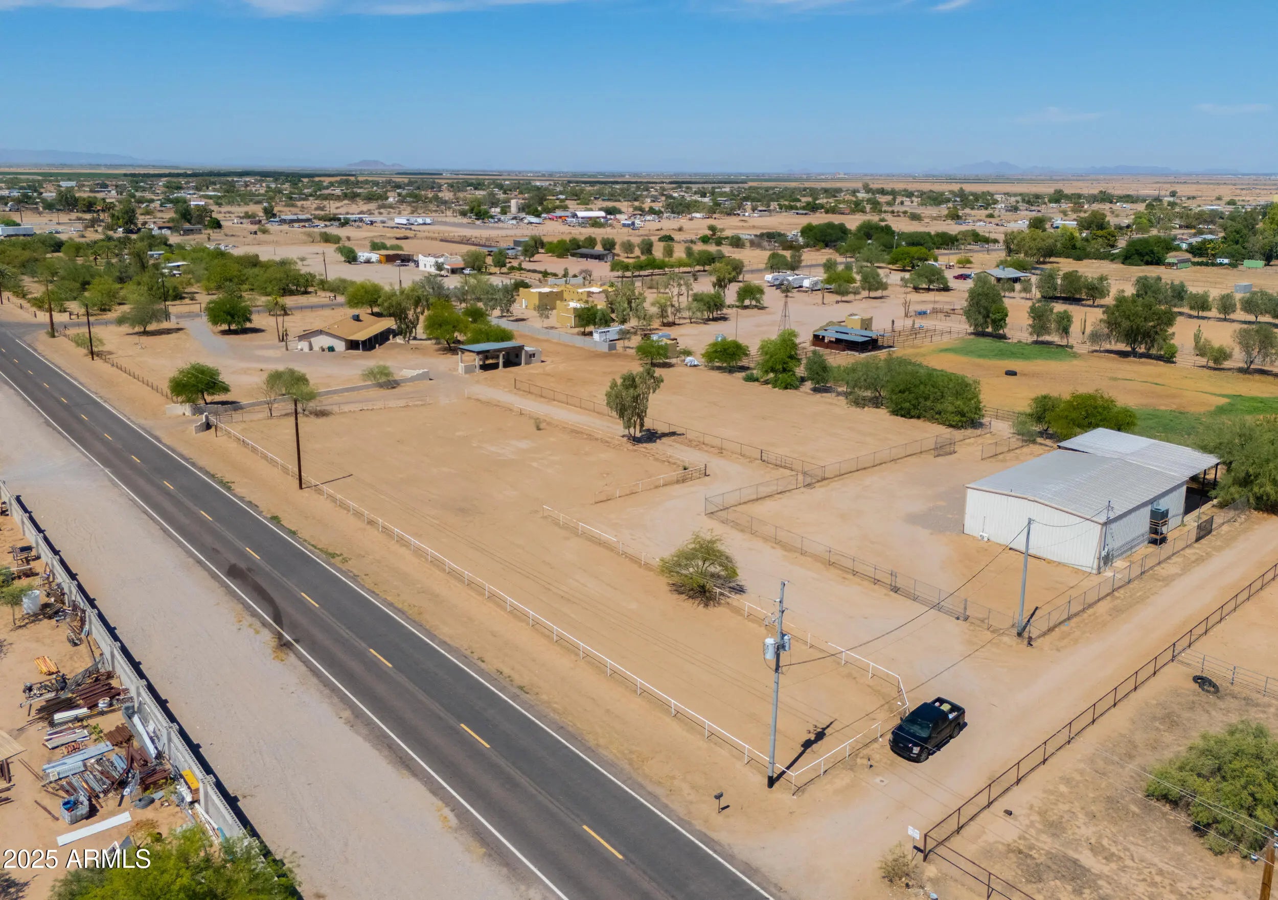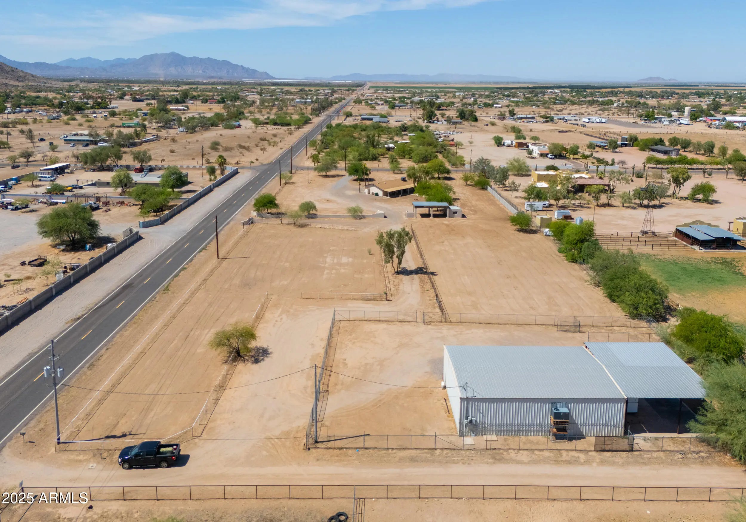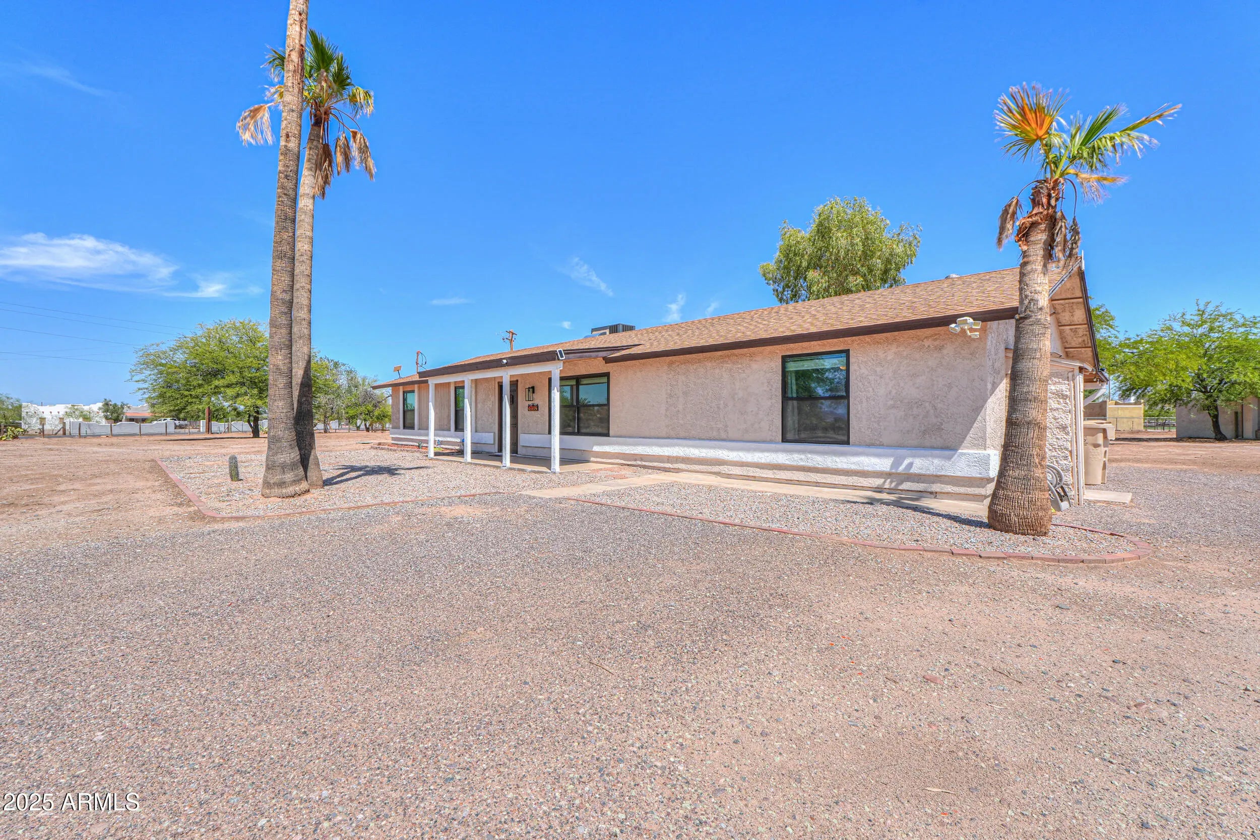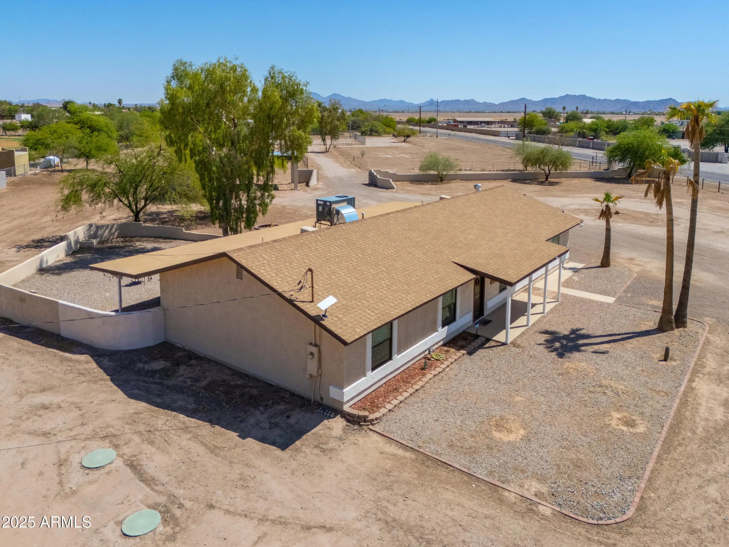Welcome to your Dream Property situated on a 3.42-acre picturesque lot with a Site Built Home & 2400 sq ft Shop!This beautifully maintained 4-bedroom, 2-bath home offers the perfect blend of comfort, space, and functionality. Inside, you'll find a floor plan that features a Bright and Open living area, Modern Finishes,Kitchen Island and Stylish Granite Countertops. The spacious bedrooms provide ample room for family, guests, or a home office setup.The real gem of the property-a Massive 2,400 sq ft fully air-conditioned Shop complete with a Bathroom and Kitchenette! Whether you're a hobbyist, small business owner, or just need extra space for your toys and tools, this versatile steel building is ready to meet your needs Also included are 2 large corrals with plenty of space for your horses and is just a short ride to the TACC Community Arena where you can compete in or watch Barrel Racing/Rodeo events or head down the Vekol Wash on your horses/quads/SxS! This property is located in an area with all paved roads,private water company, irrigation and best of all No HOA! Just 5 minutes from Dollar General, Raceway Bar & Grill, Rob's Convenience and Farmers Convenience Store/Restaurant for your shopping/food/fuel needs,and for all you Auto Racers this property is 10 minutes from Apex Motor Club and approximately 25 miles from Podium Club at Attessa! This property is truly a hidden gem and will go fast!