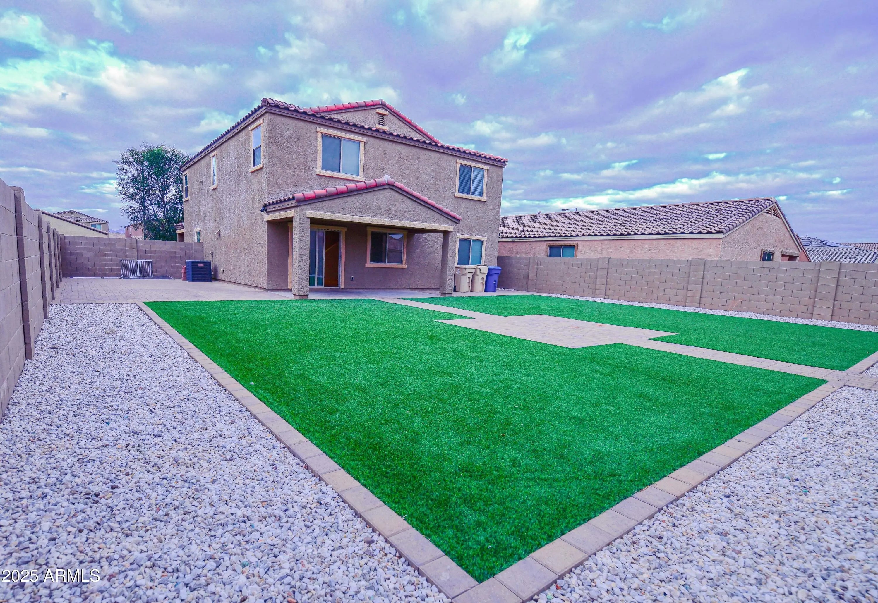 Sprinklers In Front, Gravel/Stone Front, Synthetic Grass Back, Auto Timer H2O Front