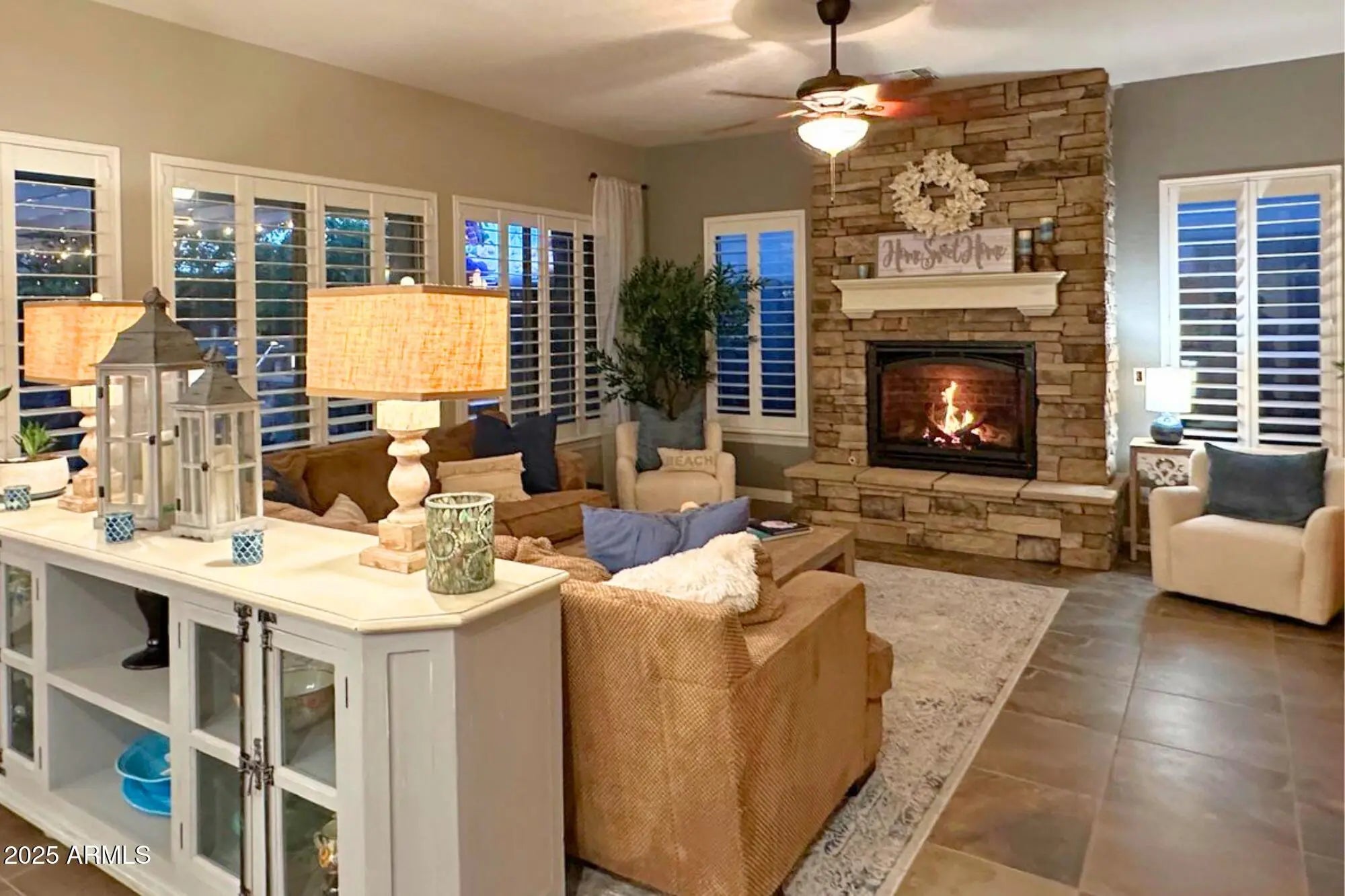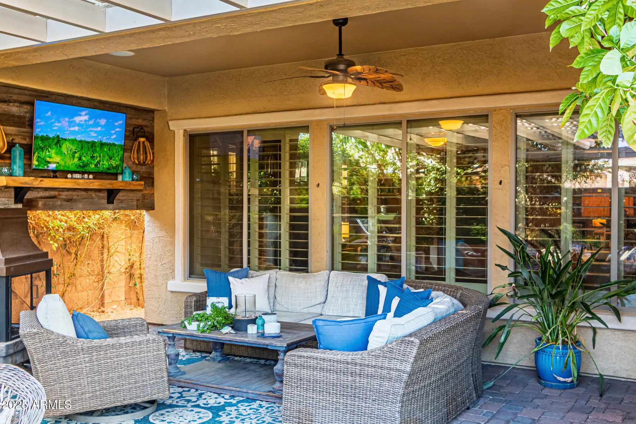 Exterior Fireplace, Living Room