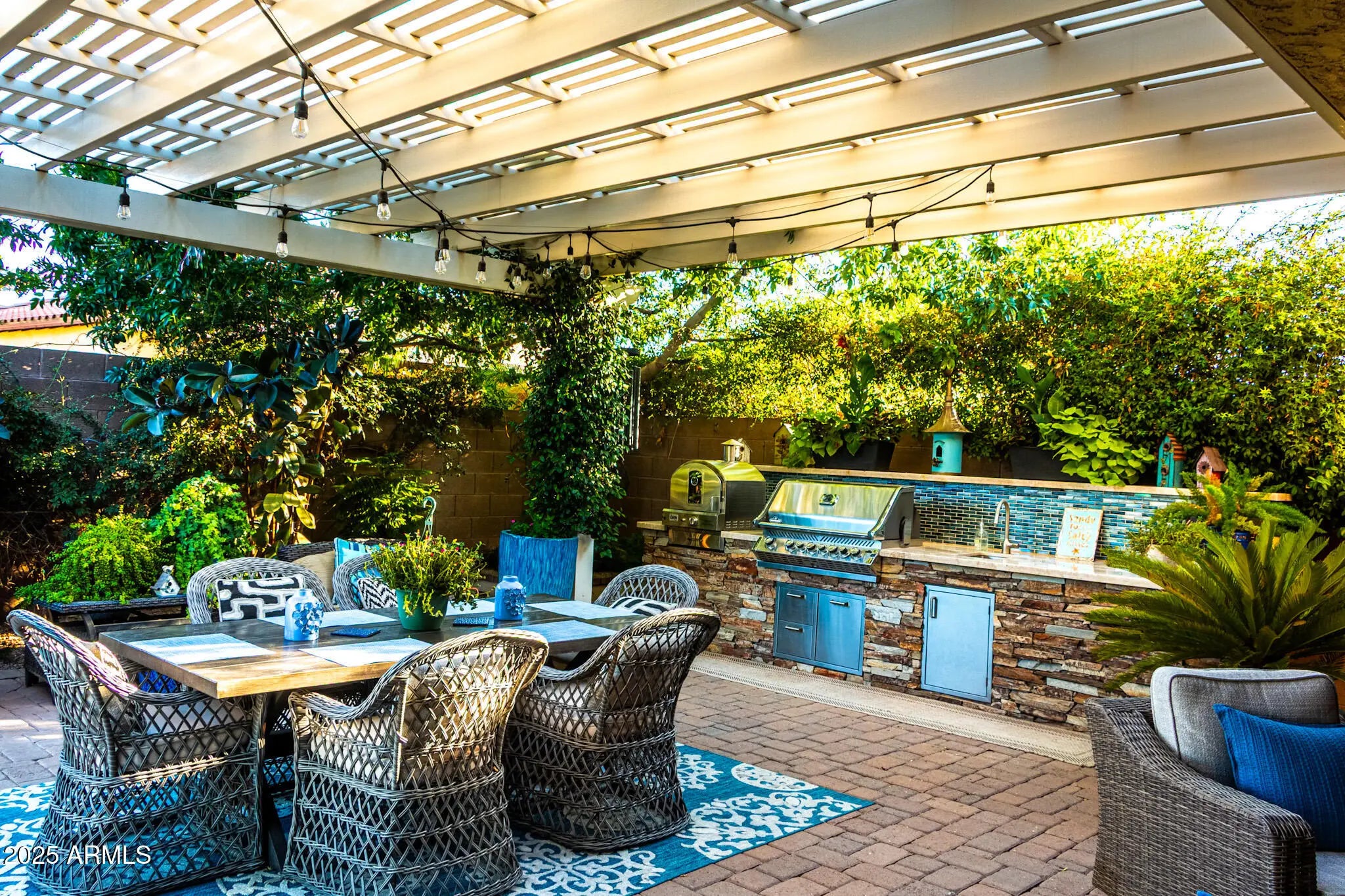 Tucked inside the gates of Seville Golf & Country Club, this home welcomes you with quiet luxury and unmatched outdoor living. Step into the backyard—lush, private, and built for unwinding. Swim beside fire and water features, fire up the pizza oven, or relax beneath the shaded pergola while the sun sets behind the fairway. Inside, the layout is warm and easy, with space that simply feels good to come home to. The four-car garage? That's for your toys, tools, or next big project. This isn't just a house—it's your everyday escape.