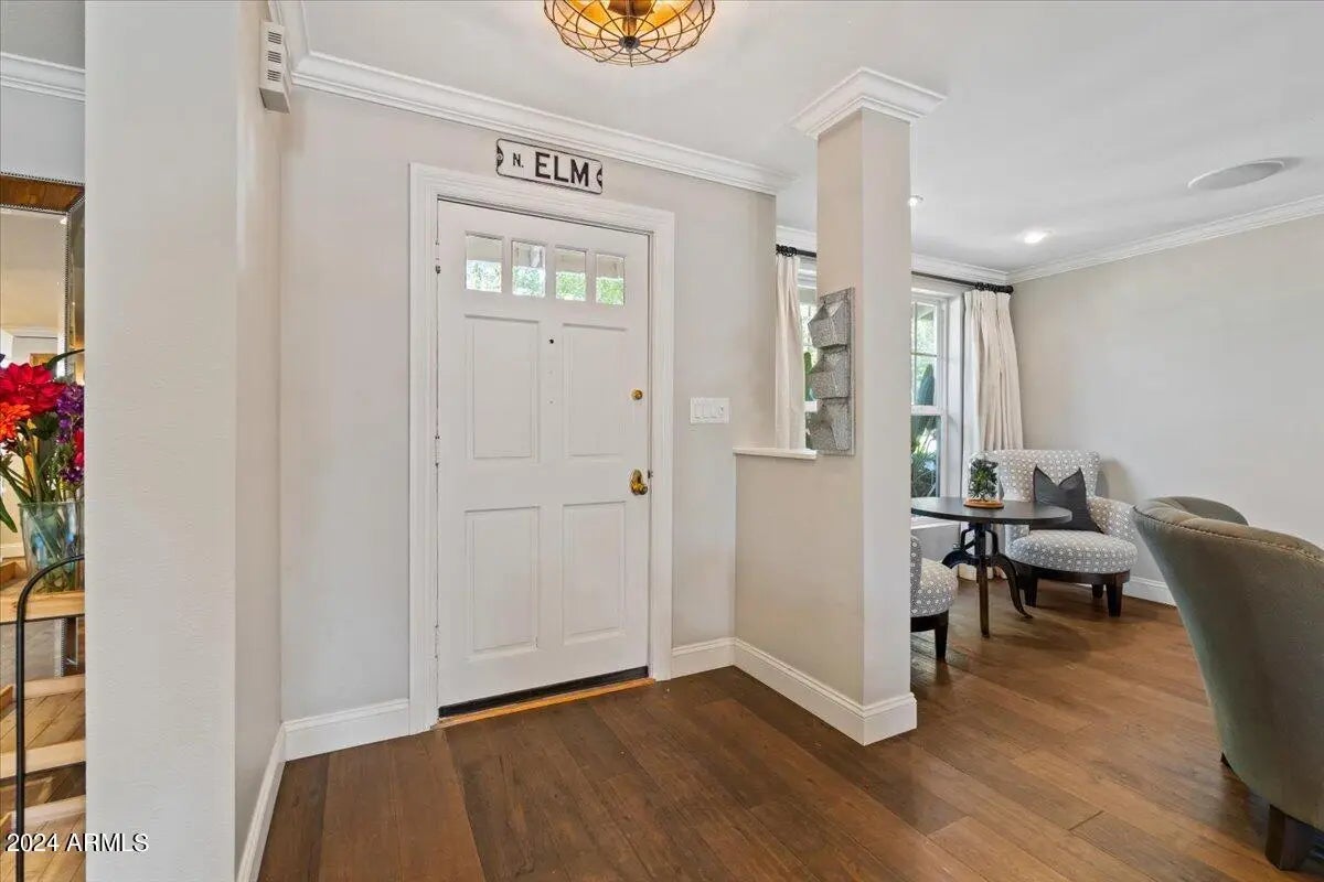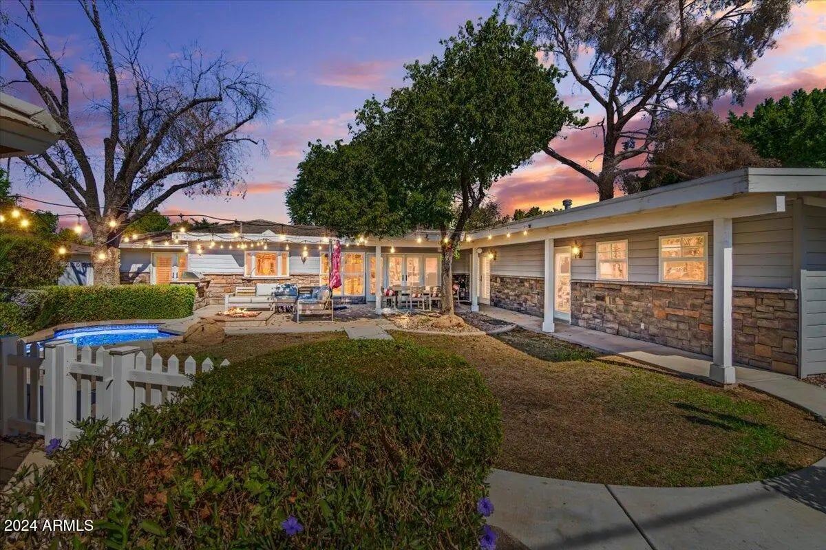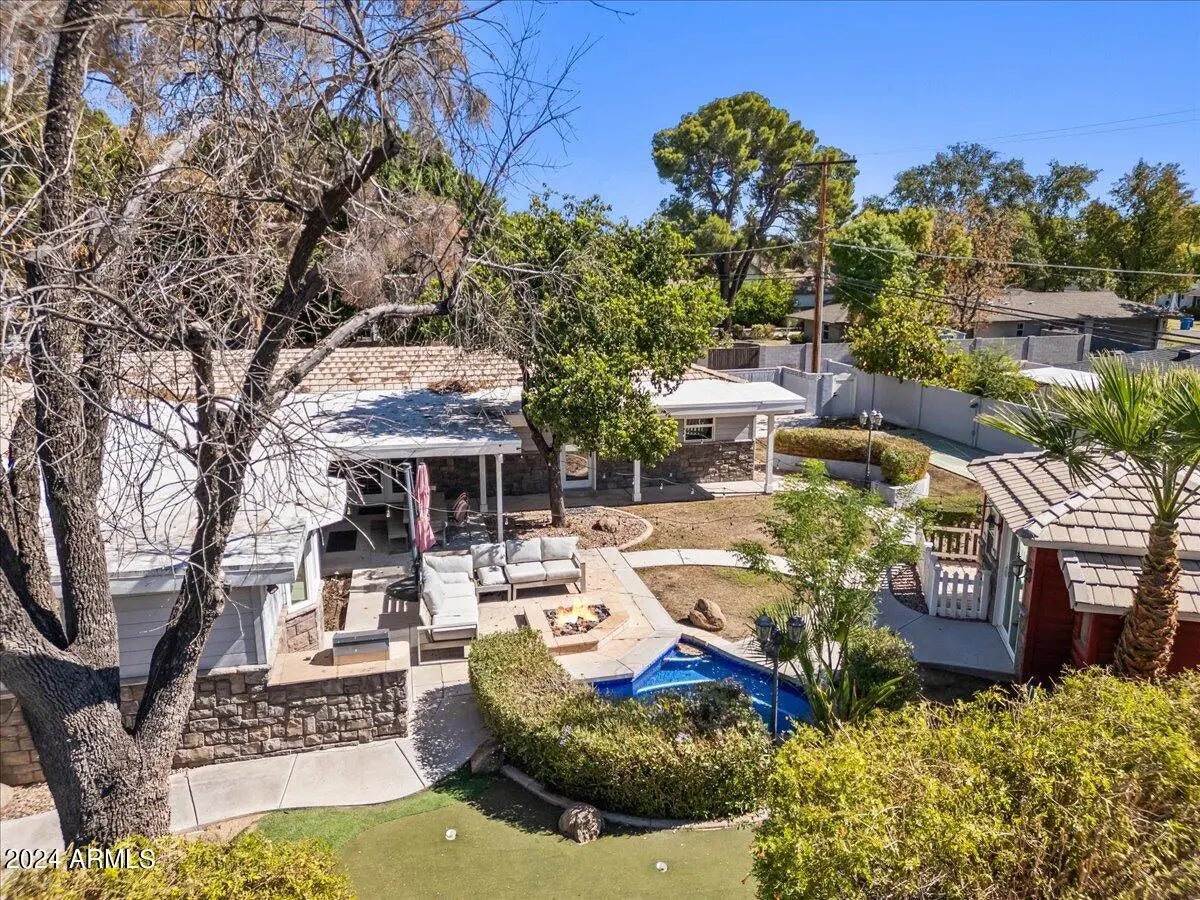 IYKNYK- Elm St - Prime corner lot with no Alley - 3 new A/C units - not available to view till 10/24 - this beautiful updated home with a touch of French cottage feel has a split floor plan. N/S facing you enter thru mature trees and front yard fire-pit, open living space allows for lots of entertaining. 3 new A/C's 4 bedrooms 3 bath in the main house with an attached casita that has its own entrance, garage and private patio. Detached office or workout room w A/C. Private backyard has built in BBQ, fire-pit, play pool/jacuzzi, shuffle board court. Just a short bike ride to Chesleas's Kitchen, Hillstone, LGO and great schools