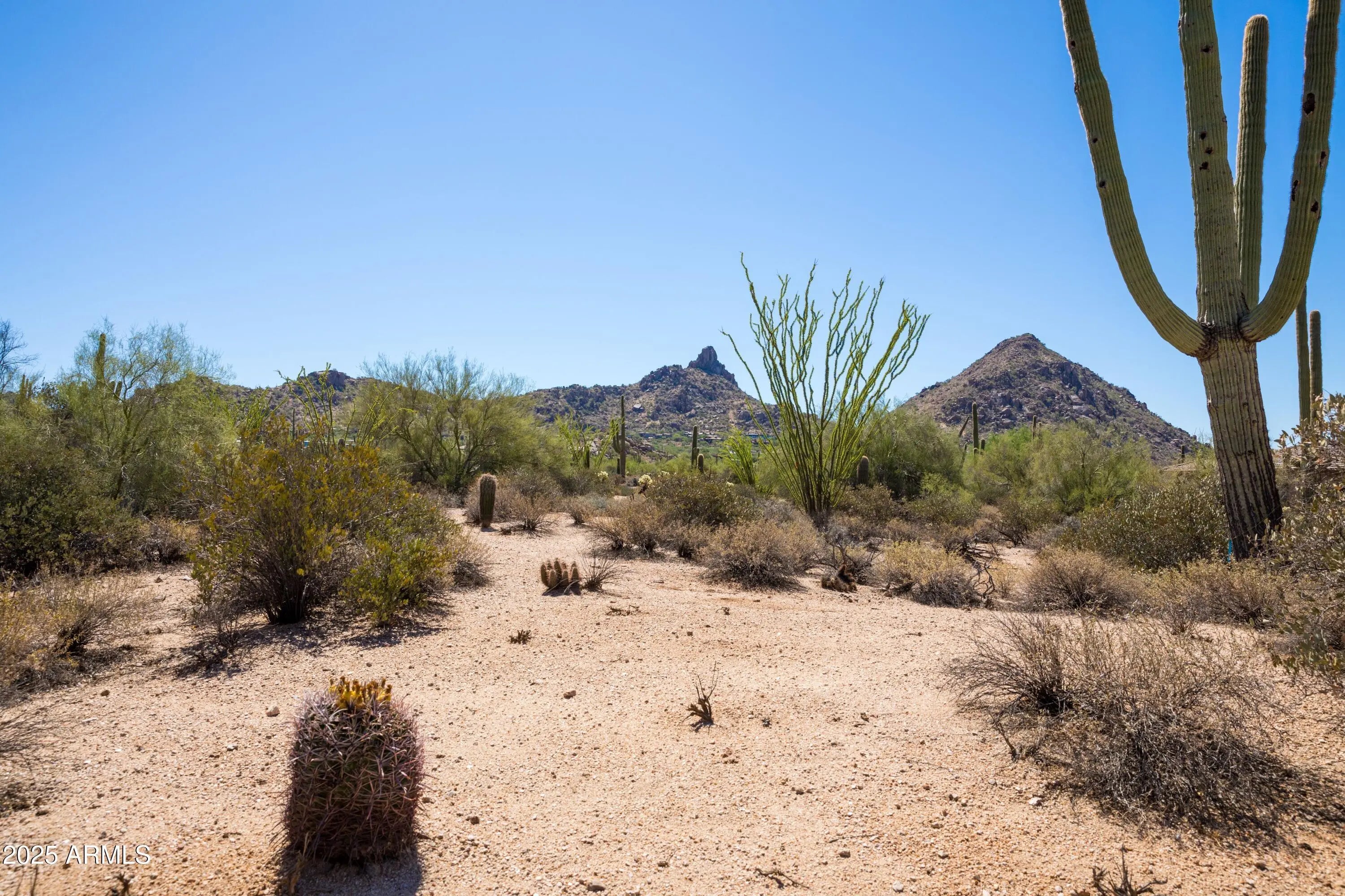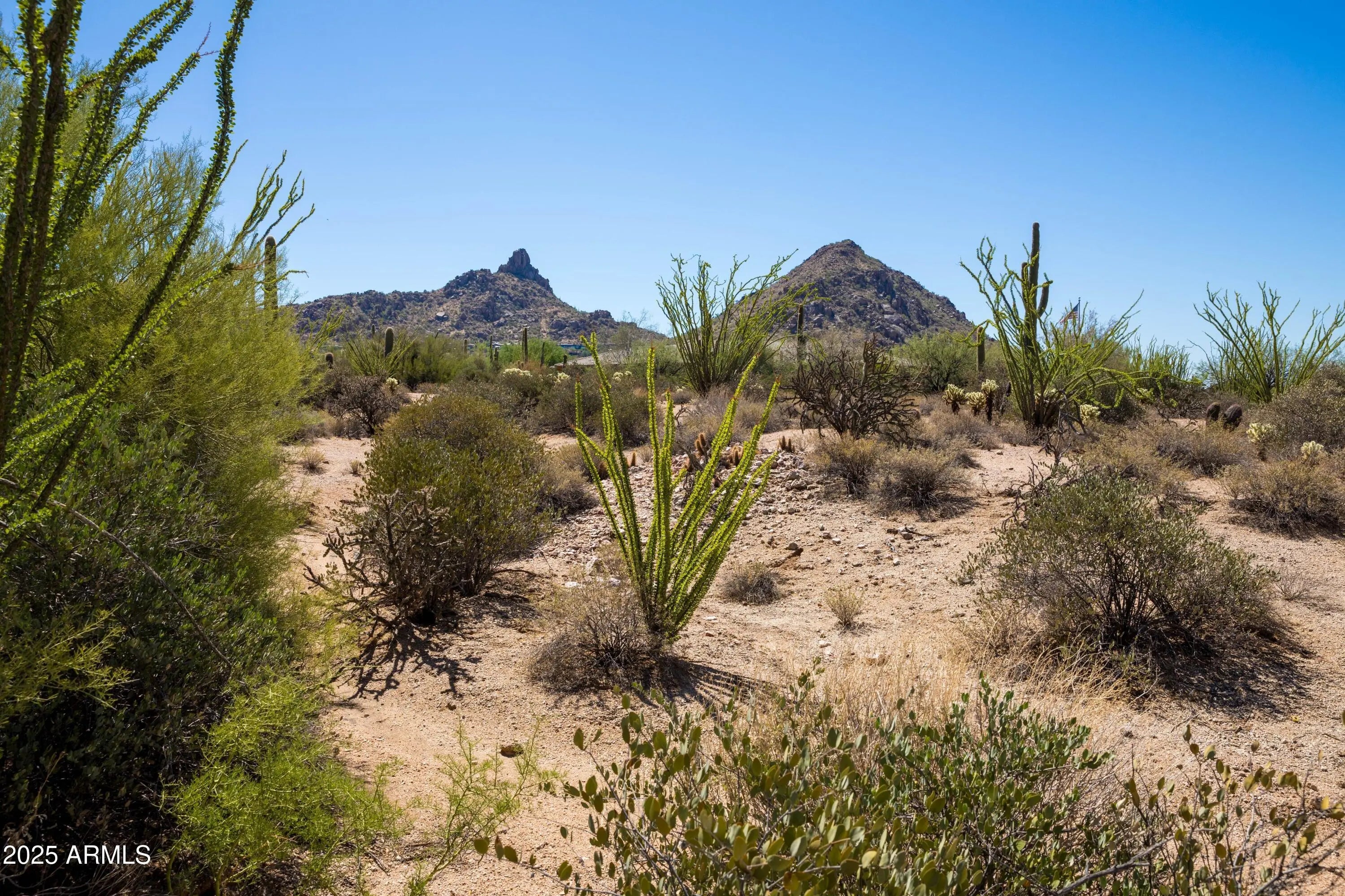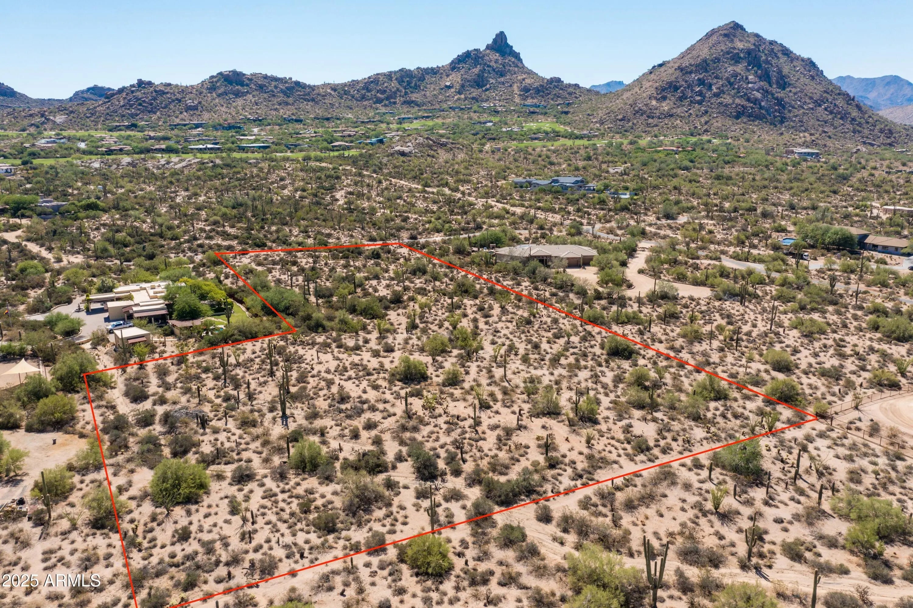 Incredible 5-acre lot in the heart of the Pinnacle Peak area! This rare parcel offers stunning views of Pinnacle Peak and the nearby mountain ranges. It's just minutes from scenic hiking trails and surrounded by nature, with mature saguaros and lush desert plants all around. Enjoy peaceful city light views at night and amazing sunsets every evening. The zoning allows for one home per 5 acres, giving you ultimate privacy. This is a unique chance to build your dream home or utilize the *Current plans for a stunning custom 6300SF custom home slated to be built by one of the Top Builders in North Scottsdale. The land is ideal for creating a beautiful estate, equestrian property, or Arizona getaway. It is just a short drive to top-rated restaurants, golf courses, great shopping, and only 10 minutes to the 101 Freeway. *Start construction immediately in the Fall 2025 and save 12 months in the design and permitting process. Complete architectural plans & permits available separately at an additional cost.