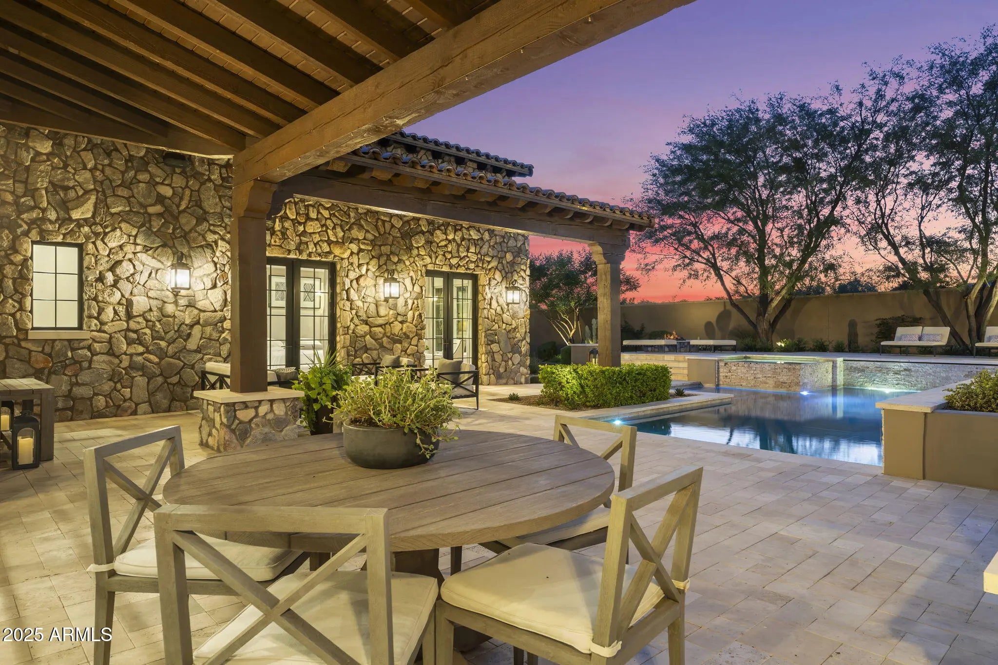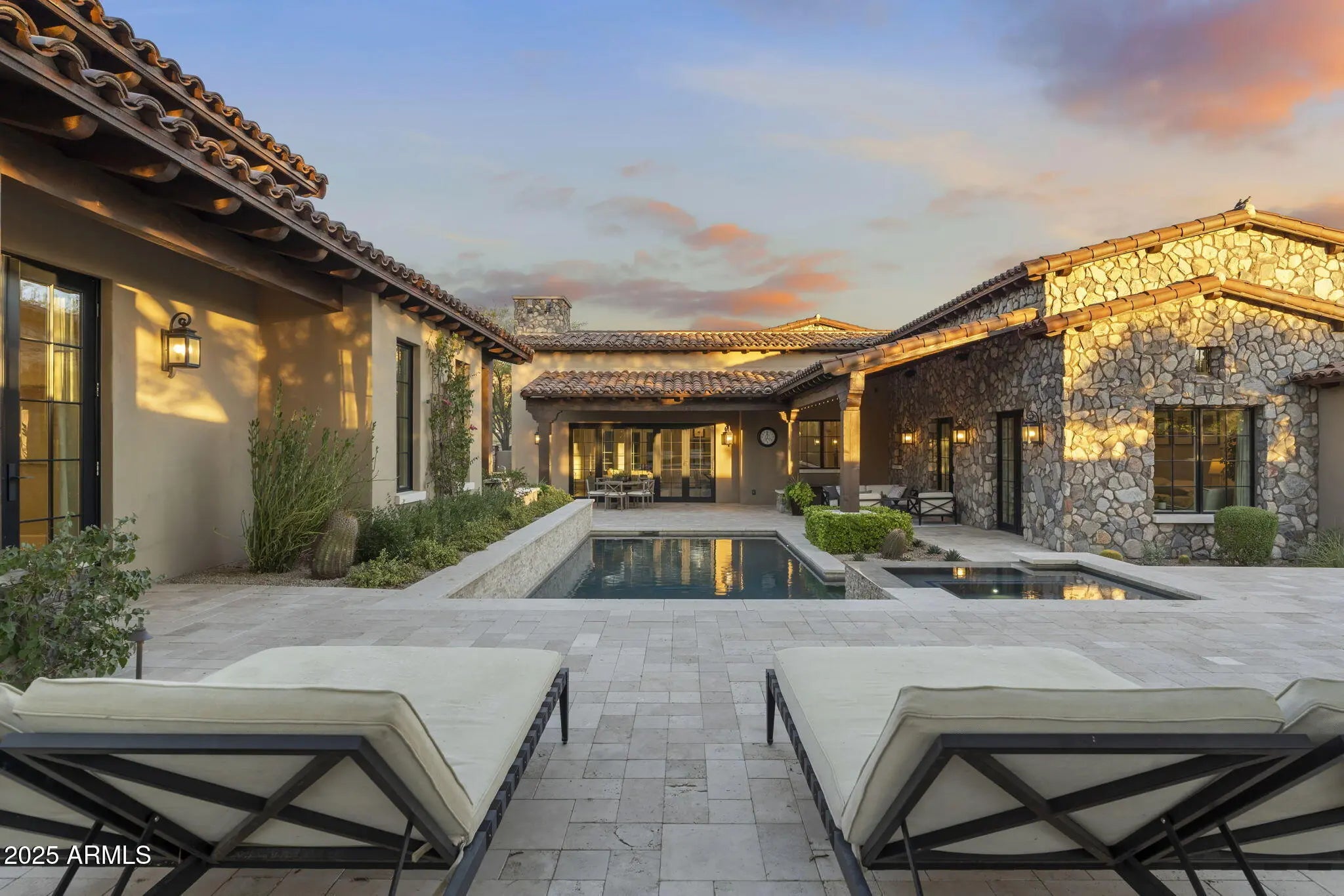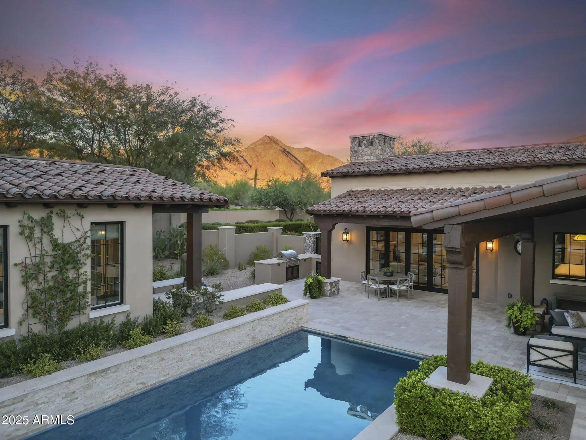 Experience the refined luxury desert living in this extraordinary 5,239 square-foot, single-story Ranch Hacienda, perfectly situated on a mature tree-lined quiet cul-de-sac lot in the highly desired guard gated Horseshoe Canyon neighborhood of Silverleaf, just moments from the exclusive Silverleaf Club and four beautiful parks. Crafted by renowned builder GS Fries Construction, this rare newer-built opportunity blends timeless southwest architecture with modern sophistication and luxurious functionality. Step inside to discover a spacious, light-filled floor plan offering 6 En-suite bedrooms and 6 ½ bathrooms, including an opulent primary suite with a spa-inspired bath ultimate relaxation and privacy. A dedicated kids' wing complete with a roomy bonus space provides ample flexibility for family living and a detached 522-square-foot one-bedroom casita is ideal for guests, extended family, or a private studio retreat. At the center of the home, a gourmet chef's kitchen showcases Wolf & Sub-Zero appliances, Quartz Counters, two dishwashers, two disposals, custom cabinetry, and designer finishes thoughtfully designed for both everyday living and elegant entertaining. The inviting Great Room flows seamlessly to a beautifully landscaped backyard, ideal for gatherings and tranquil moments alike. In the family room, a stylishly integrated wine fridge is perfect for effortless entertaining and casual enjoyment. Beyond the interiors, the resort-inspired outdoor oasis features a heated pool and spa, a cozy fire pit, a grassy area and panoramic views stretching across the McDowell Mountains, Camelback Mountain, and the sweeping Sonoran sunsets. An oversized three-car garage offers built-in cabinetry, epoxy flooring, and two EV charging stations, delivering exceptional convenience and modern style. This is truly a unique opportunity to own a newly constructed custom home in one of Scottsdale's most coveted communities where no detail was missed! This estate is crafted for the most discerning homeowners seeking the pinnacle of desert luxury living. Ideally located to Scottsdale's finest dining, shopping, schools and conveniently located to the 101 freeway.