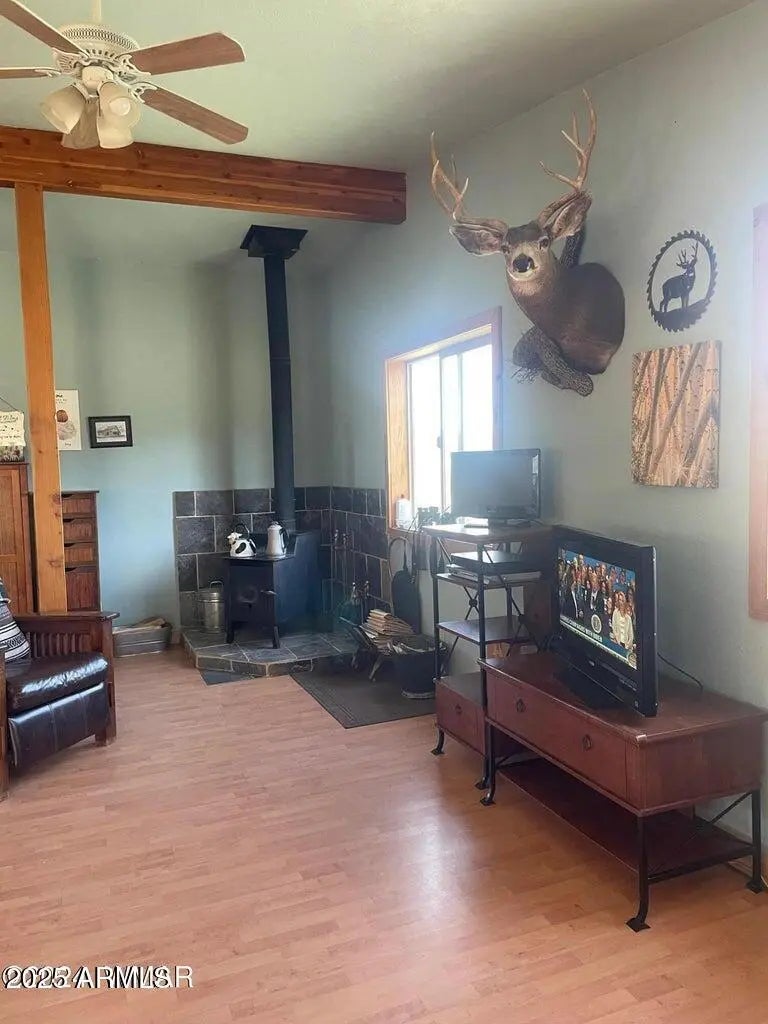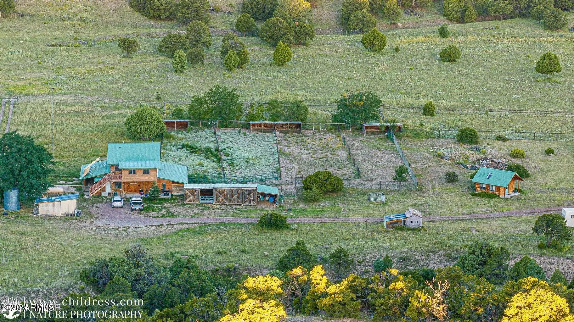 This 40 acre ranch property is tucked away at the foot of Escudilla Mountain in Nutrioso, AZ just off of Highway 180, and boarders USFS on two sides. The main building is a 1 bedroom home atop a 6 stall barn, (barndominium). There are cross fenced corrals, hay barns, chicken coop, storage areas, etc. as would be typical of a ranch. Solar power, with propane generator & wind generator as well. The propane tank on the main building is leased with two owned 45 gallon tanks on the separate Casita. A private well serves the entire 40 acres which includes an adjacent Cabin with 1 bedroom & loft. Property may be used for a variety of ranch, farm, RV park, hunter retreat or other creative scenarios. Turkey, deer, elk abound. Buyer must be accompanied by his agent to enter property. Owner/Agent 3 Parcels #101-39-005A, 101-39-005B, 101-39-005C