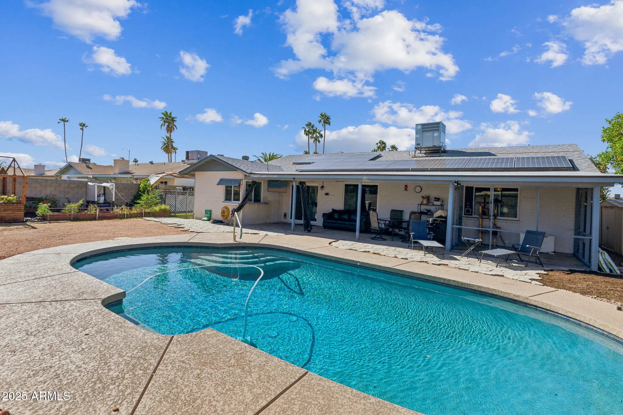 NEW roof, OWNED solar (with warranty), Bosch HVAC (10-year warranty), NEW Dual-pane windows & sliders, Attic sealed & re-insulated, Updated bathrooms, Resurfaced kitchen cabinets, Whole-house surge protector, NEW turf, Misting systems on both patios, Garage workshop with electric, HEATED and COOLING pool + RV gate This home sits on almost ¼ acre and is truly move-in ready, with upgrades you don't have to think about for years to come.