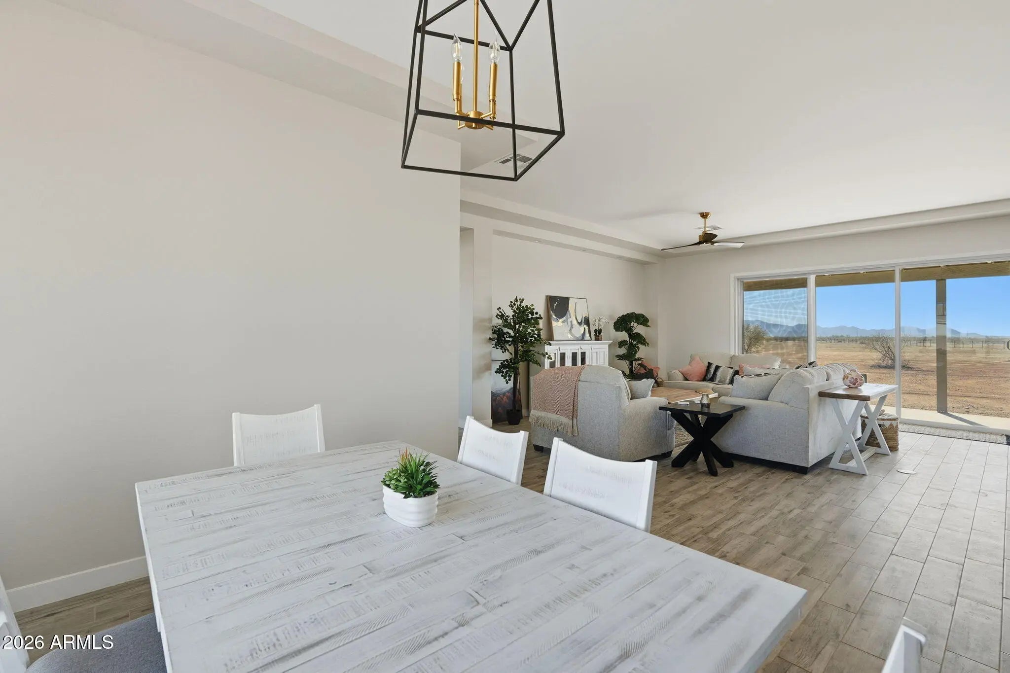 This beautiful home sits on 3.78 ACRES of horse property! Includes 5 bed 2 bath 3 car garage, block fencing, no climb fencing, quartz countertops, soft close cabinets, under cabinet lighting, stainless steel appliances, tiled backsplash, large center island, walk-in pantry, and range hood. Perfect for entertaining w/ eat-in kitchen, breakfast bar, dining room off the great room, large sliding glass door, 10' ceilings. Main bedroom has 2 walk-in closets.