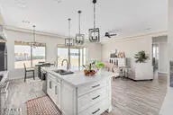 This beautiful home is situated on an acre and on a quiet road with NO HOA! Block Fencing, Quartz counter tops, large center island, tile backsplash, built-in microwave, stainless steel hood, upgraded lighting, designer tile, his and hers walk-in closets in primary bedroom. 8' doors 10' ceilings, split floor plan 4 bedroom 2 bath 3 car garage! Located in a very nice area for riding UTV's and horses and only minutes from Surprise and Wickenburg.