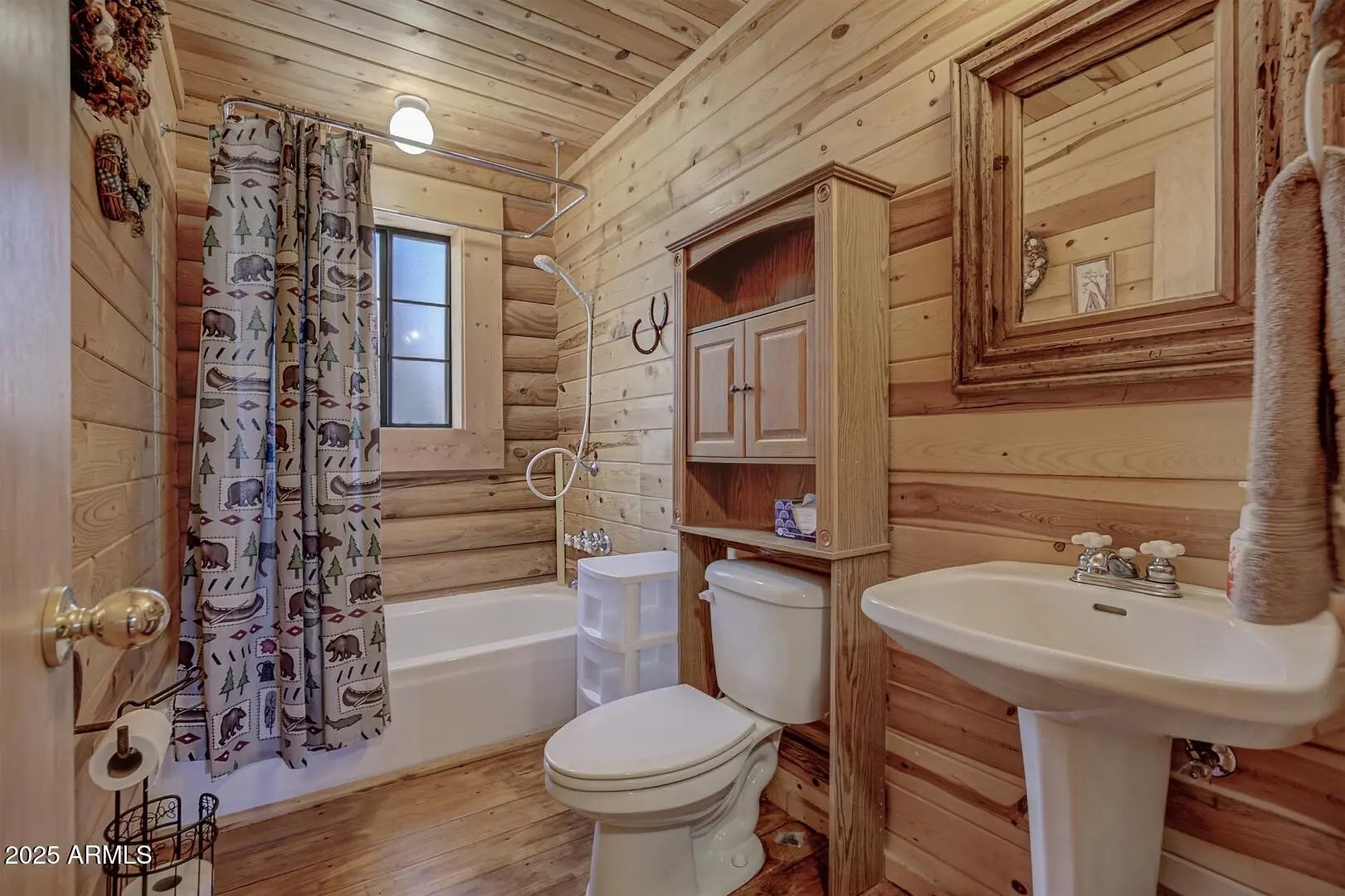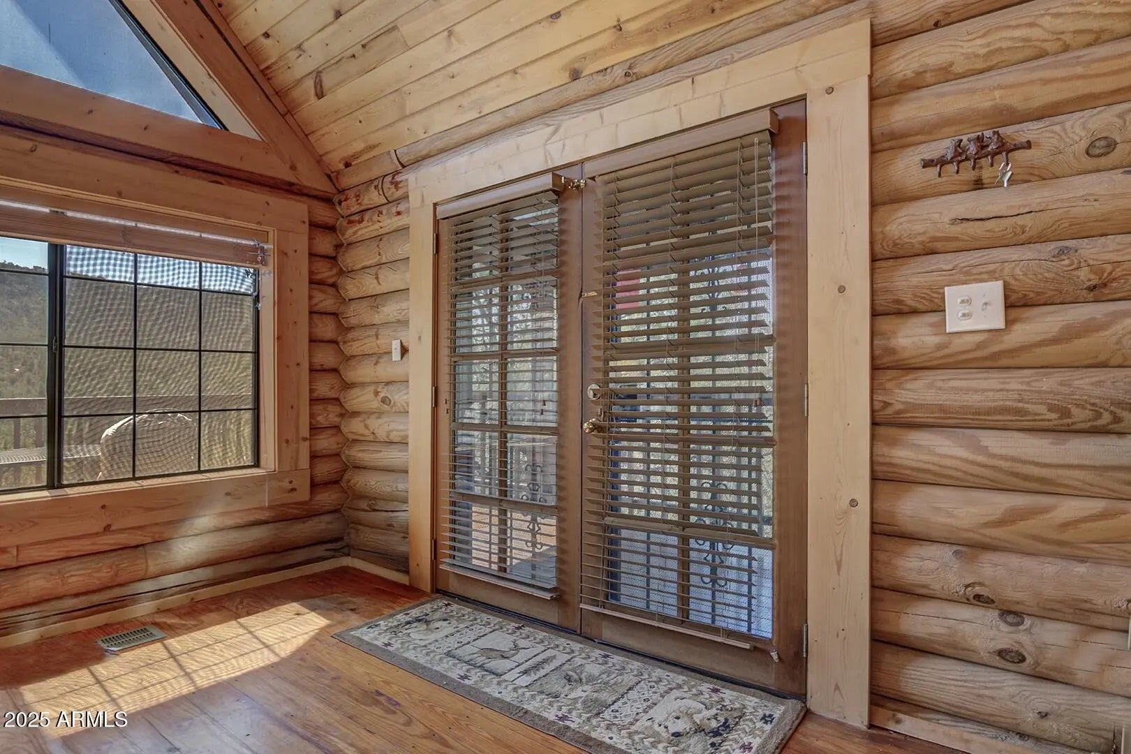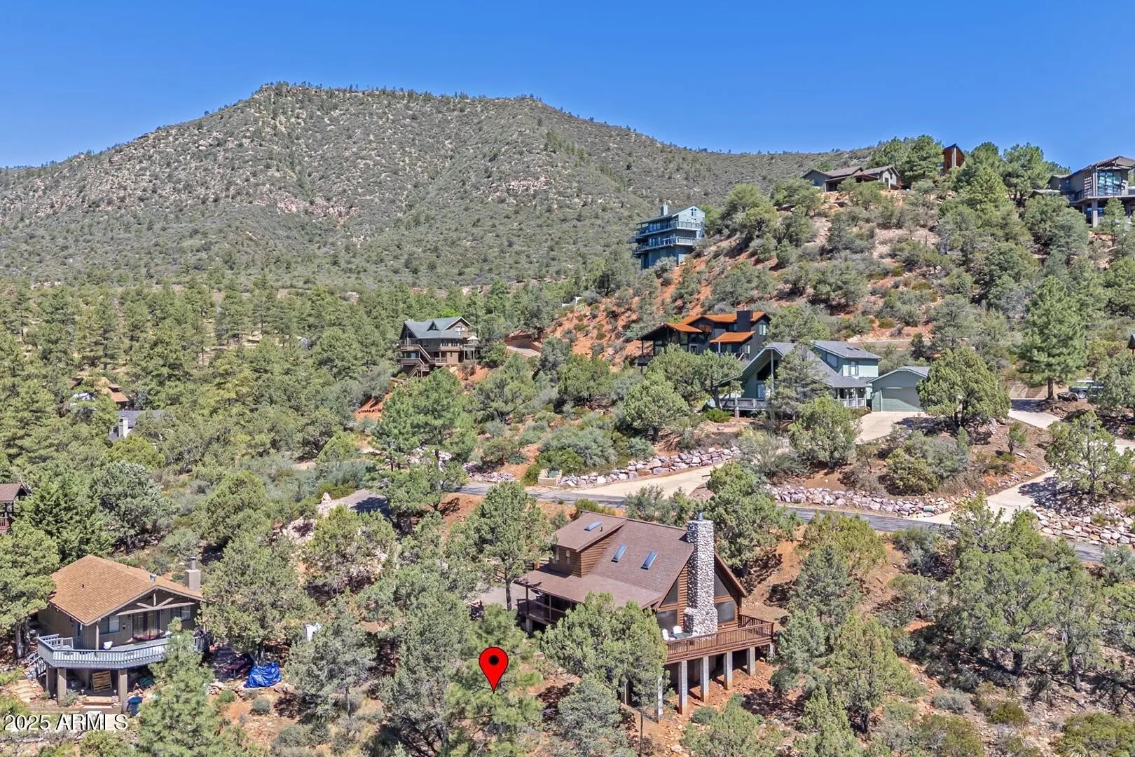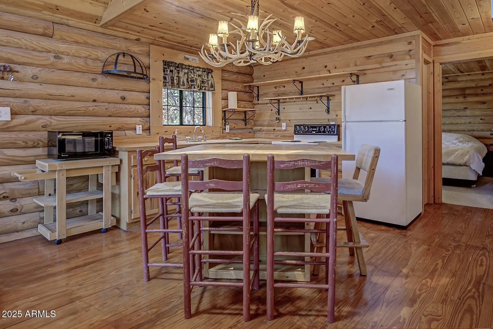 Welcome to cool summer nights,sitting on your front porch with panoramic views of the Mogollon Rim. Nestled in the small community of Pine.This Log cabin sits on two lots and offers a lot of privacy. Enter into the cabin is a wood fireplace as the focal point with stone and full log to the ceiling. There are views from every window. Tongue and groove vaulted ceiling is a nice contrast to the full logs. Island seating in the kitchen with large pantry. Two bedrooms and a full bath off of the kitchen. The large loft upstairs offers an overflow for guests or workout. There is a small desk and a 3/4 bath. The semi wrap around deck offers views of the Mogollon Rim and the East deck, enjoy the morning sunrises. The outside, the house and deck were stained/painted June 2025. New deck support beams and new steps May 2025. The lot was firewised in April and is compliant with the HOA.