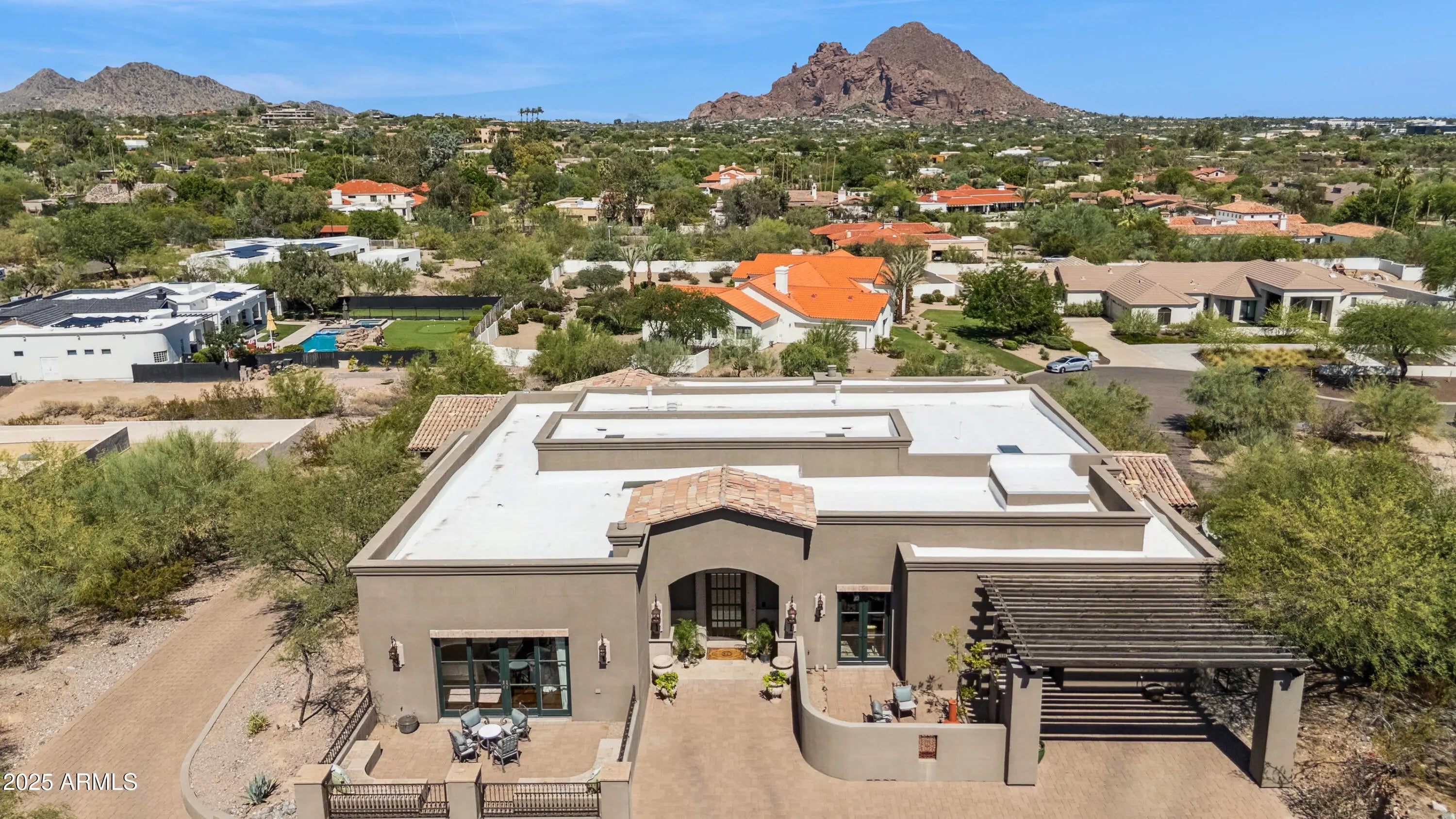 Designed for effortless entertaining and everyday ease, this dramatic mountainside residence offers a highly functional layout paired with sweeping panoramic views of Camelback Mountain, city lights, and the surrounding preserve. The main living level lives like a single-story home, thoughtfully arranged for daily comfort and hosting alike. A chef's kitchen anchors the space, flowing seamlessly into expansive living and dining areas with soaring ceilings, multiple fireplaces, and French doors complemented by clerestory windows, allowing natural light and views while preserving architectural warmth and privacy. Timeless hardwood and stone flooring run throughout the primary living areas, reinforcing the home's refined, enduring character. An expansive 912+ square foot view terrace extends the living space and is purpose-built for entertaining, featuring a fully equipped grilling kitchen ideal for the culinary or grilling enthusiast. Covered verandas provide inviting spaces for after-dinner retreats, morning coffee, or quiet moments overlooking the Valleycreating a natural rhythm between entertaining and everyday living. The lower level is ideal for guests, extended stays, or recreation, offering additional living spaces and bedrooms that provide privacy and flexibility while keeping primary living areas undisturbed. Outdoor living continues with a negative-edge pool, covered cabana carved into the mountainside, and multiple view terraces integrated into the natural desert settingwell-suited for both gatherings and quiet evenings under the city lights. Set against the Phoenix Mountain Preserve, the property offers immediate access to hiking and outdoor recreation while remaining conveniently close to the best of Paradise Valley, Scottsdale, and Central Phoenix. Enjoy proximity to renowned resorts, multiple championship golf courses, and premier dining and social destinations, including The Global Ambassador, as well as the Biltmore and Camelback corridors. Sky Harbor International Airport is easily accessible, supporting seamless travel and seasonal living. A rare combination of views, privacy, and locationthis residence offers refined indoor-outdoor living with convenient access to everything the Valley has to offer.