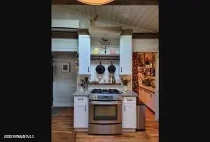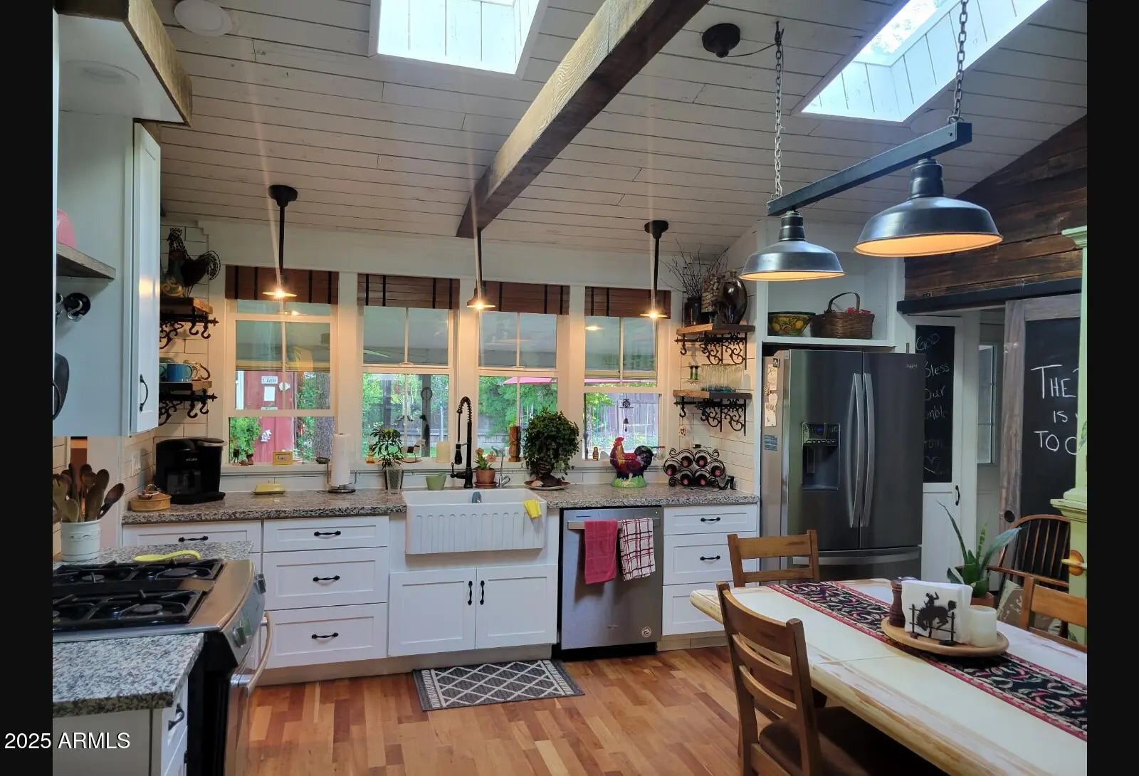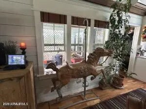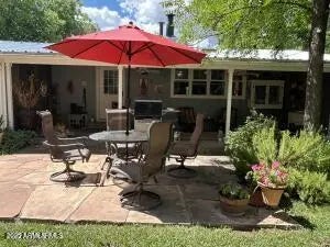 Charming, Unique ranch style home. Complete remodel done about 4 years ago! Elegant, organic design, this beauty has cherry wood floors, boxed wood beams, vaulted ceilings in living room & kitchen, there are artistic wood touches throughout! Huge walk in pantry big enough for 2nd fridge or deep freeze. There is plenty of storage & lots of amenities. Master with bath has walk in closet and sitting room, tile shower, separate water closet and double sinks. Also has an office & mudroom. Outside you will find covered porches front & back, flagstone patio's, irrigated with mature trees and beautiful grass. Two horse stalls that open to the pasture! This property is fenced with pipe rail fencing! Great for gardening and anyone who wants to be 5 minutes from town but live down a country lane