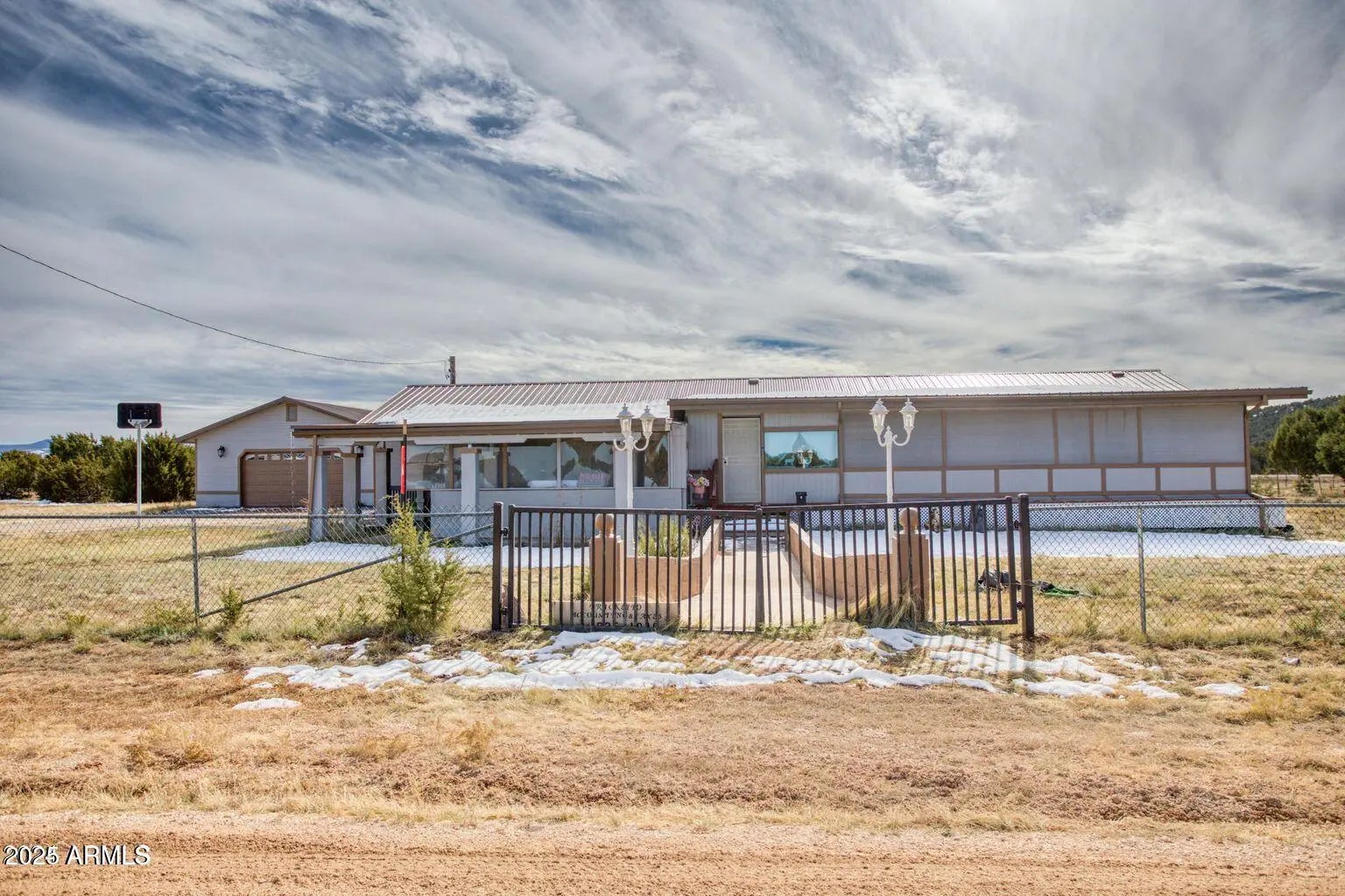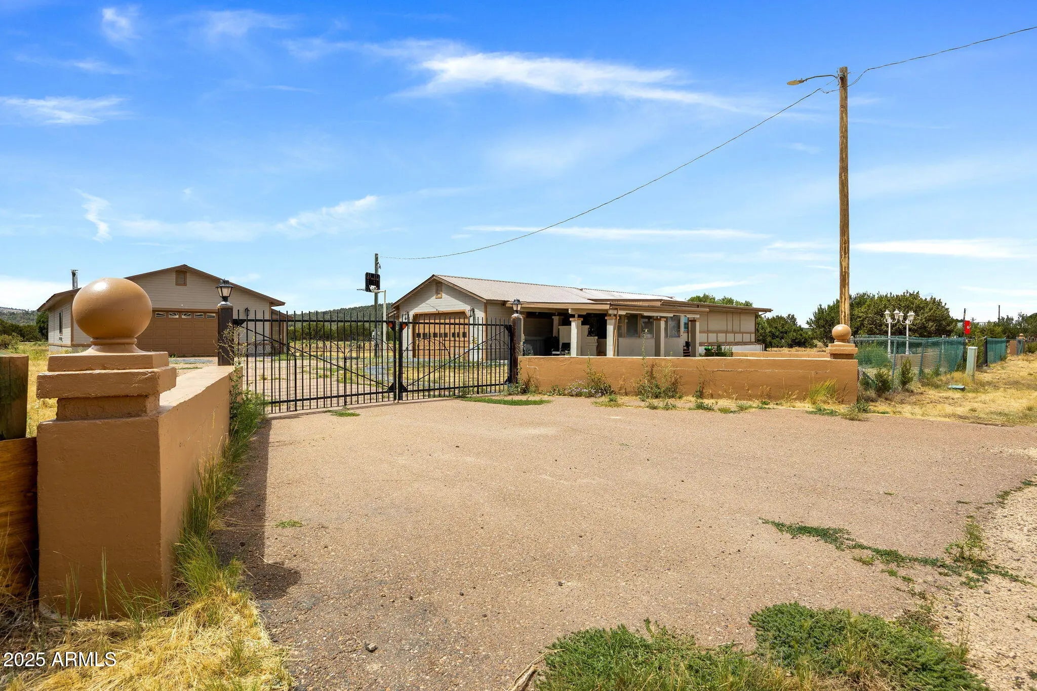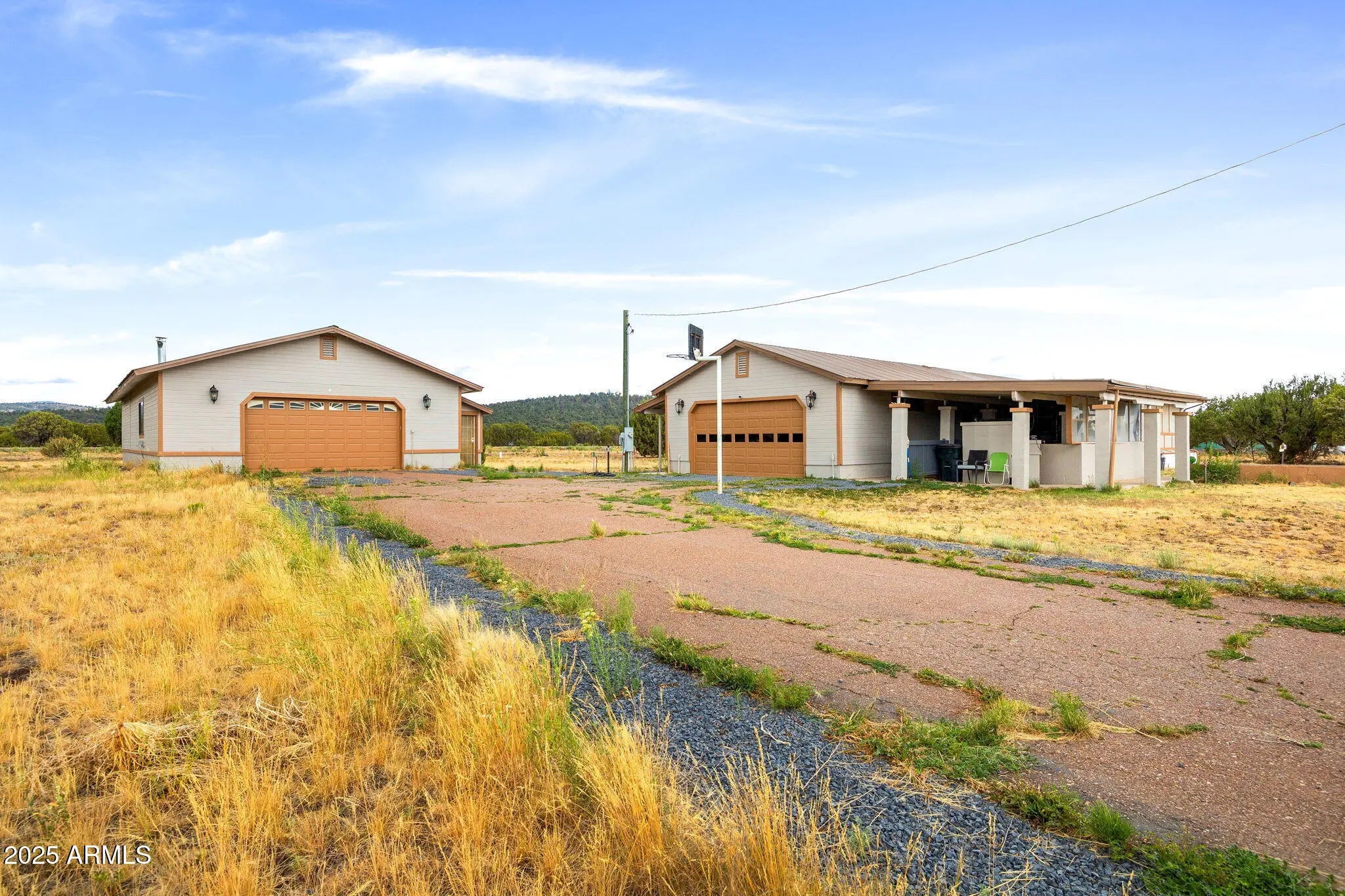 Spacious 4 bed / 3 bath home on 1.49 acres with tons of potential! Features dual master suites with en-suite bathrooms—ideal for multi-gen living or guest privacy. Two enclosed patios, a large living area offer comfort and ease. Property has been recently painted inside and out, with a new AC unit and water heater 5 years ago. Two versatile mudrooms are perfect for storage, pets, or seasonal gear. Enjoy both an attached 2-car garage and a massive 2,400 sq ft detached garage/workshop with heat, water, and power—ideal for a business, hobbies, or rental use. Private gated entry, long paved driveway, and ample room to expand. Just off US-60, 10 mins from Show Low, 3 hrs from Phoenix. Fresh interior paint and updated flooring in 2019. A must-see!