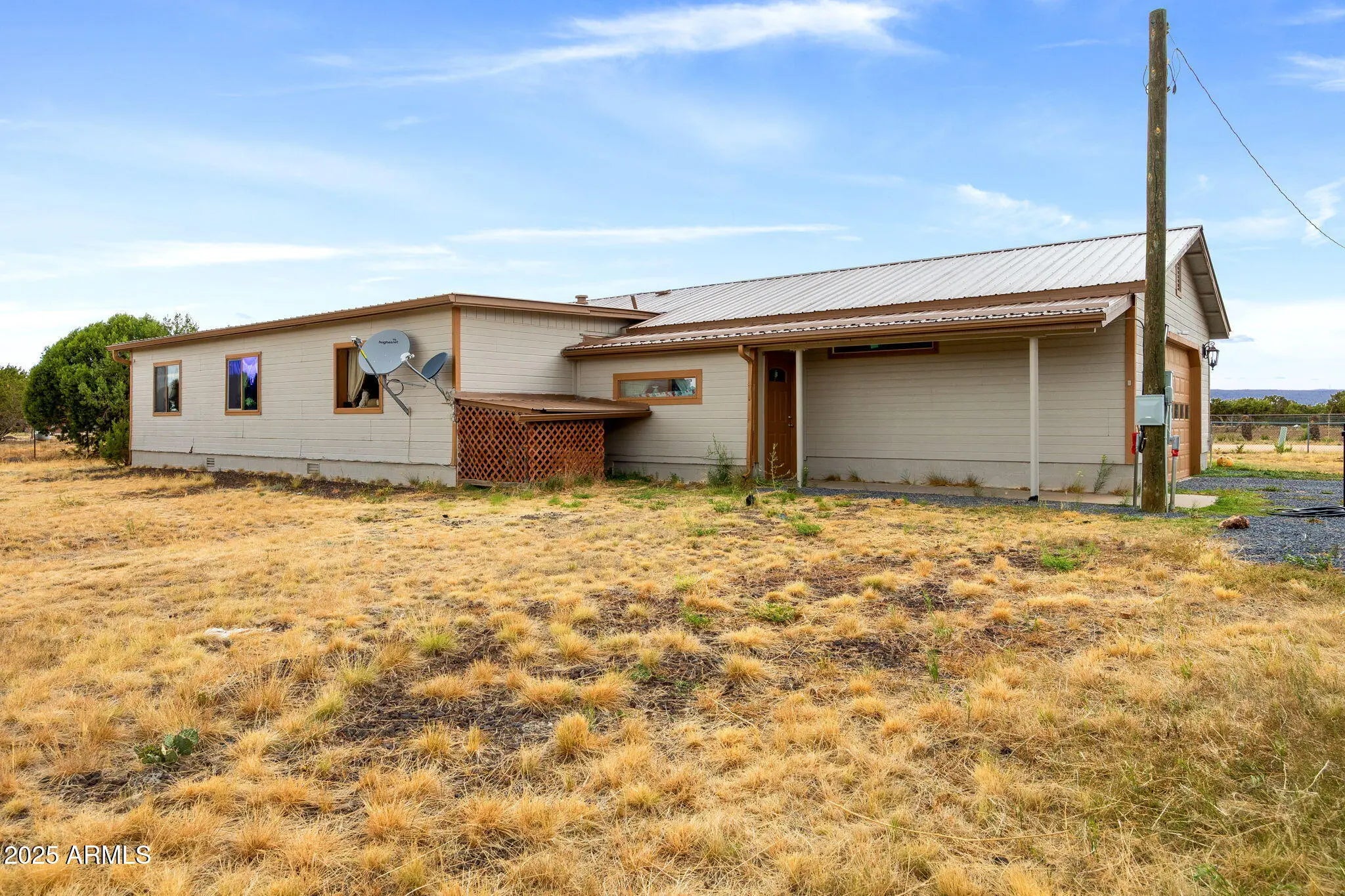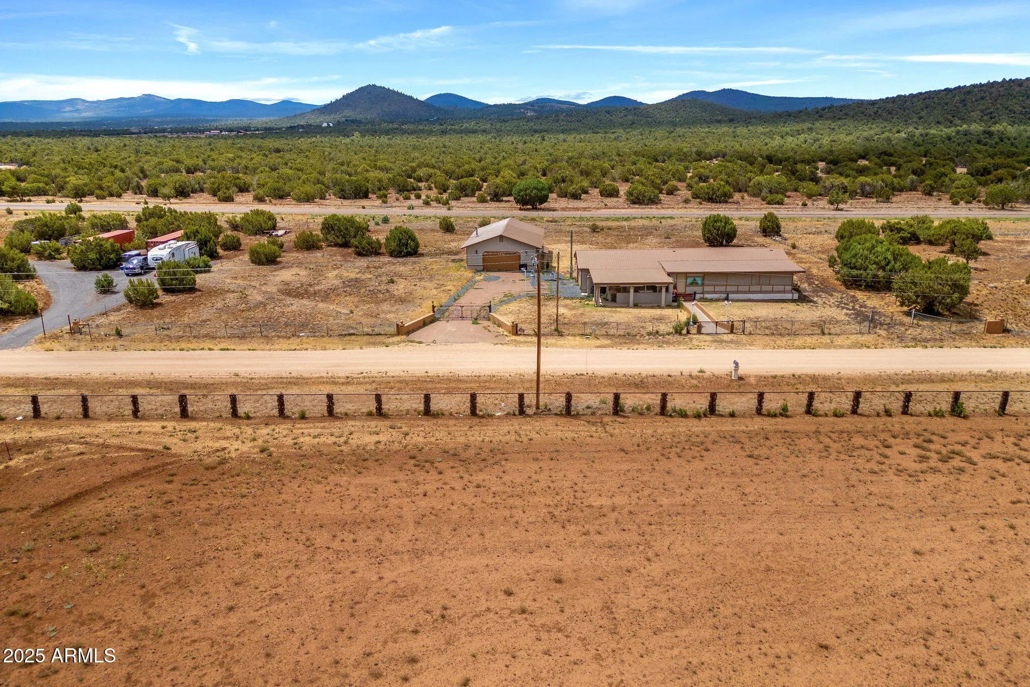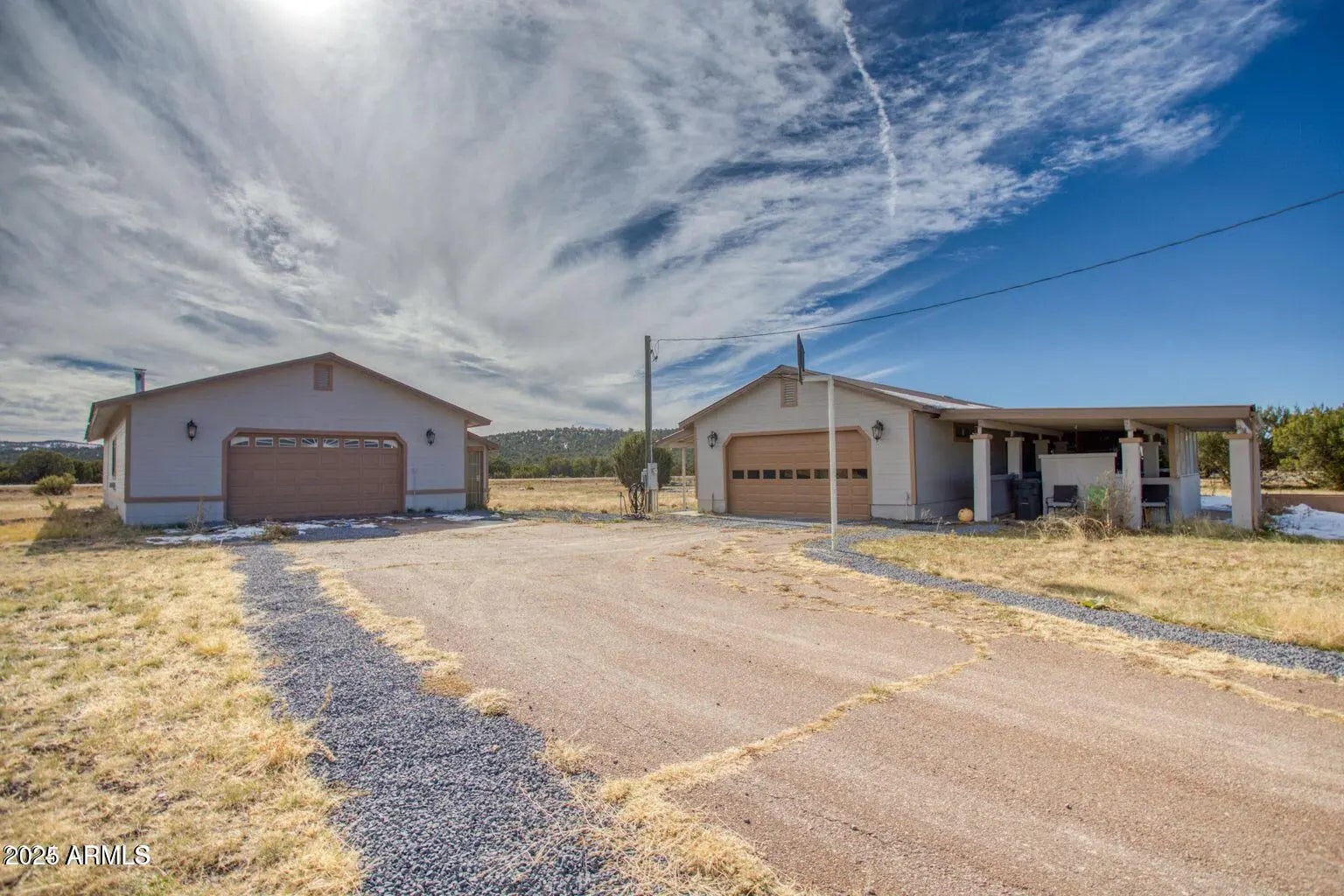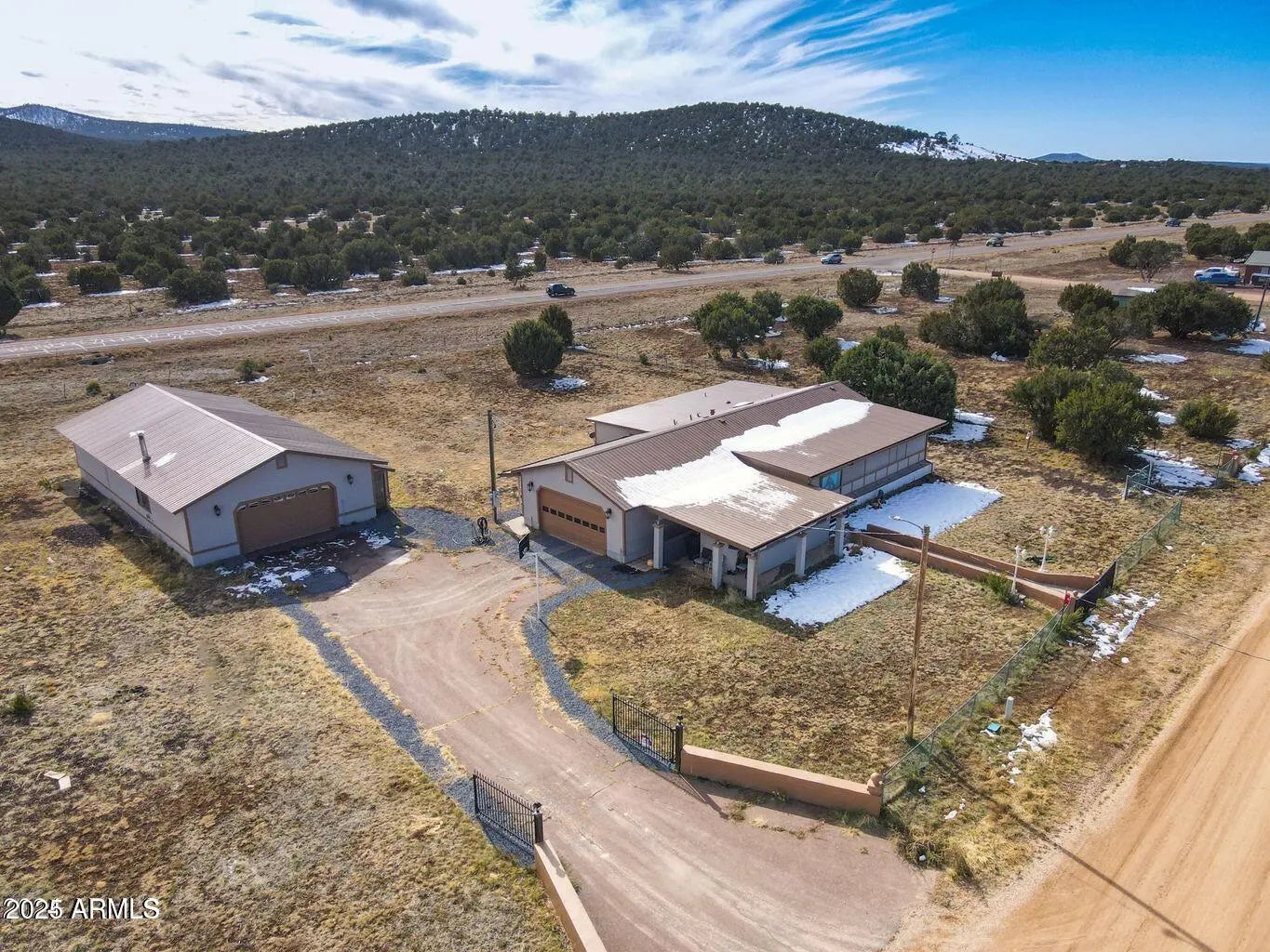 Spacious 4 bed / 3 bath home on 1.49 acres with tons of potential! Features dual master suites with en-suite bathrooms—ideal for multi-gen living or guest privacy. Two enclosed patios, a large living area offer comfort and ease. Property has been recently painted inside and out, with a new AC unit and water heater 5 years ago. Two versatile mudrooms are perfect for storage, pets, or seasonal gear. Enjoy both an attached 2-car garage and a massive 2,400 sq ft detached garage/workshop with heat, water, and power—ideal for a business, hobbies, or rental use. Private gated entry, long paved driveway, and ample room to expand. Just off US-60, 10 mins from Show Low, 3 hrs from Phoenix. Fresh interior paint and updated flooring in 2019. A must-see!