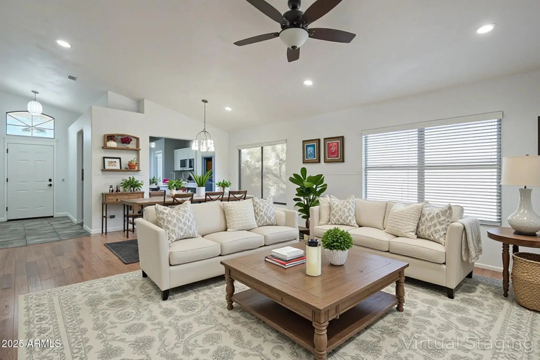 Seller will provide a one-year home warranty for the buyer at closing, offering added peace of mind. Discover effortless desert living in this thoughtfully upgraded home, nestled in the coveted Eagle Ridge community at the base of North Phoenix's stunning foothills. Perfectly positioned just moments from the booming TSMC corridor, this residence blends modern convenience with timeless Arizona charm. Inside, an open-concept layout welcomes you with light-filled living and dining spaces that flow into a freshly updated kitchen, showcasing brand-new electric appliances, sleek quartz countertops, and gas-ready plumbing for future enhancements. The living room and private primary suite each open to an extended covered patio through newly installed sliding glass doors with integrated blinds— framing breathtaking mountain views that become your everyday backdrop. From morning coffee to golden hour sunsets, the outdoor space invites relaxation and effortless entertaining. Additional upgrades include new wood blinds throughout, a state-of-the-art water softener, and a whole-home carbon water filtration system, all curated for comfort and peace of mind. With unmatched views, refined interior finishes, and proximity to Phoenix's most exciting economic expansion, this home is more than a smart investmentit's a lifestyle move.