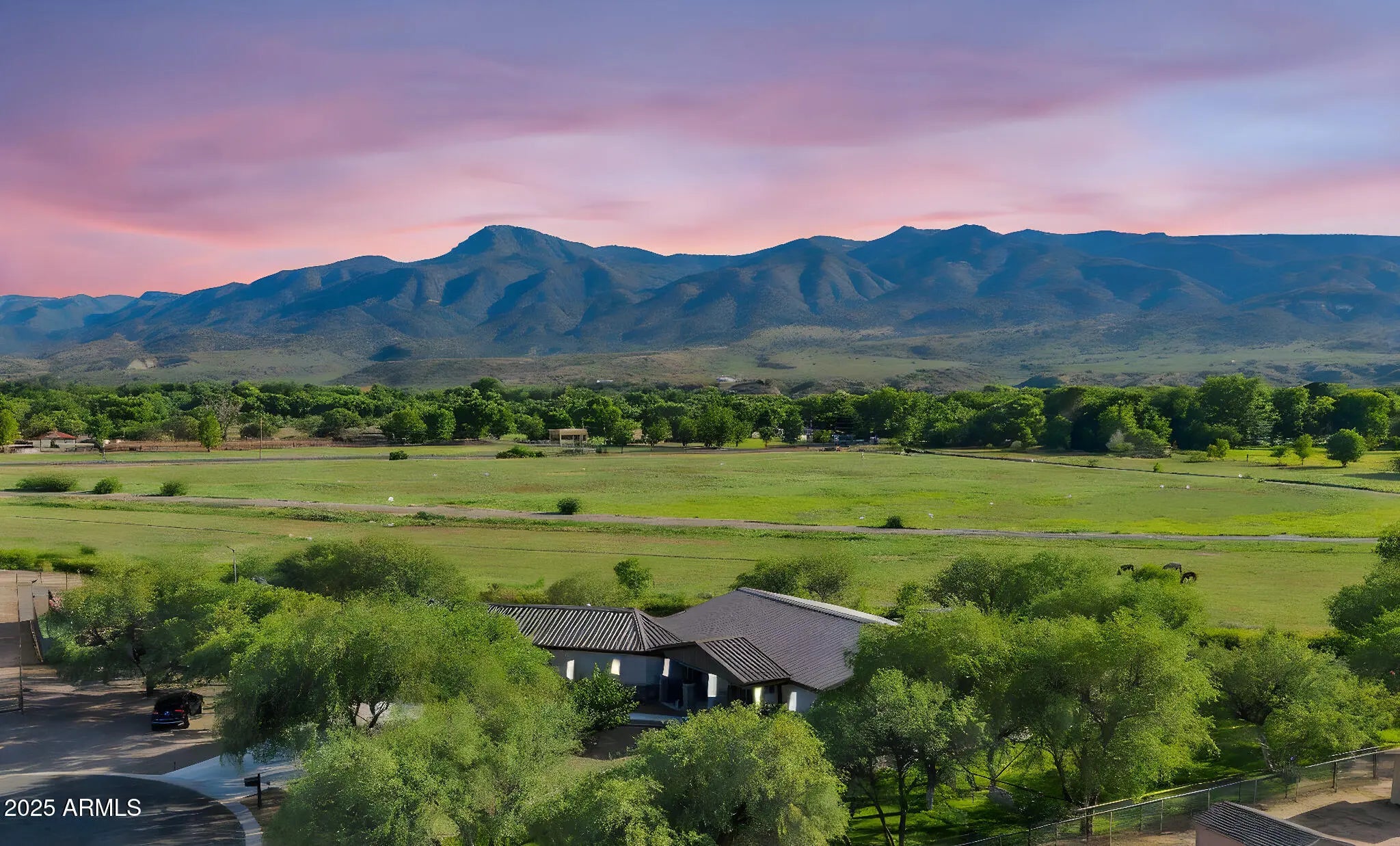 Experience unparalleled luxury and serene beauty in this extraordinary Camp Verde estate, perfectly nestled on nearly 2 acres at the end of a peaceful cul-de-sac. Designed to impress, this 2020 custom masterpiece boasts a robust steel frame and steel roof, ensuring enduring quality and striking architectural presence. Be captivated by panoramic views of Squaw Peak from nearly every vantage point. This beautifully landscaped property backs to the historic Diamond S irrigation ditch, offering a tranquil, picturesque setting unlike any other. Step inside to soaring 16-foot cathedral ceilings and exceptional 12-inch insulation, creating a spacious, energy-efficient retreat. The expansive 3,384 sq ft layout offers 4 luxurious bedrooms and 3 1/2 spa-like baths, designed with uncompromising attention to detail. An oversized gourmet chef's kitchen awaits, adorned with stunning granite countertops and premium stainless steel appliances the ideal space for culinary creations and entertaining on any scale. Outdoors, enjoy a built-in barbecue and a remarkable $150,000 fully-fenced pickleball court, all framed by awe-inspiring mountain views. An oversized garage and RV parking provide abundant space for all your needs, while the fully fenced grounds ensure privacy and security. This is Sedona luxury living at its finest where modern craftsmanship converge with breathtaking views. A truly rare opportunity to own a distinguished estate in Diamond Creek Ranch.